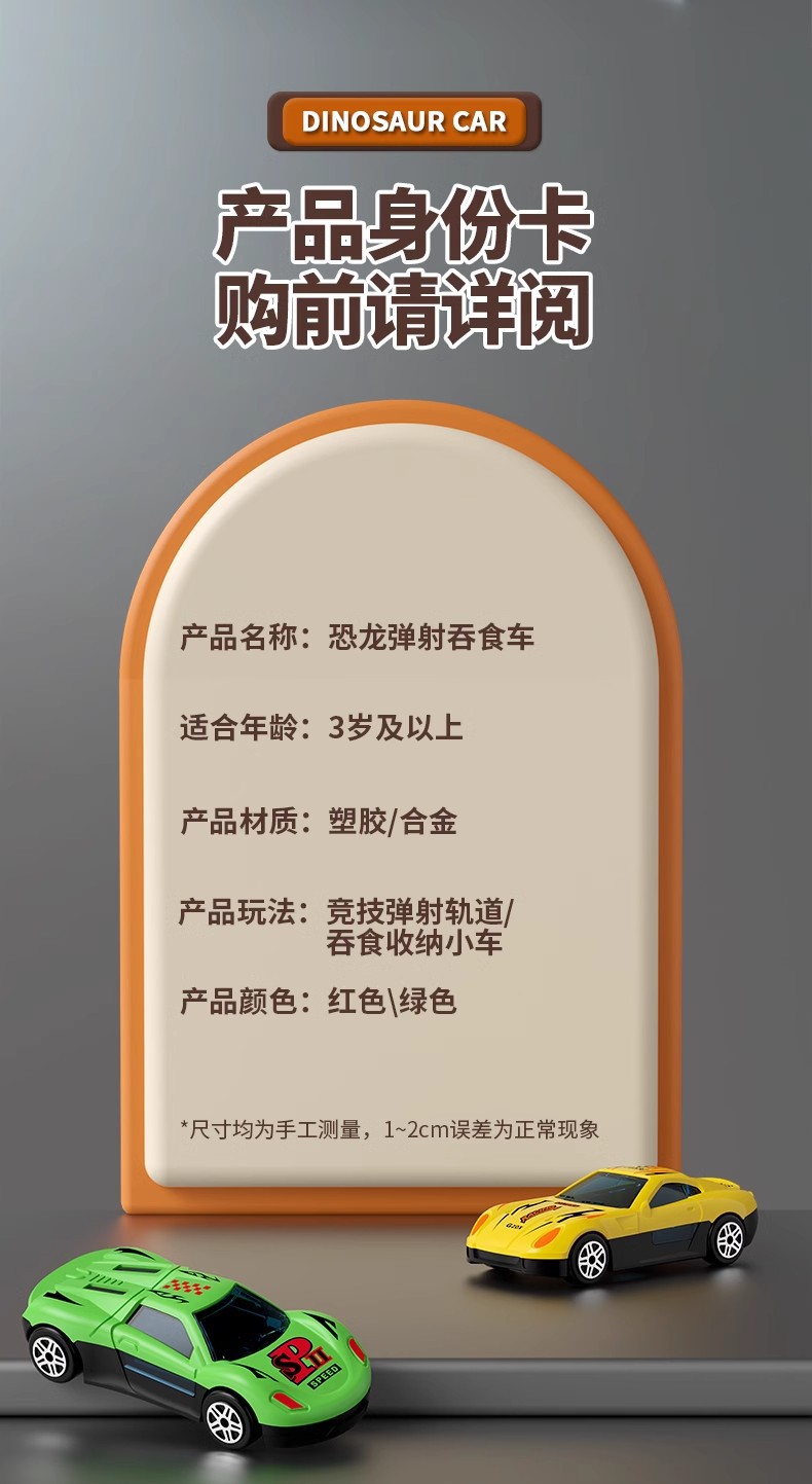 • 녹색/티라노사우루스 렉스/삼키는 자동차, 합금 자동차 포함 - 무작위 차량 2개
