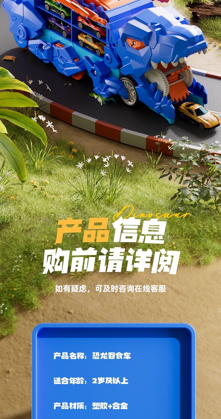 • 파란색/티라노사우루스 렉스/삼키는 자동차, 합금 자동차 포함 - 무작위 차량 2개