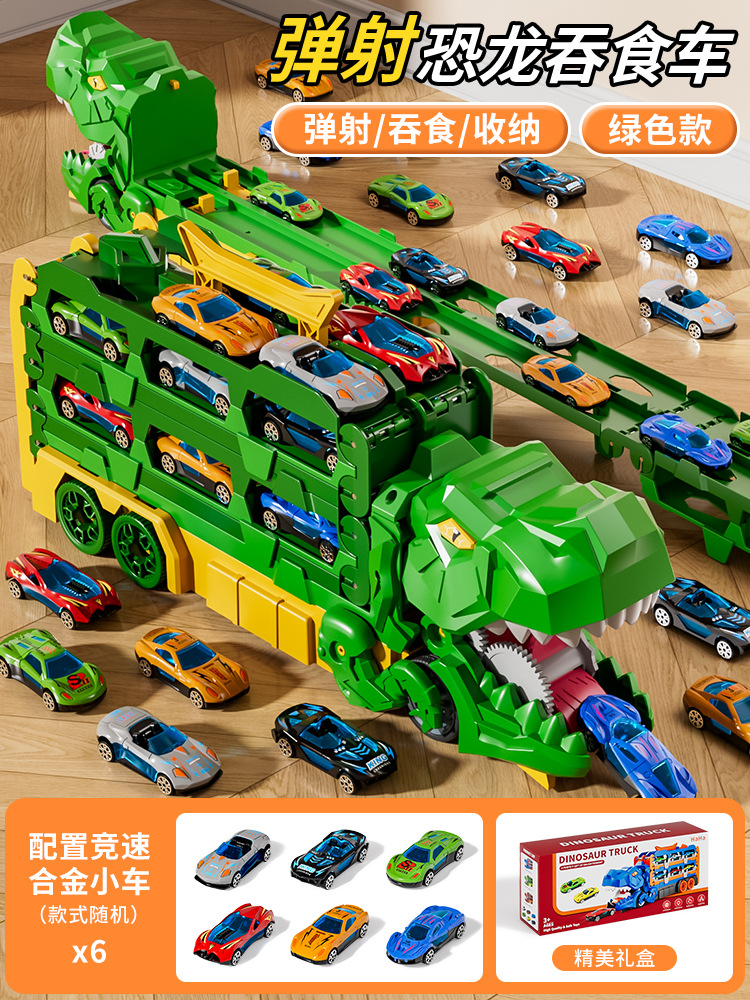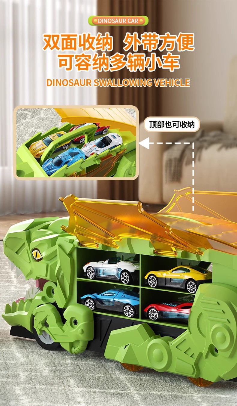 • 녹색/티라노사우루스 렉스/삼키는 자동차, 합금 자동차 포함 - 무작위 차량 4개