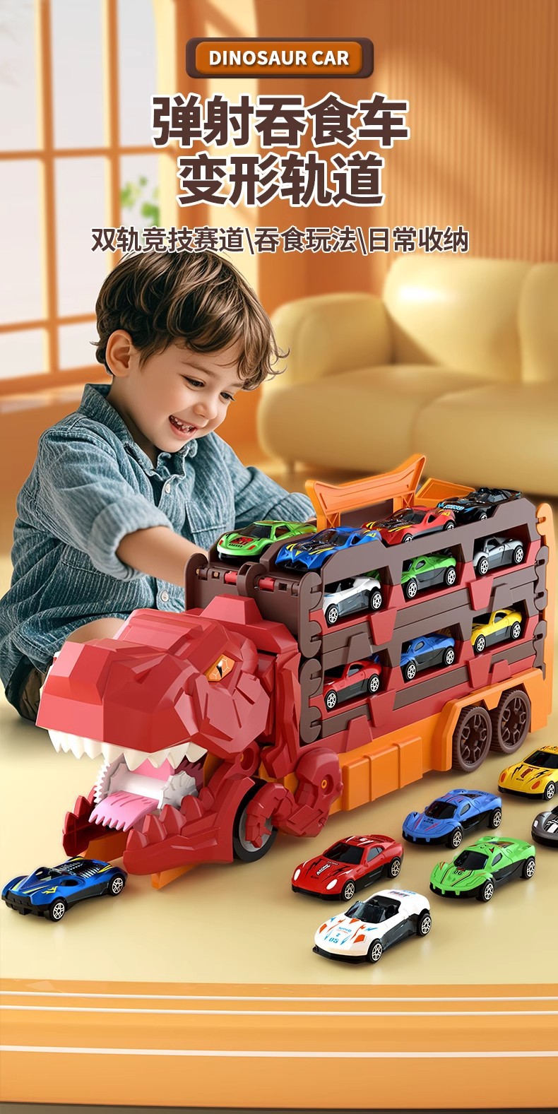 어린이 공룡 삼킨 철도 자동차 합금 자동차 장난감 소년과 소녀 어린이 엔지니어링 자동차 생일 선물 도매