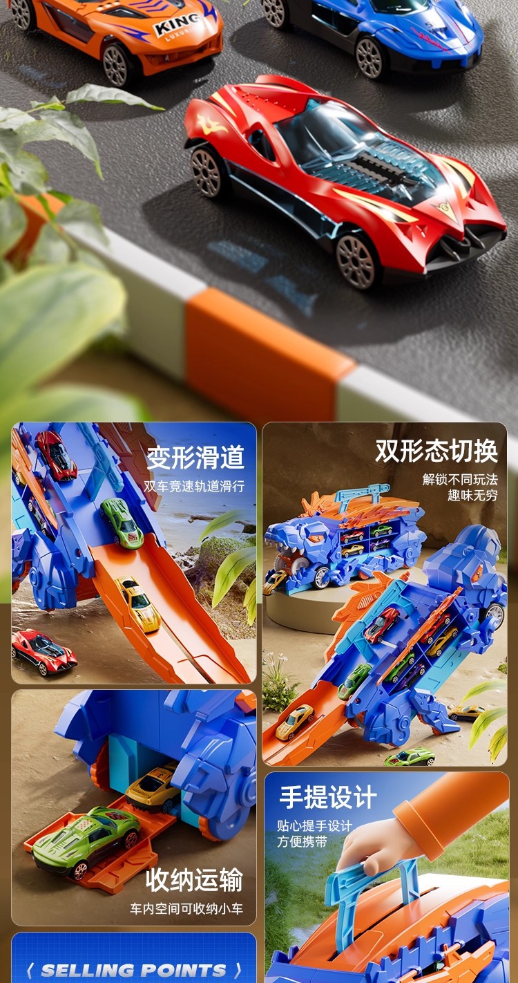• 초대형 휴대용 모델 - 파란색 [무료 합금 자동차 6대] 삼키는 변형/슬라이딩 보관함 - 컬러 박스