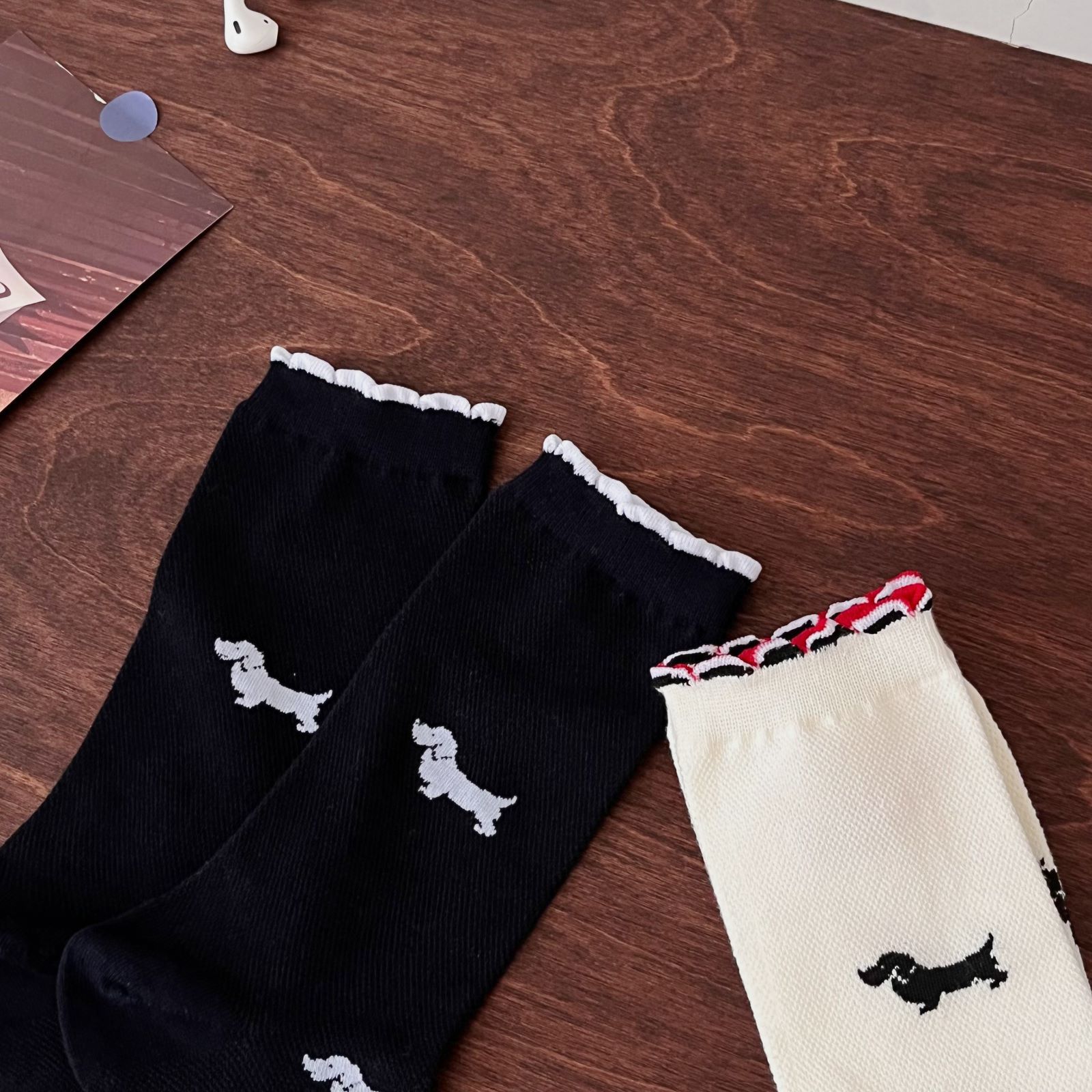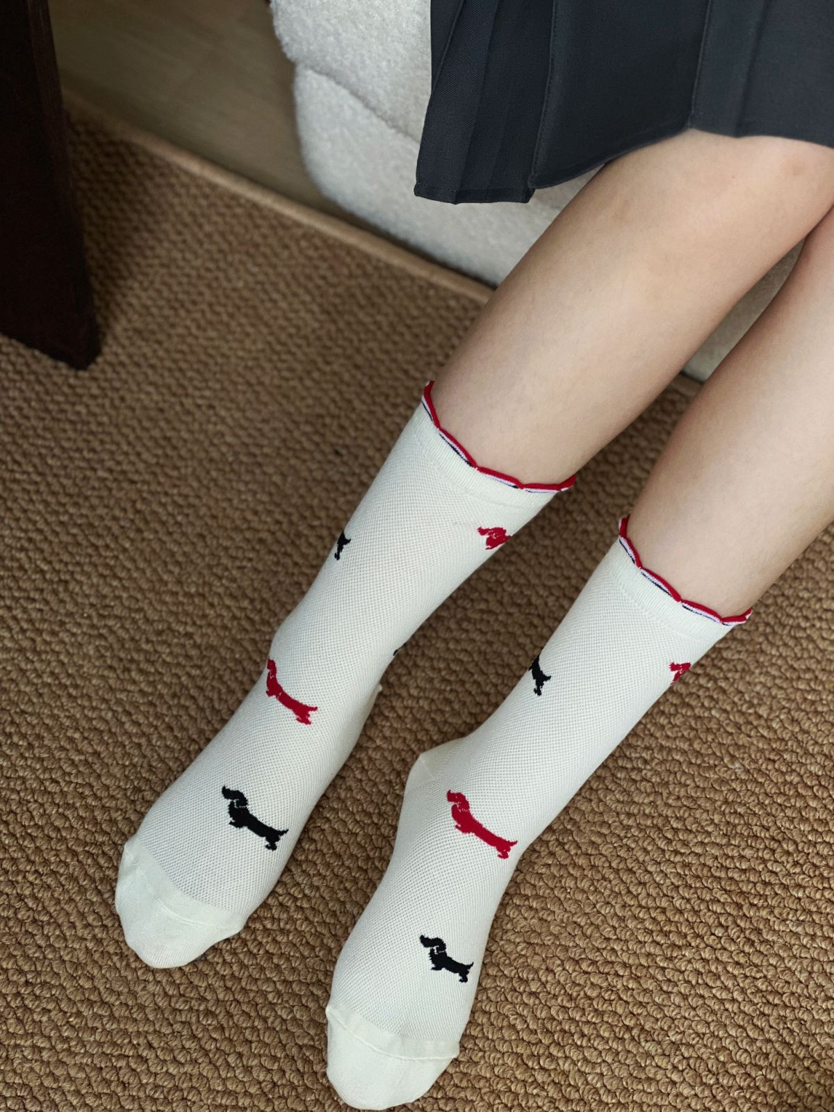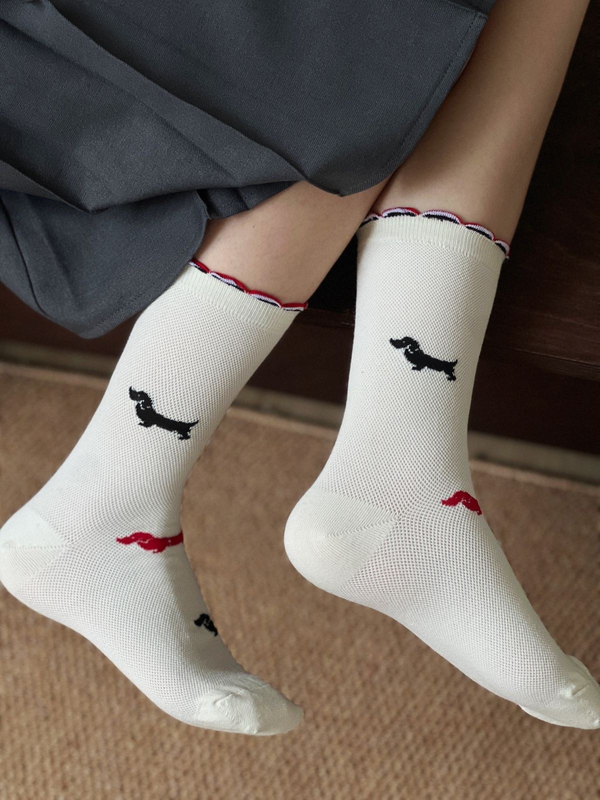 Dachshund Puppy Jacquard Mid-Tube 스포츠 캐주얼 양말 Ins 사이버 연예인 TB 레이스 양말 여성용 메쉬 할로우 양말스토어 가기