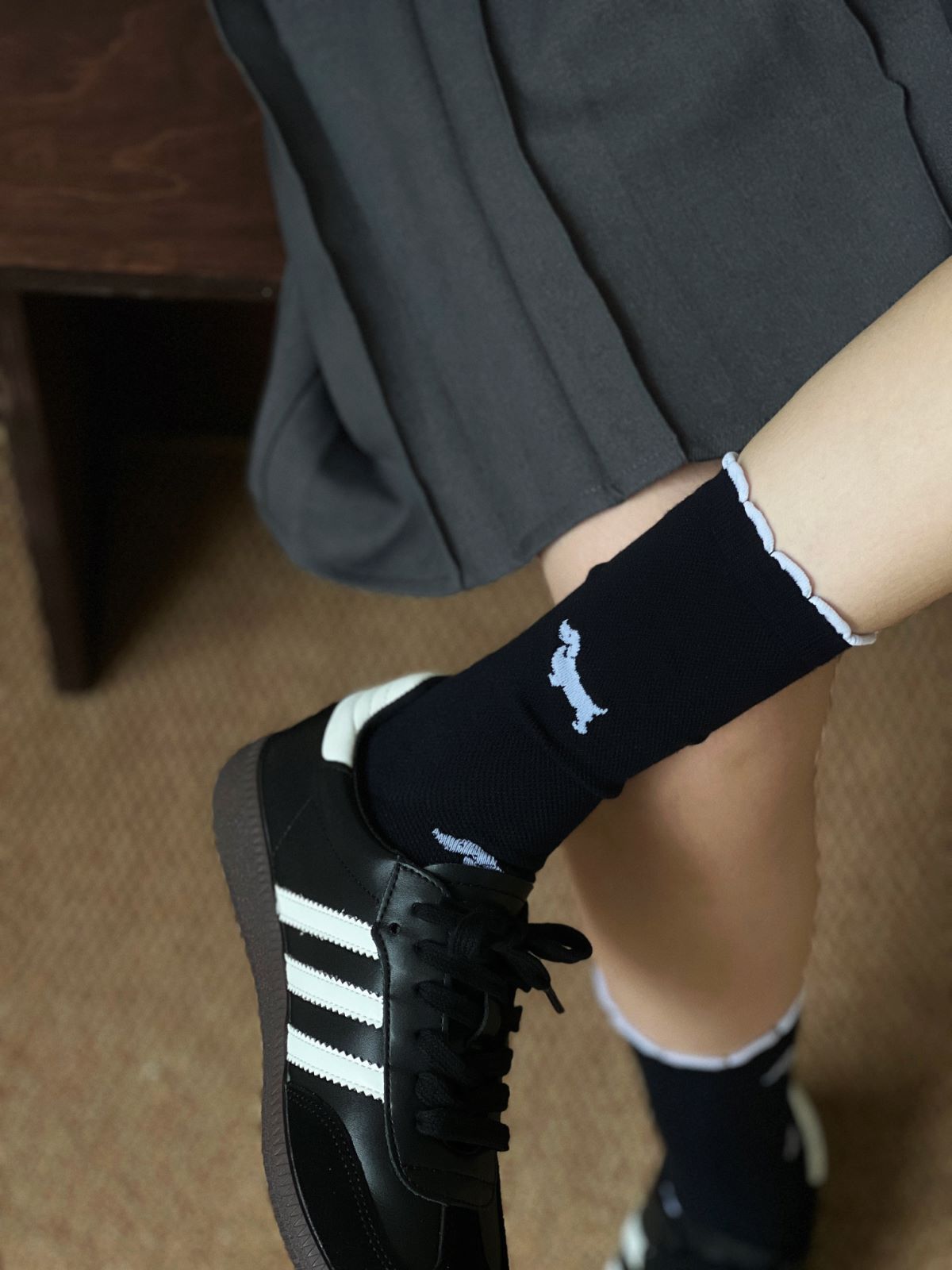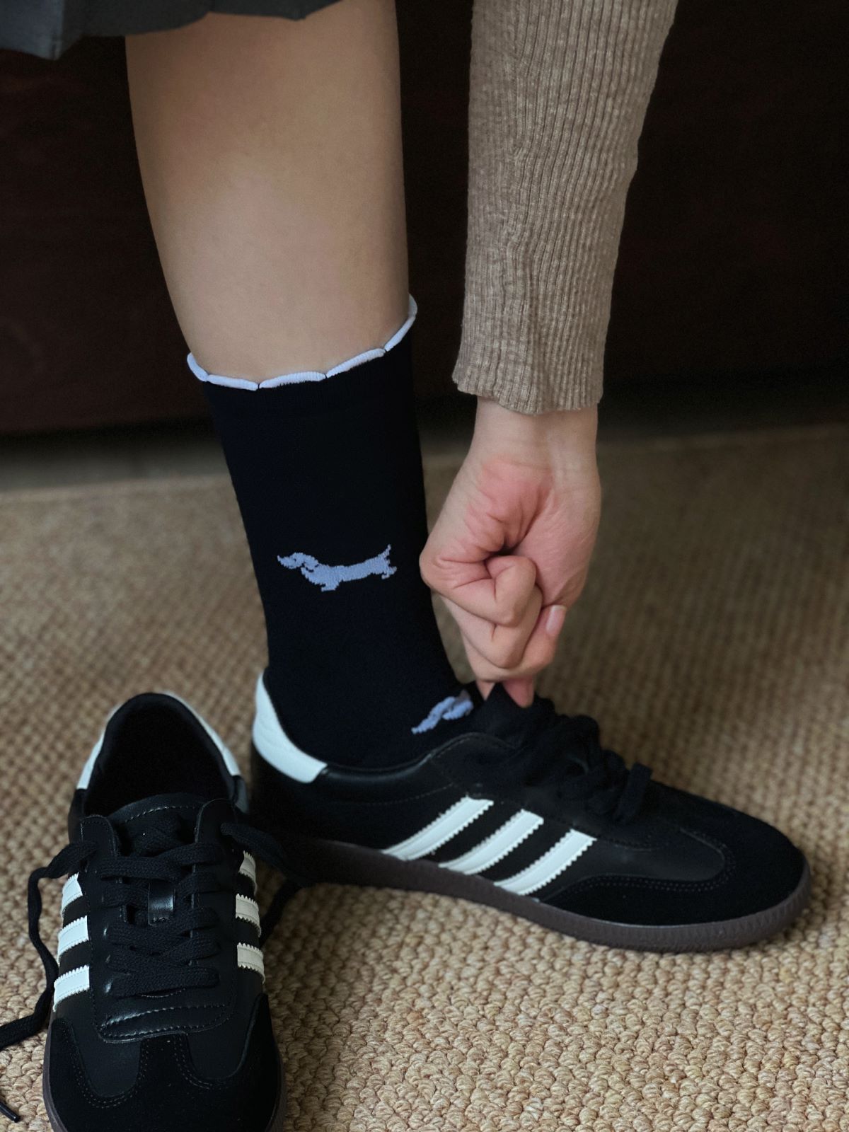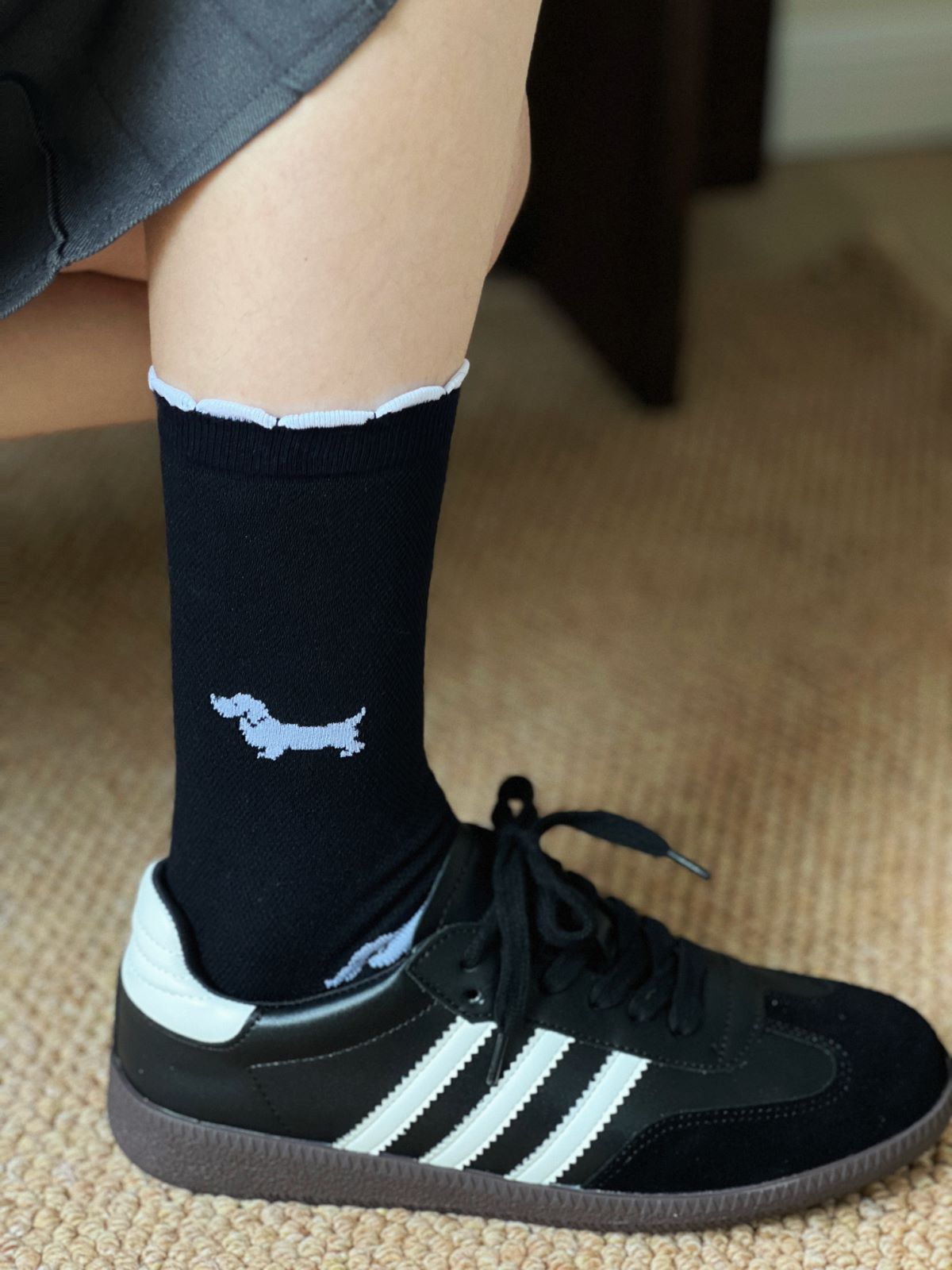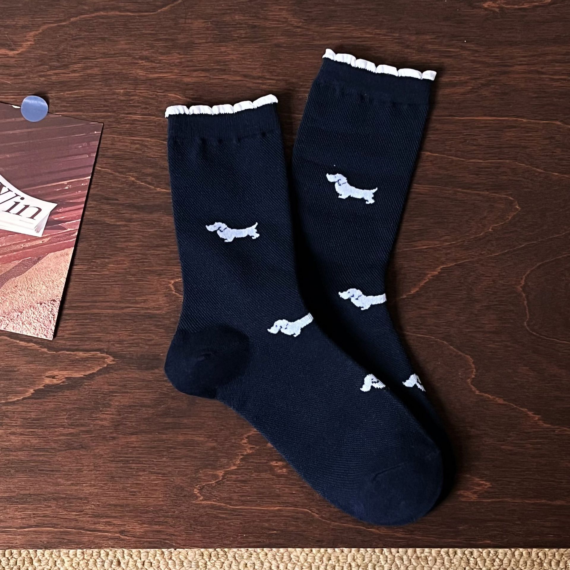 Dachshund Puppy Jacquard Mid-Tube 스포츠 캐주얼 양말 Ins 사이버 연예인 TB 레이스 양말 여성용 메쉬 할로우 양말스토어 가기
