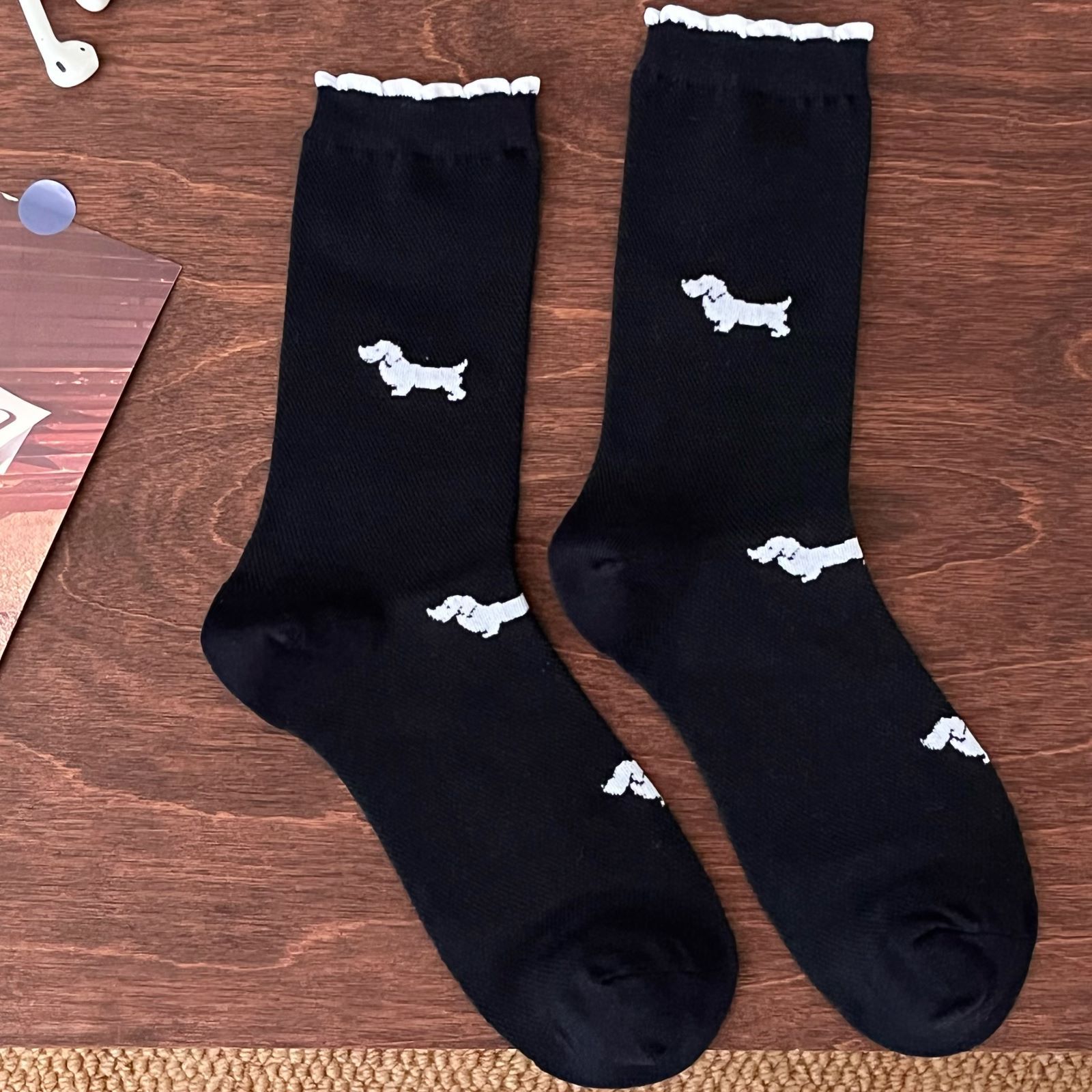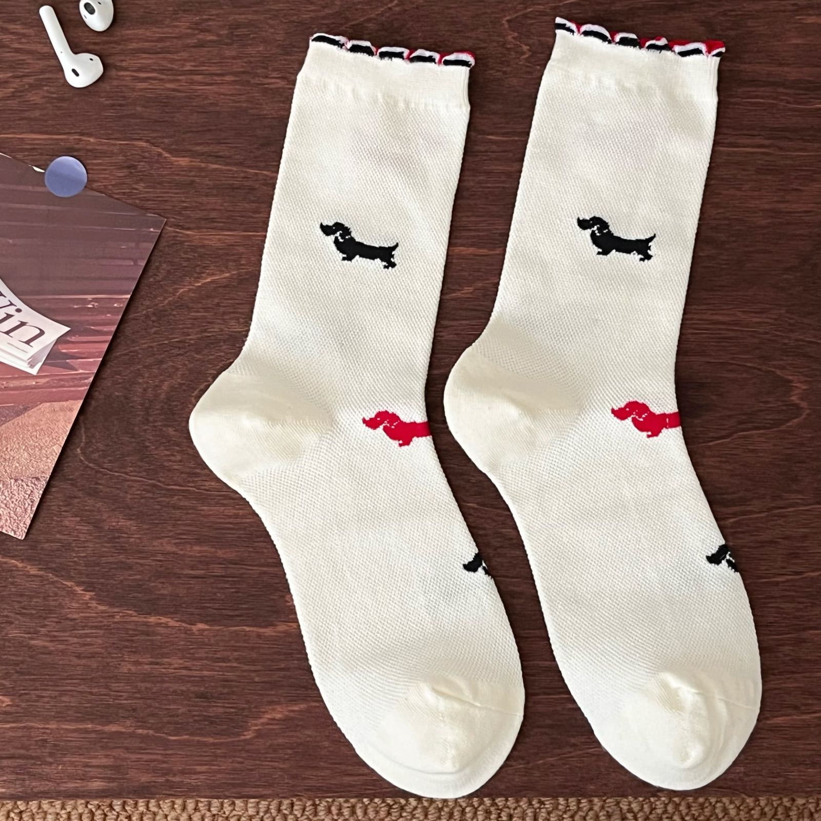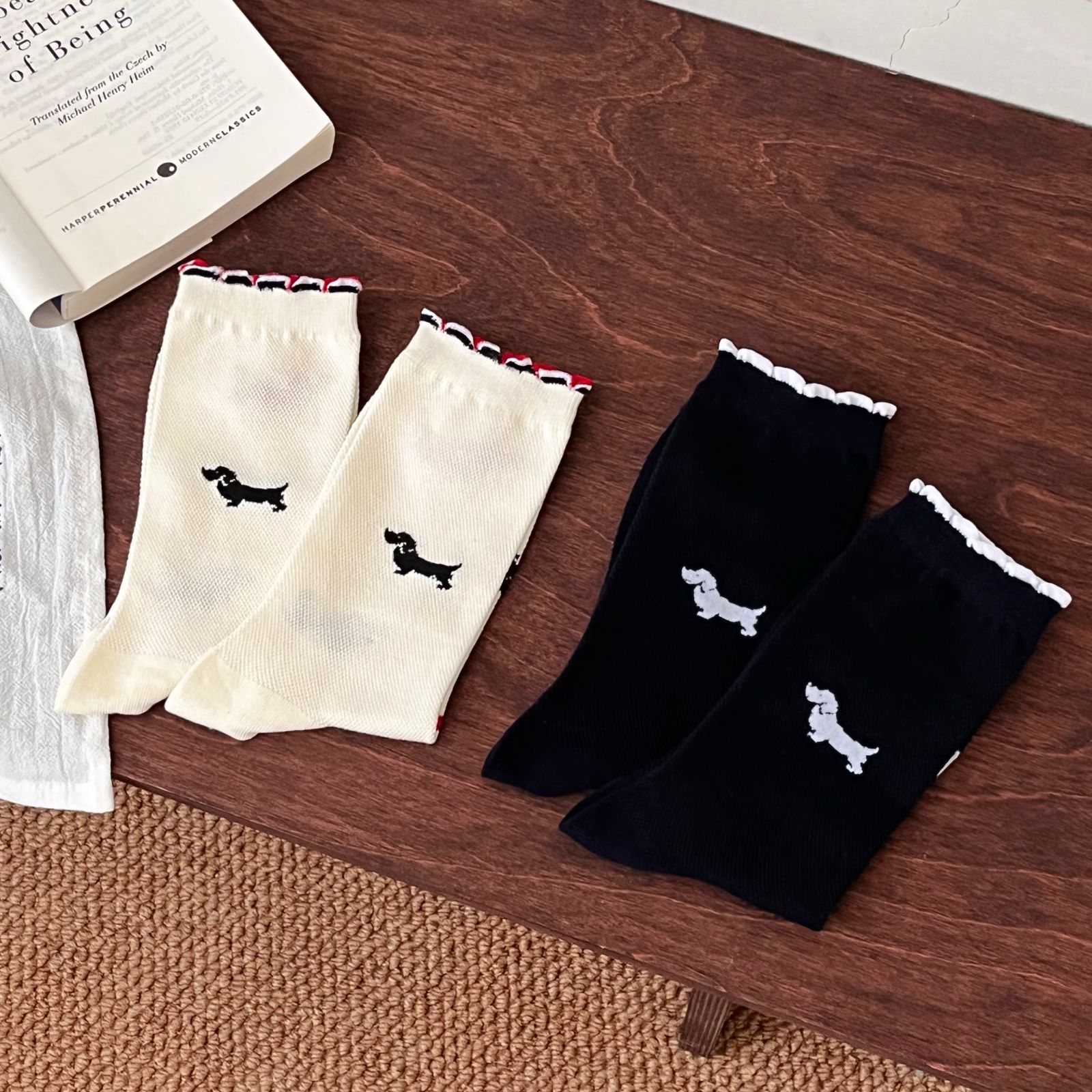Dachshund Puppy Jacquard Mid-Tube 스포츠 캐주얼 양말 Ins 사이버 연예인 TB 레이스 양말 여성용 메쉬 할로우 양말
