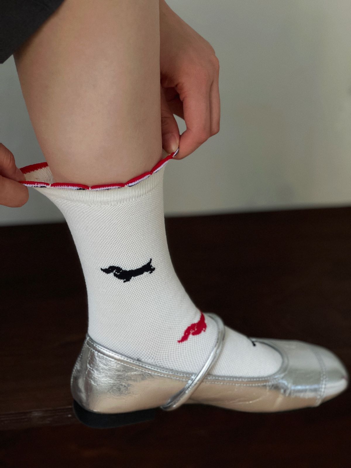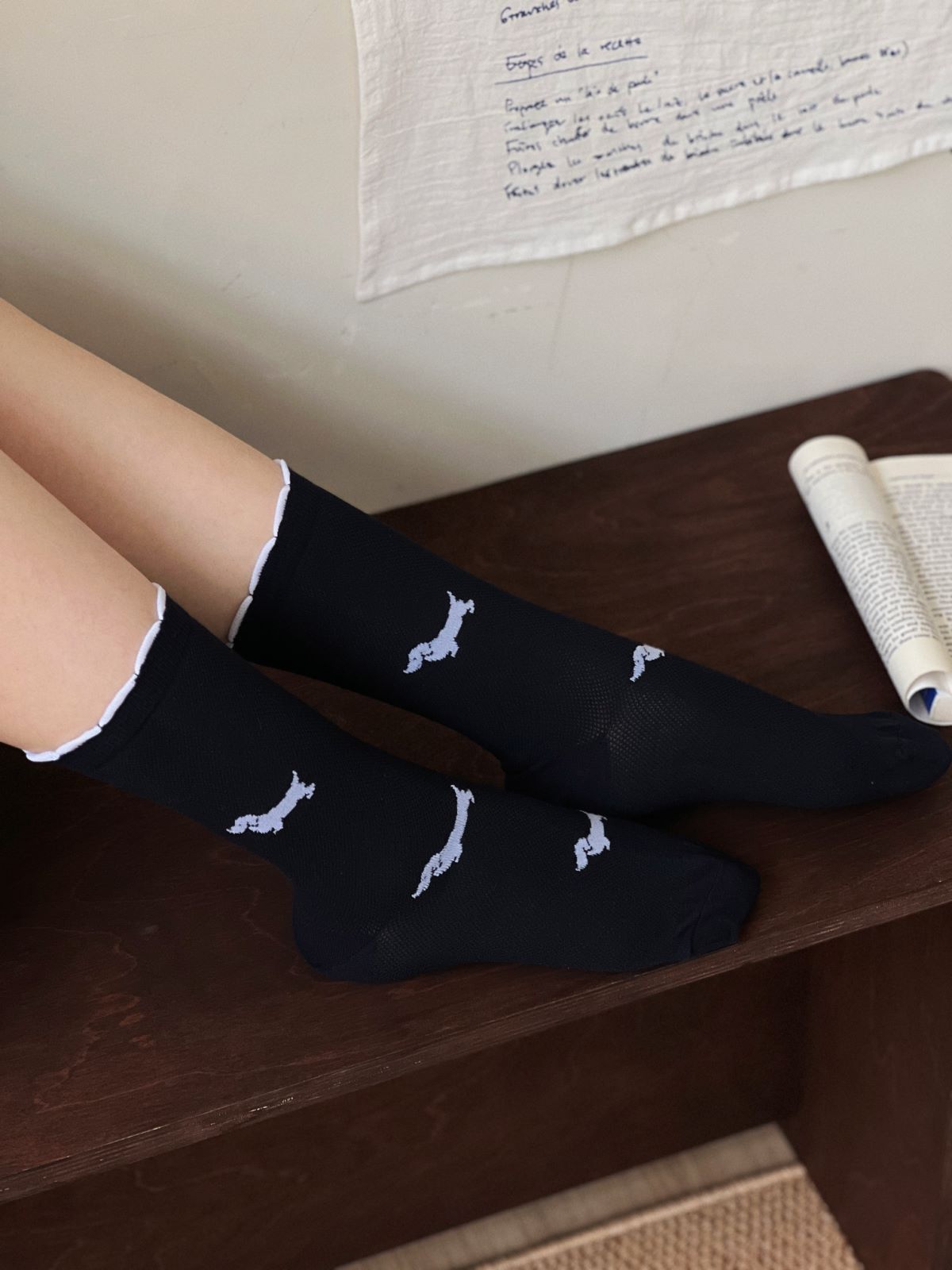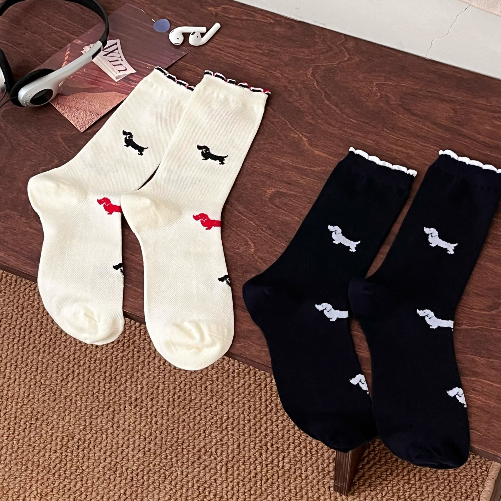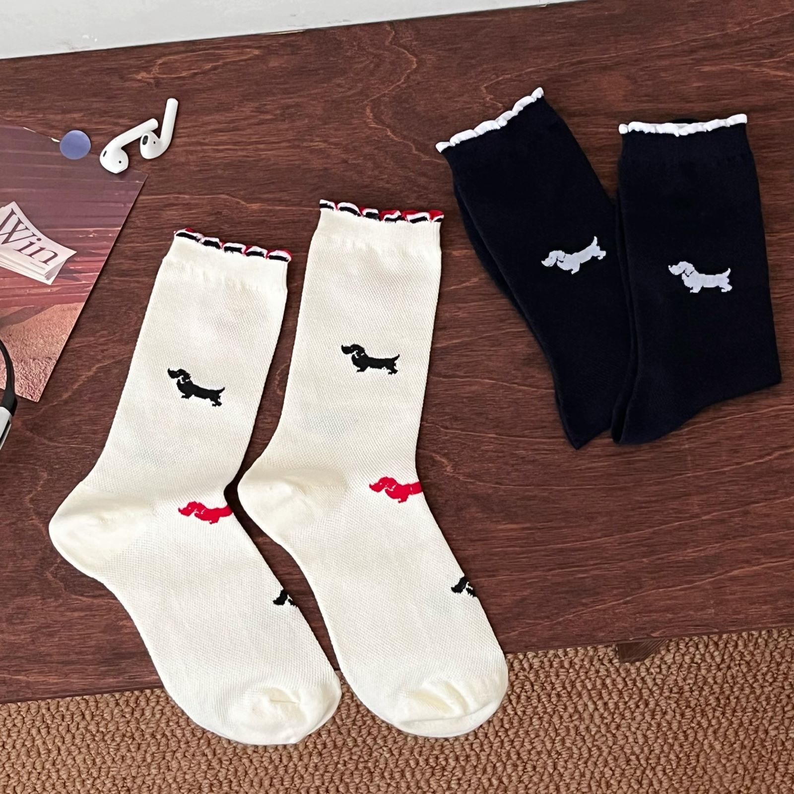 Dachshund Puppy Jacquard Mid-Tube 스포츠 캐주얼 양말 Ins 사이버 연예인 TB 레이스 양말 여성용 메쉬 할로우 양말