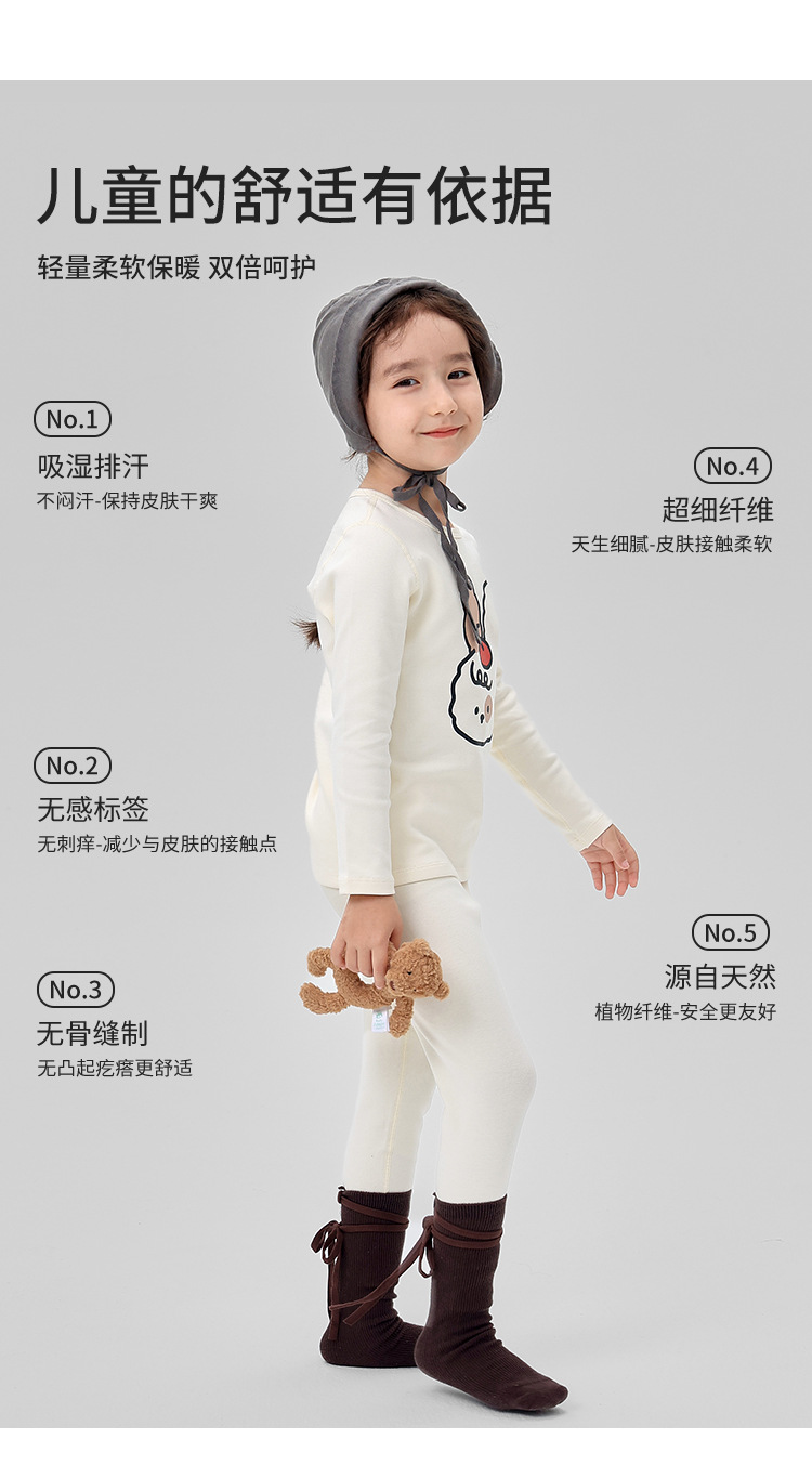 ZYZ 울 라이닝 아동 홈웨어 2025 가을 겨울 보온 속옷 세트 A급 만화 토끼 아동 잠옷스토어 가기