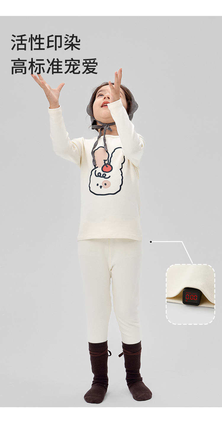 ZYZ 울 라이닝 아동 홈웨어 2025 가을 겨울 보온 속옷 세트 A급 만화 토끼 아동 잠옷