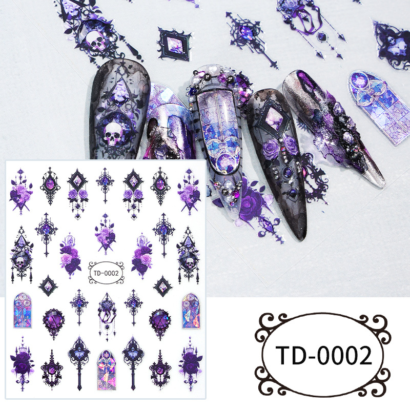 Zhengxiang 새로운 고딕 블러디 로즈 5d 소프트 접착제 네일 아트 스티커 릴리프 다크 블랙 할로윈 네일 스티커스토어 가기