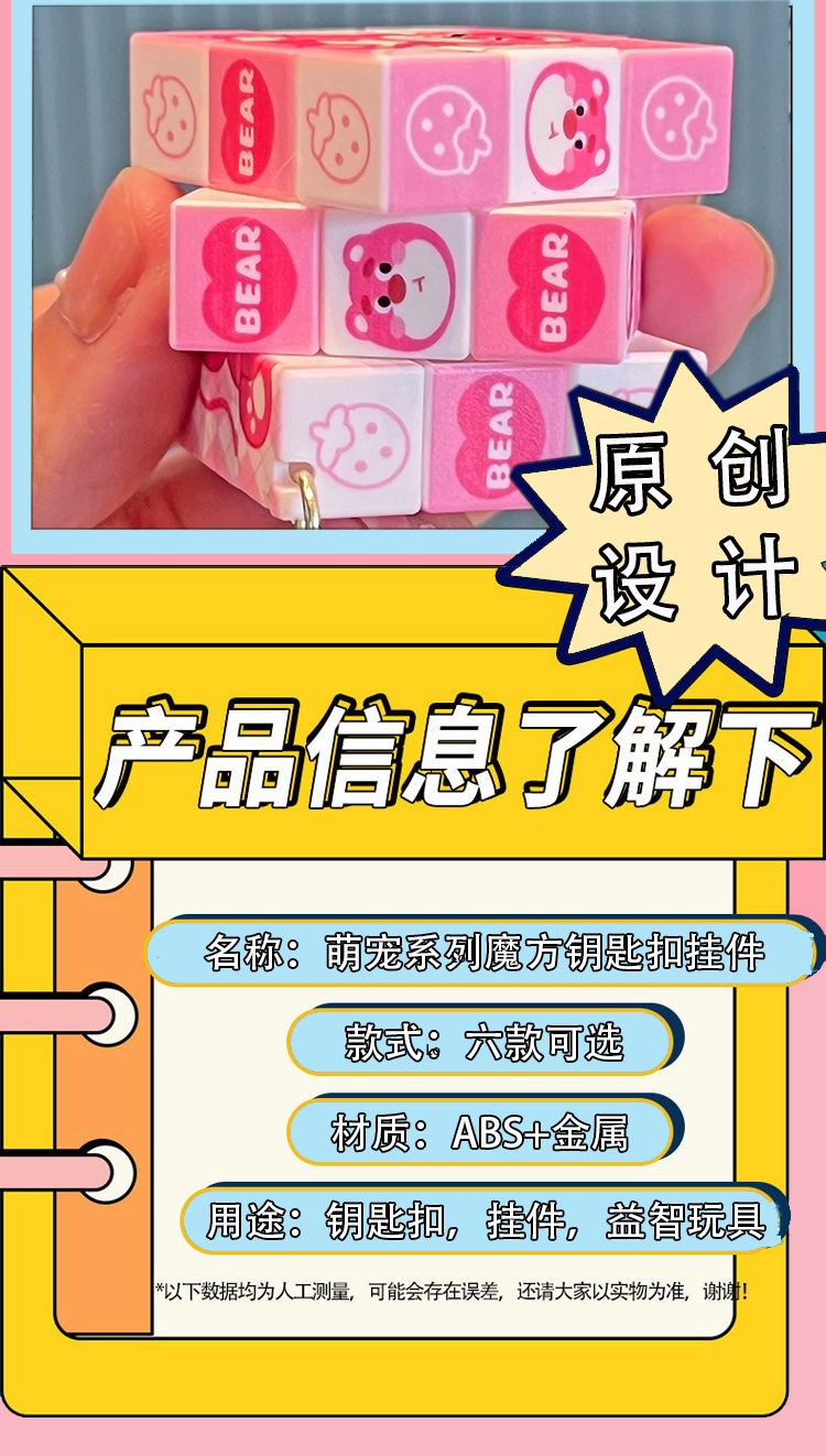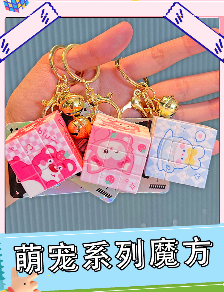 원래 귀여운 애완 동물 동물 귀여운 열쇠 고리 3 차 루빅스 큐브 장난감 어린이 작은 선물 열쇠 고리 책가방 펜던트스토어 가기