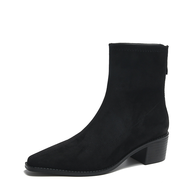 여성용 패셔너블 숏부츠 2025 가을 신상 싱글부츠 두꺼운 굽 뒤지퍼 프렌치 스타일 스웨이드 앵클부츠 마틴부츠스토어 가기