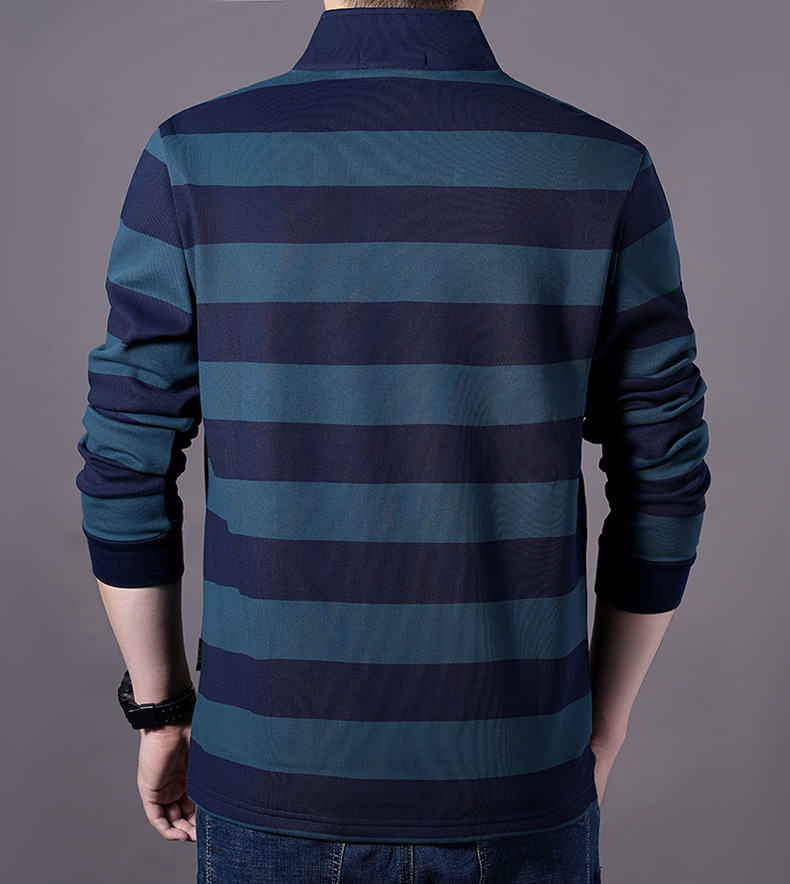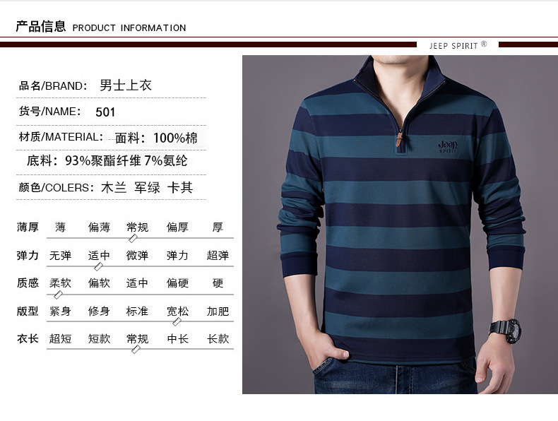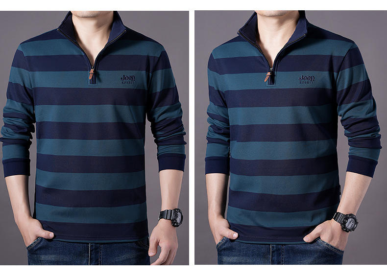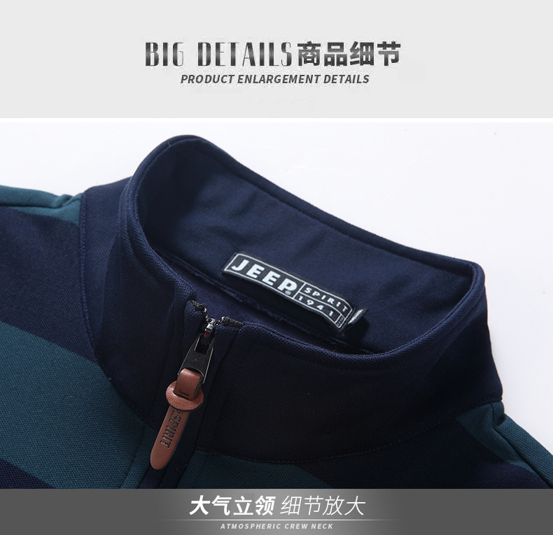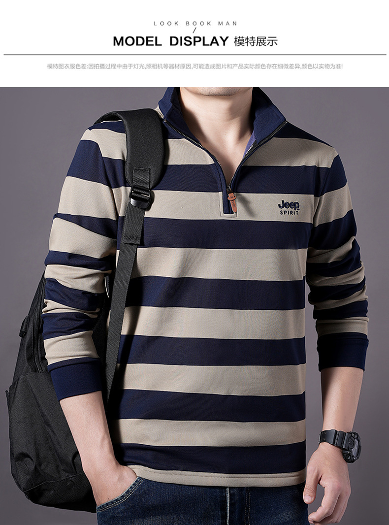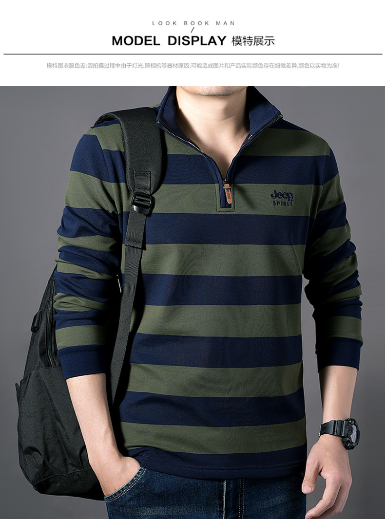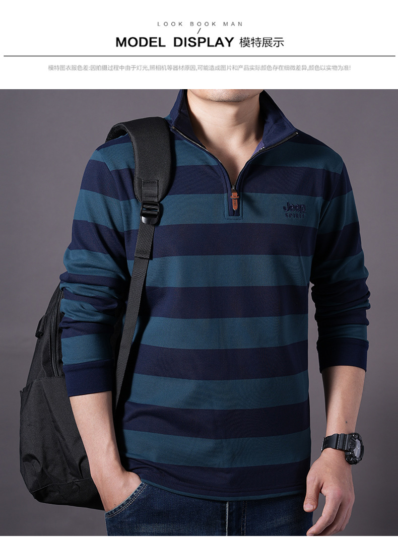 JEEP Jeep 2024 가을과 겨울 새 줄무늬 칼라 하프 지퍼 기모 스웨트 셔츠 남성용 느슨한 긴 소매 티셔츠 501