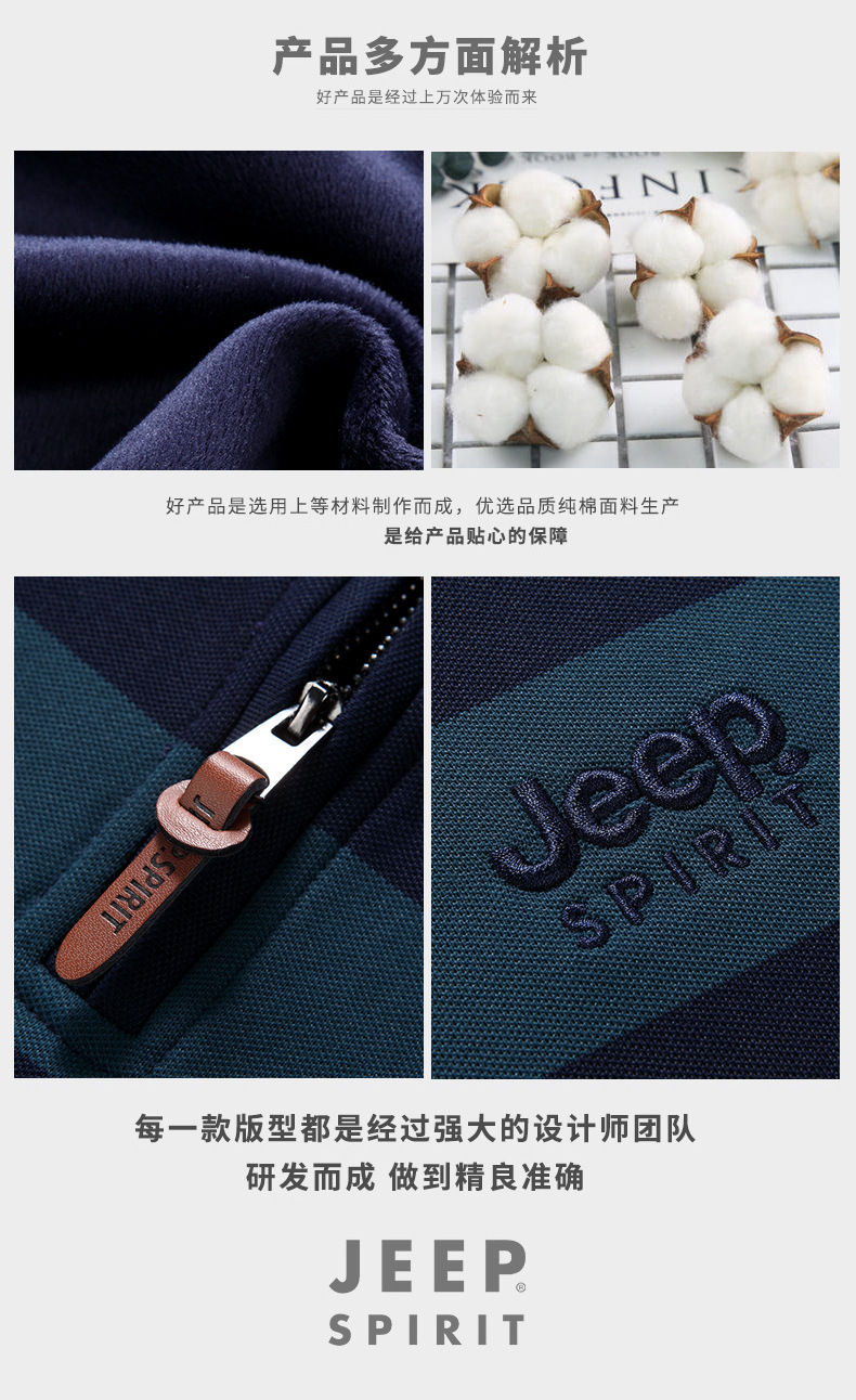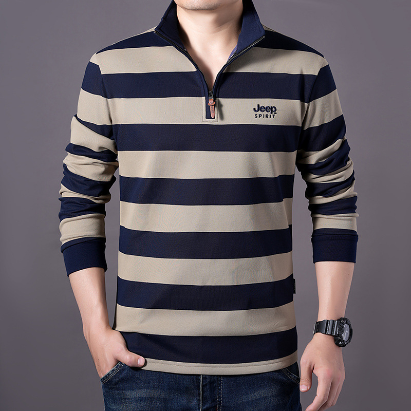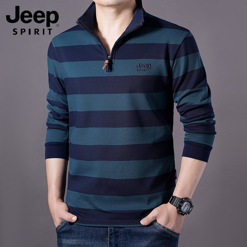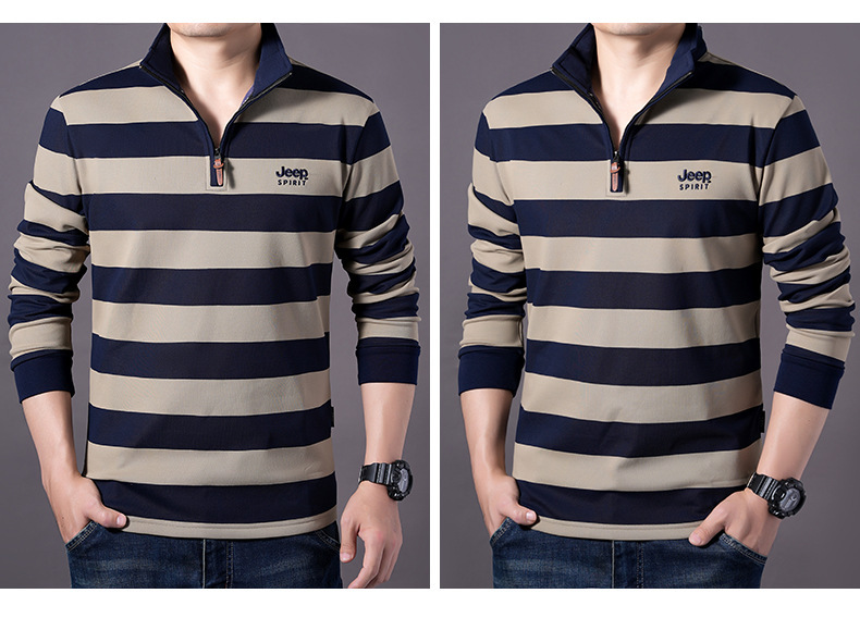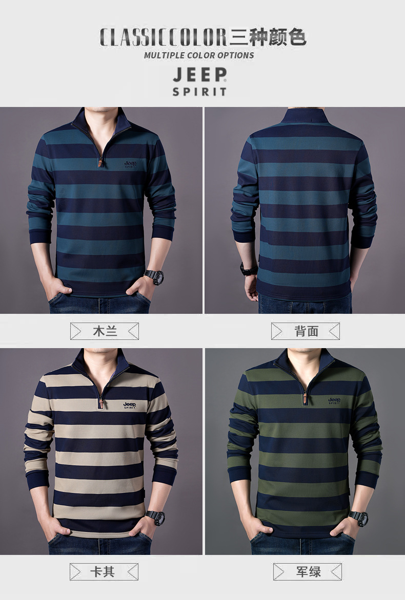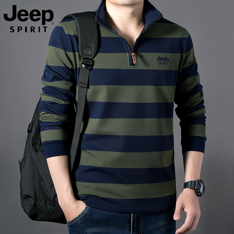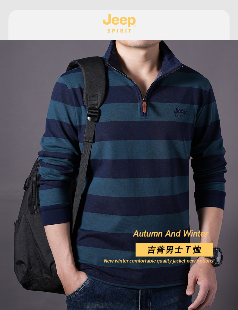 JEEP Jeep 2024 가을과 겨울 새 줄무늬 칼라 하프 지퍼 기모 스웨트 셔츠 남성용 느슨한 긴 소매 티셔츠 501스토어 가기