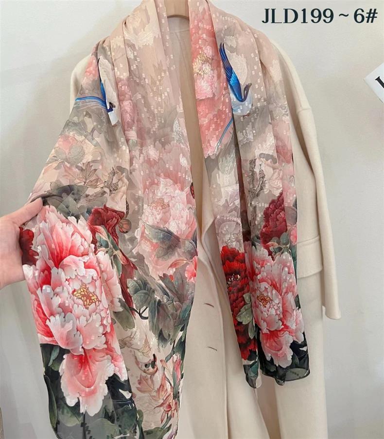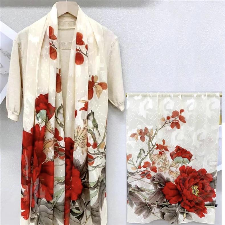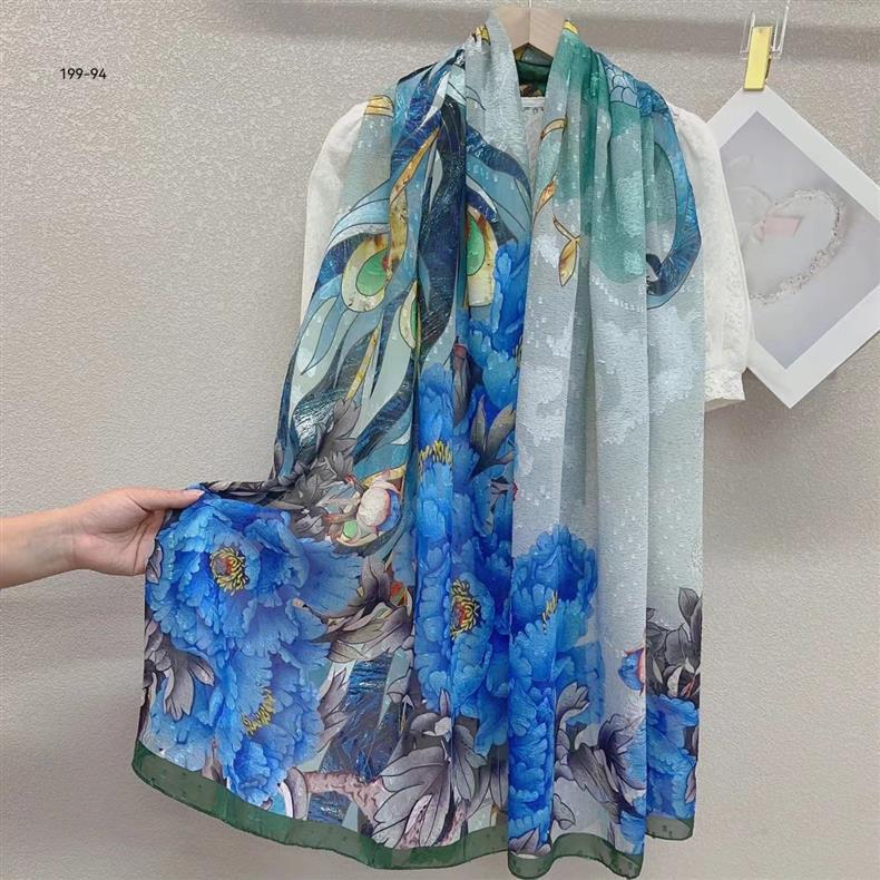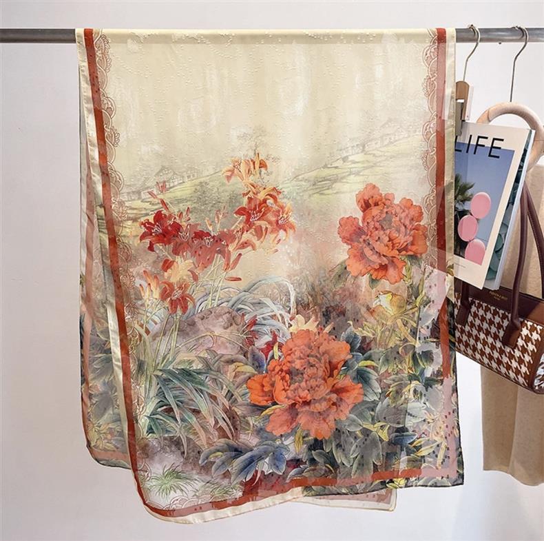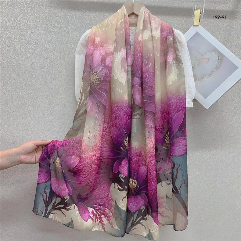 2024 새로운 스카프 컷 꽃 스카프 긴 고급 실크 스카프 목도리 실크 스카프 여성의 여름 얇은 긴 스카프 해변 스카프스토어 가기