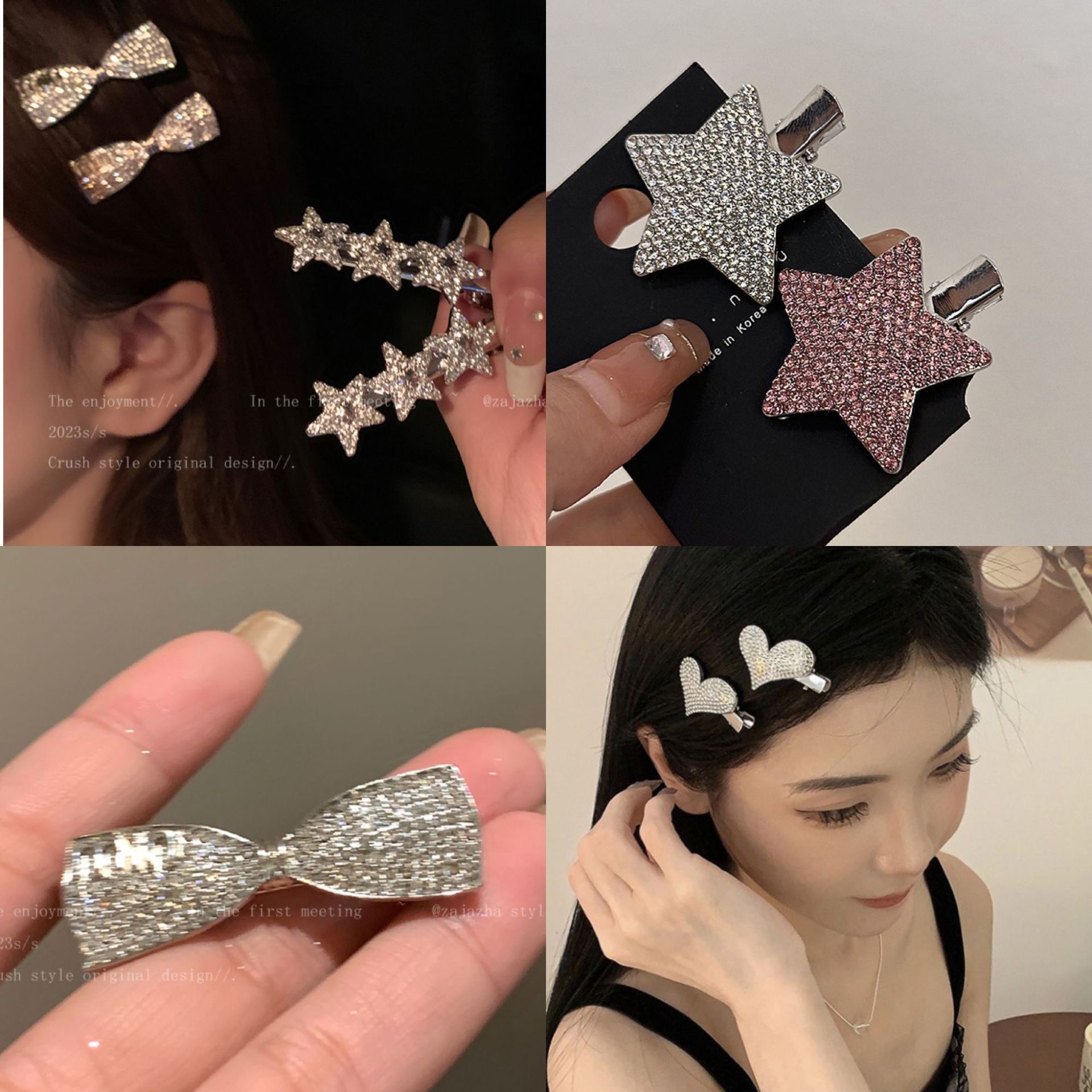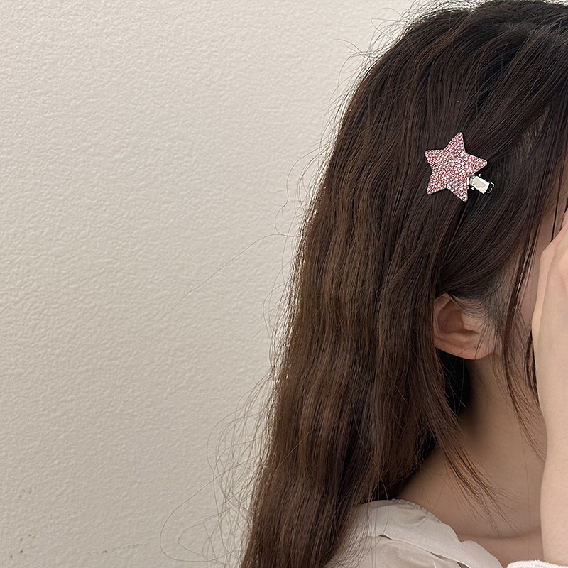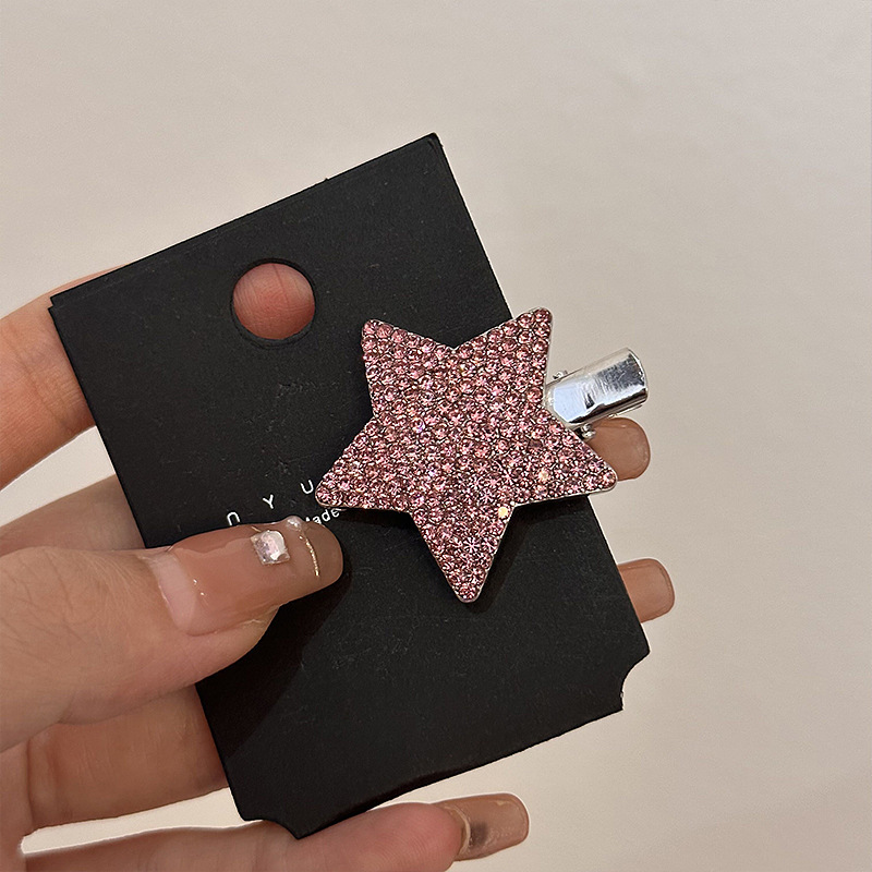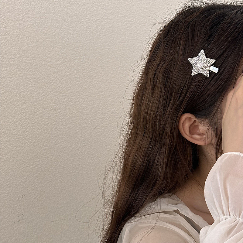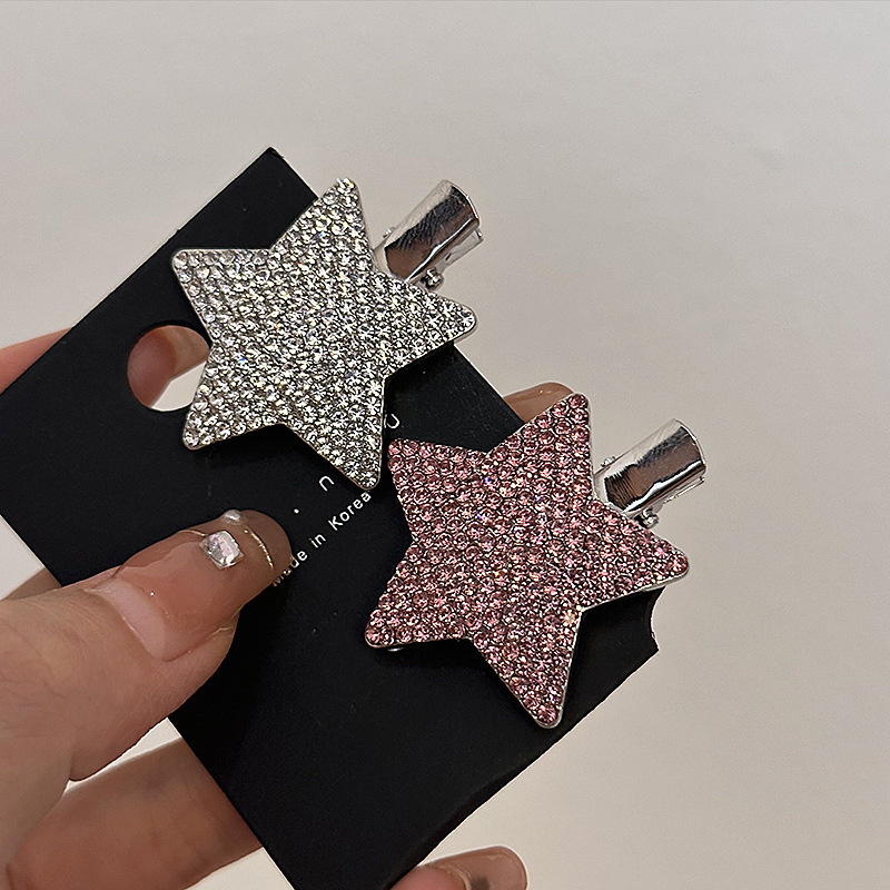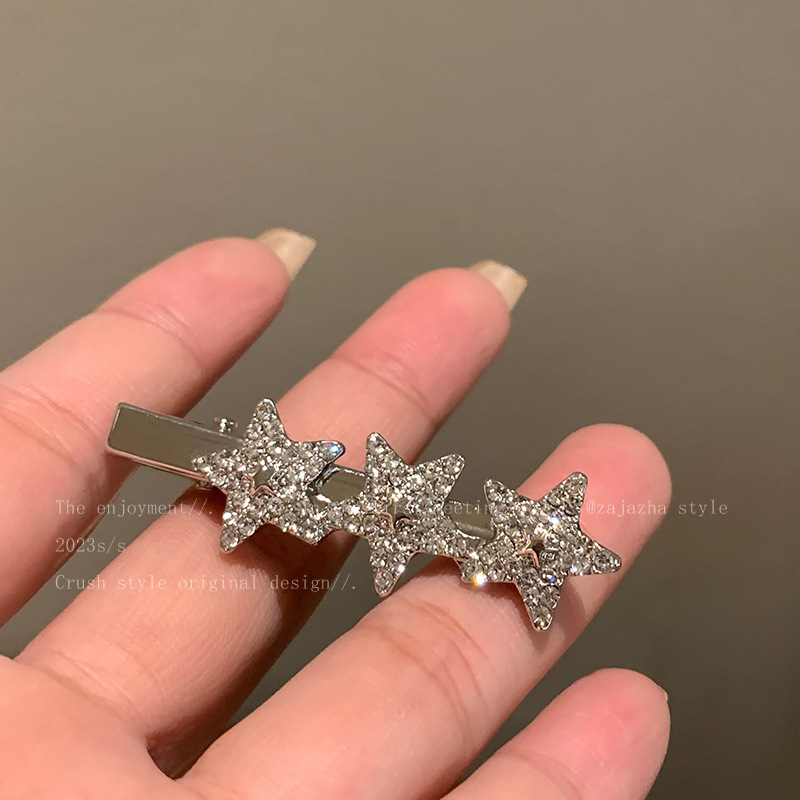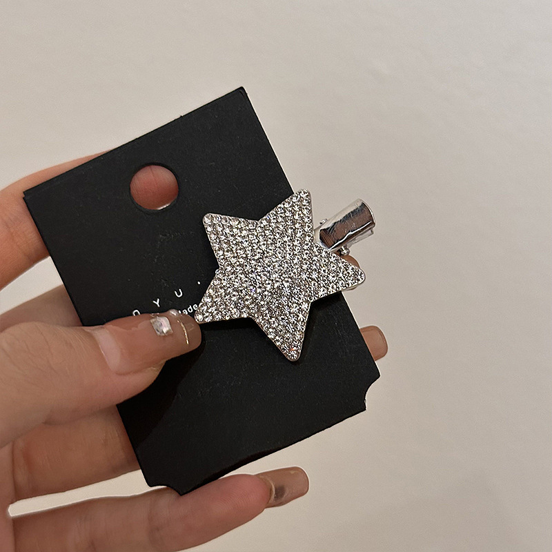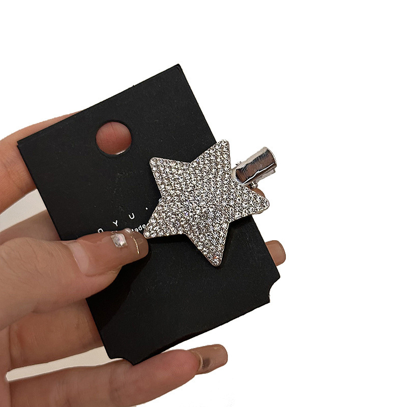 슈퍼 플래시 라인스톤 스타 헤어핀 라이트 럭셔리 하이 엔드 센스 뱅 클립 사이드 클립 풀 다이아몬드 및 다이아몬드 메탈 헤어핀 헤어 액세서리
