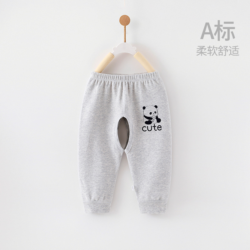 아기의 긴 존스 아기의 순면 봄과 가을 소년 레깅스 오픈 크로 치 바지 어린이 바지 비 기저귀 뼈