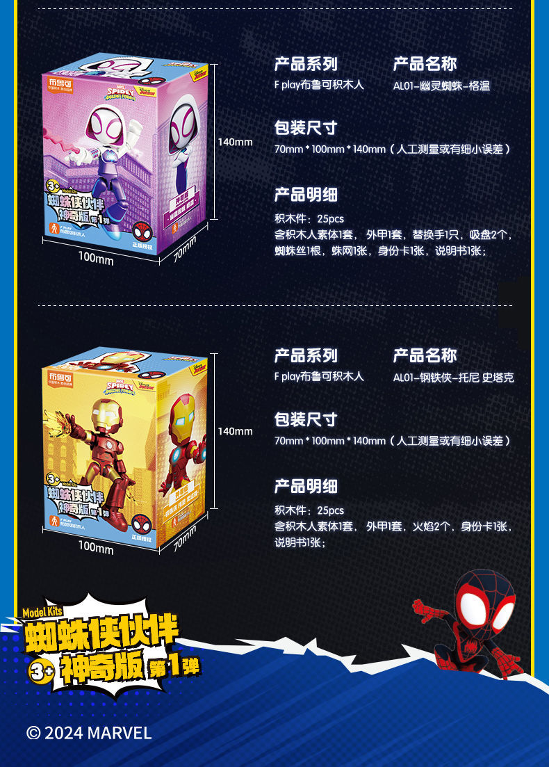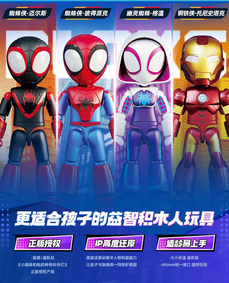 브루코 빌딩 블록 스파이더 맨 동반자 피터 파커 마이어스 그웬 아이언 맨 토니 스타크 장난감