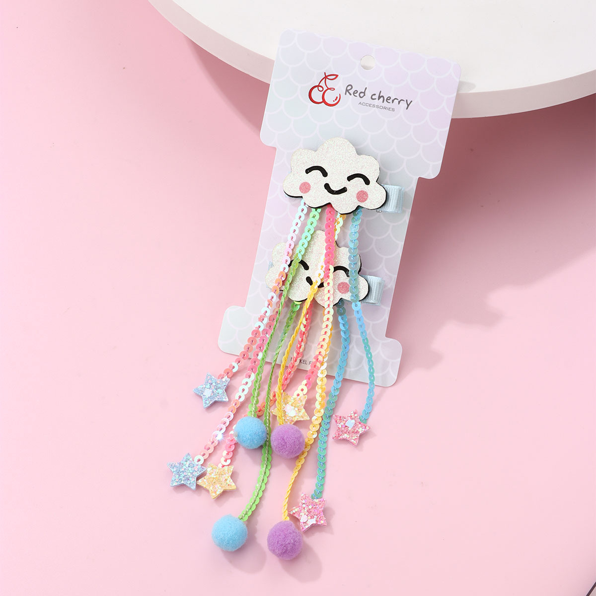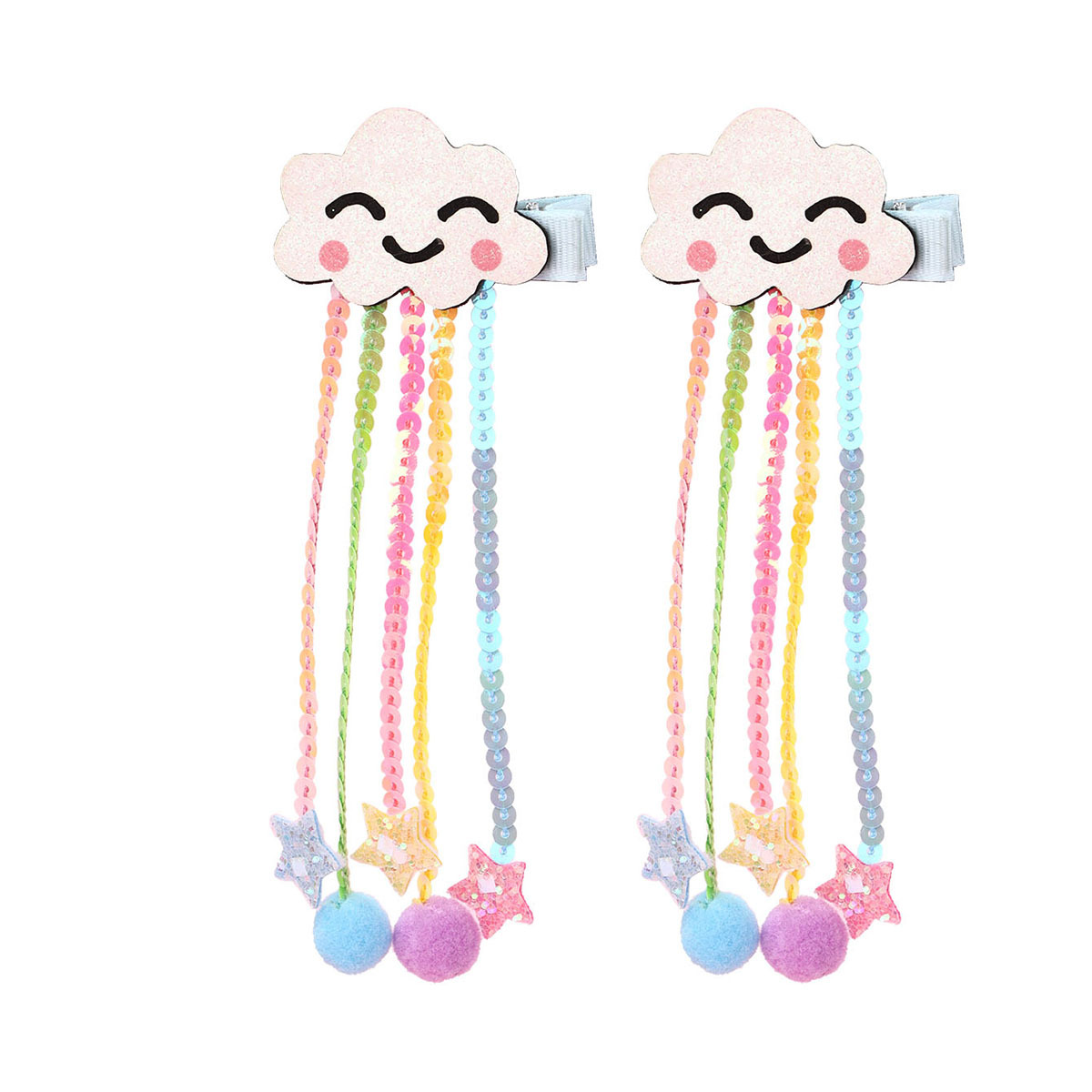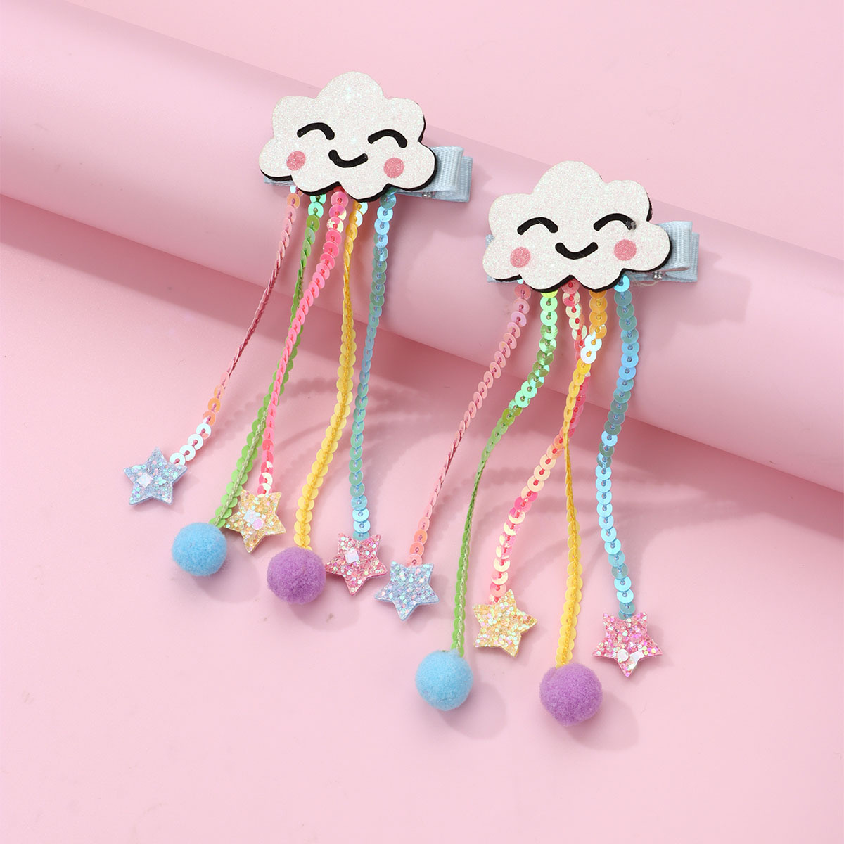 국경 간 뜨거운 어린이 머리핀 신선한 달콤한 구름 웃는 얼굴 스팽글 리본 깨진 머리 미끄럼 방지 헤어 액세서리 도매