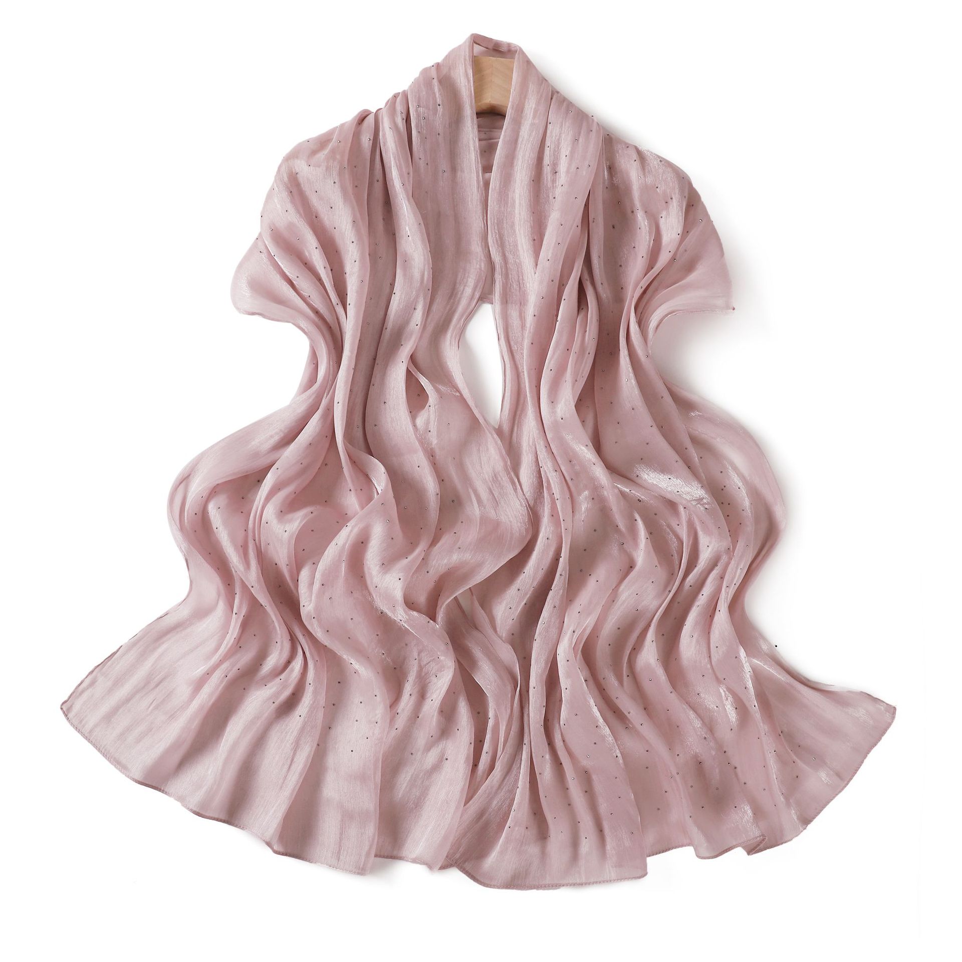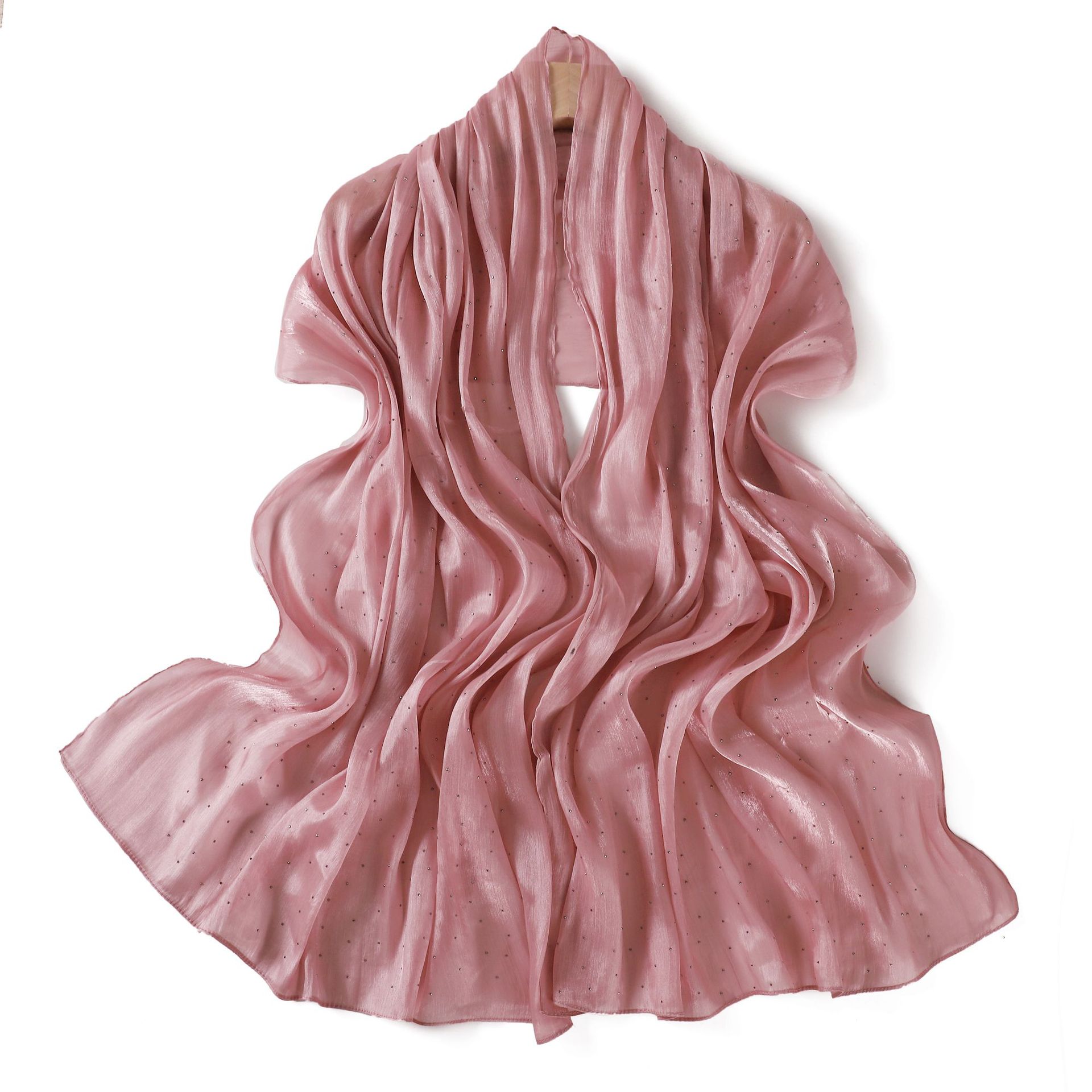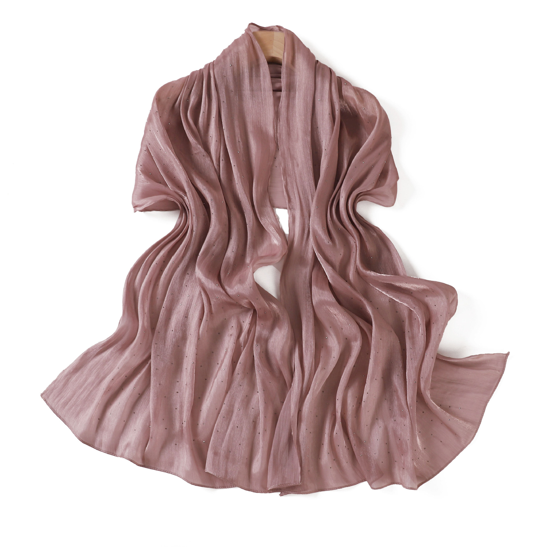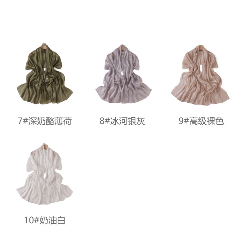 Gipsophila 분쇄 다이아몬드 섬 단조 주름 광택 단색 긴 스카프 잔디 목도리 실크 스카프 해변 스카프