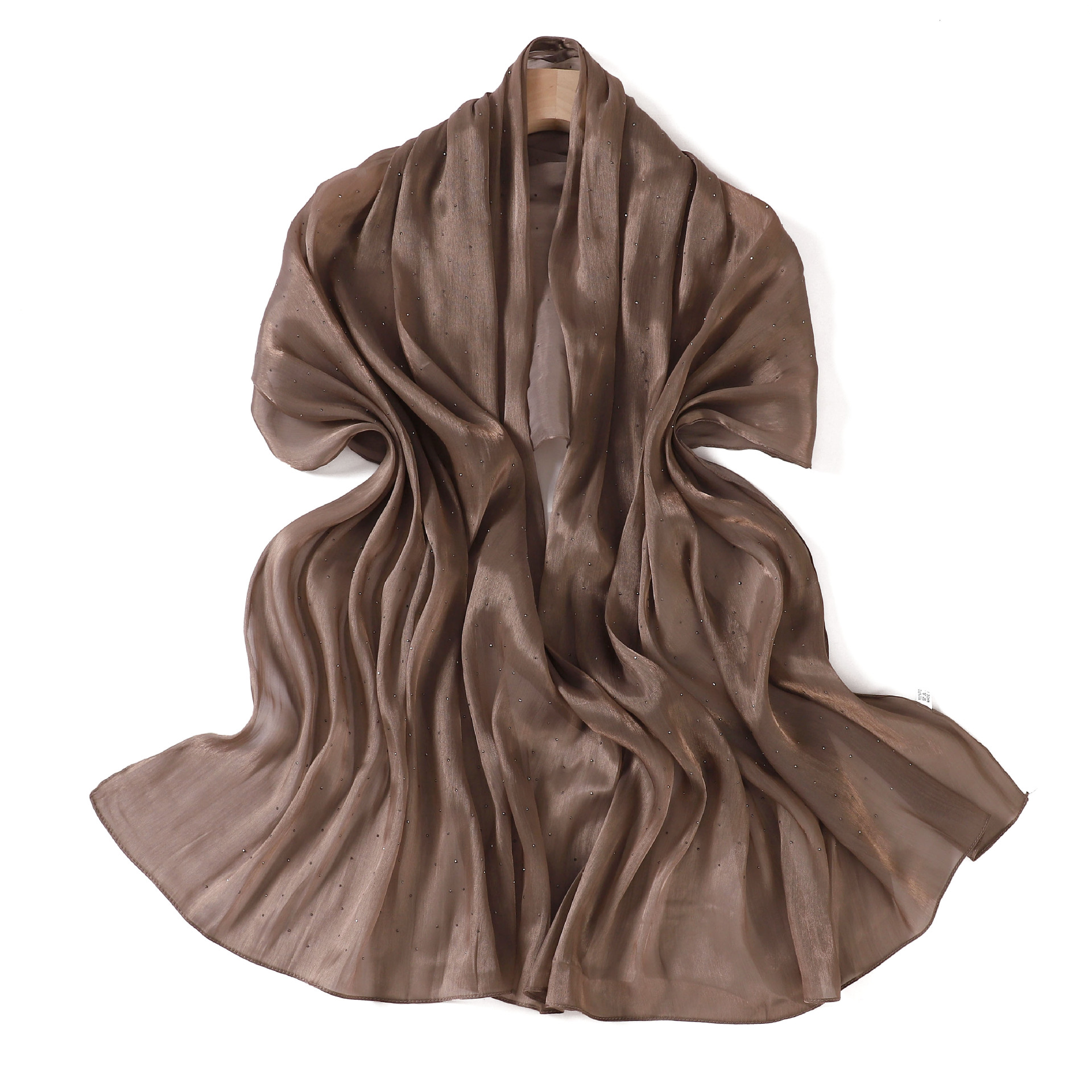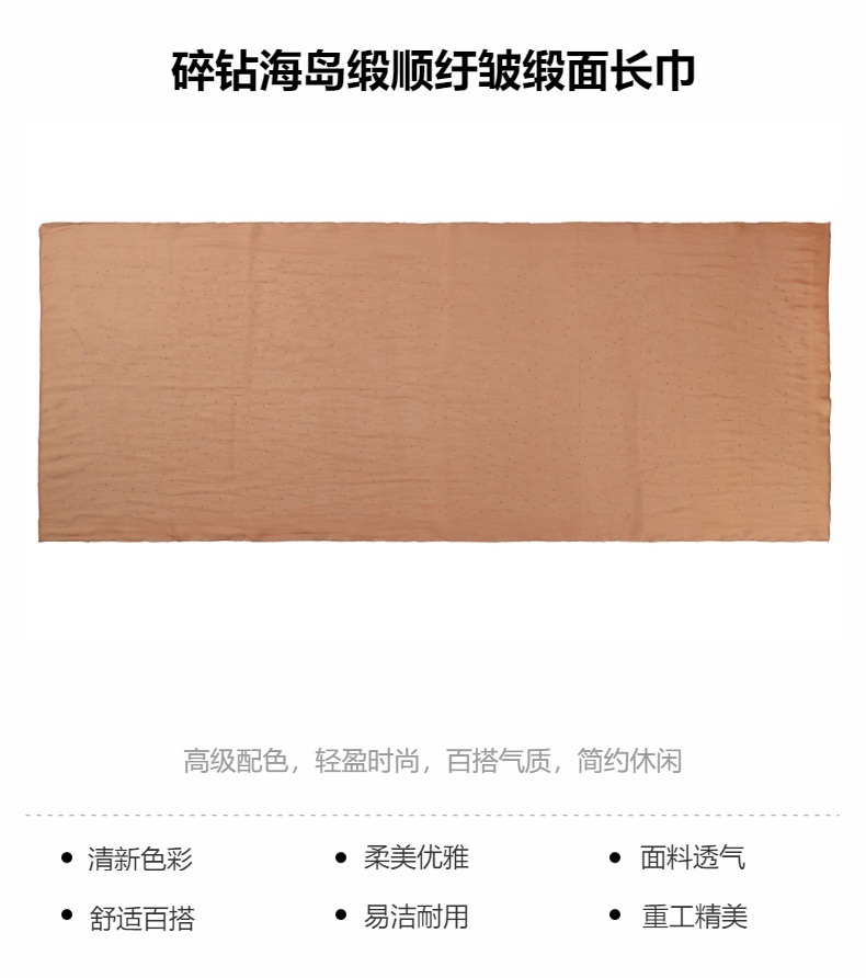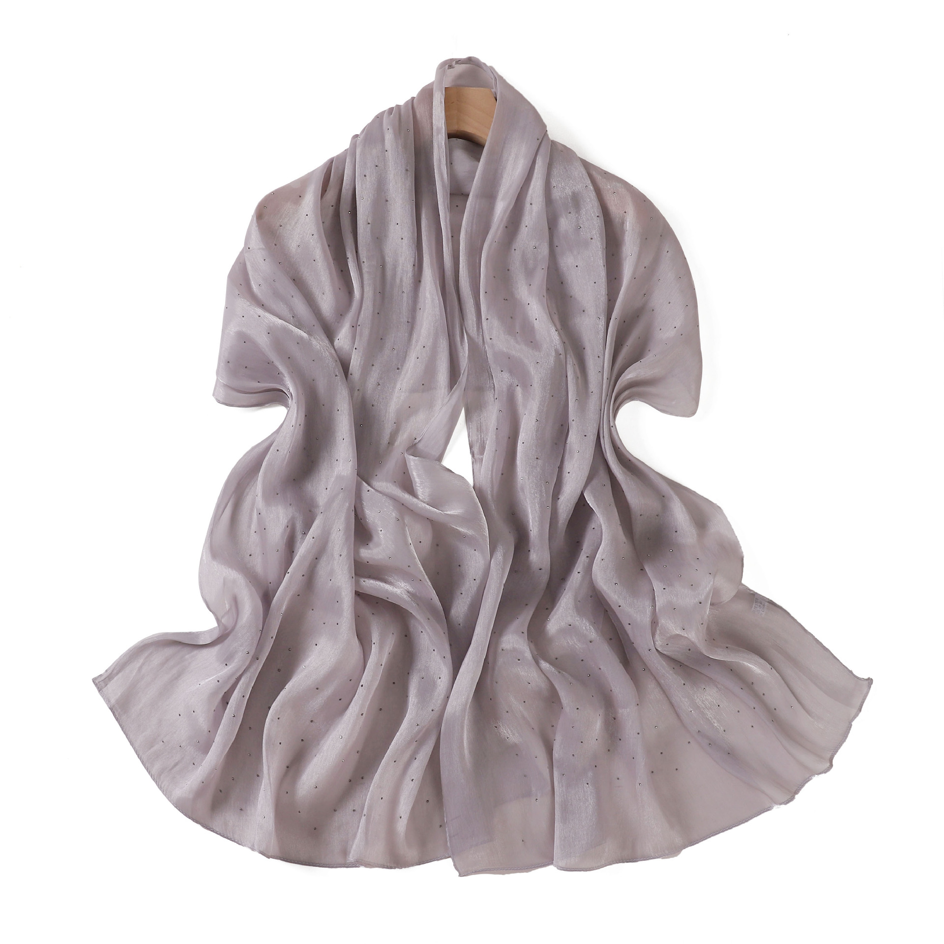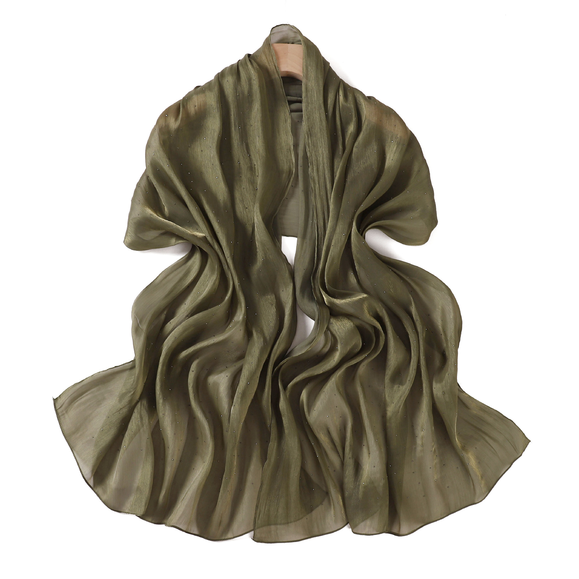 Gipsophila 분쇄 다이아몬드 섬 단조 주름 광택 단색 긴 스카프 잔디 목도리 실크 스카프 해변 스카프