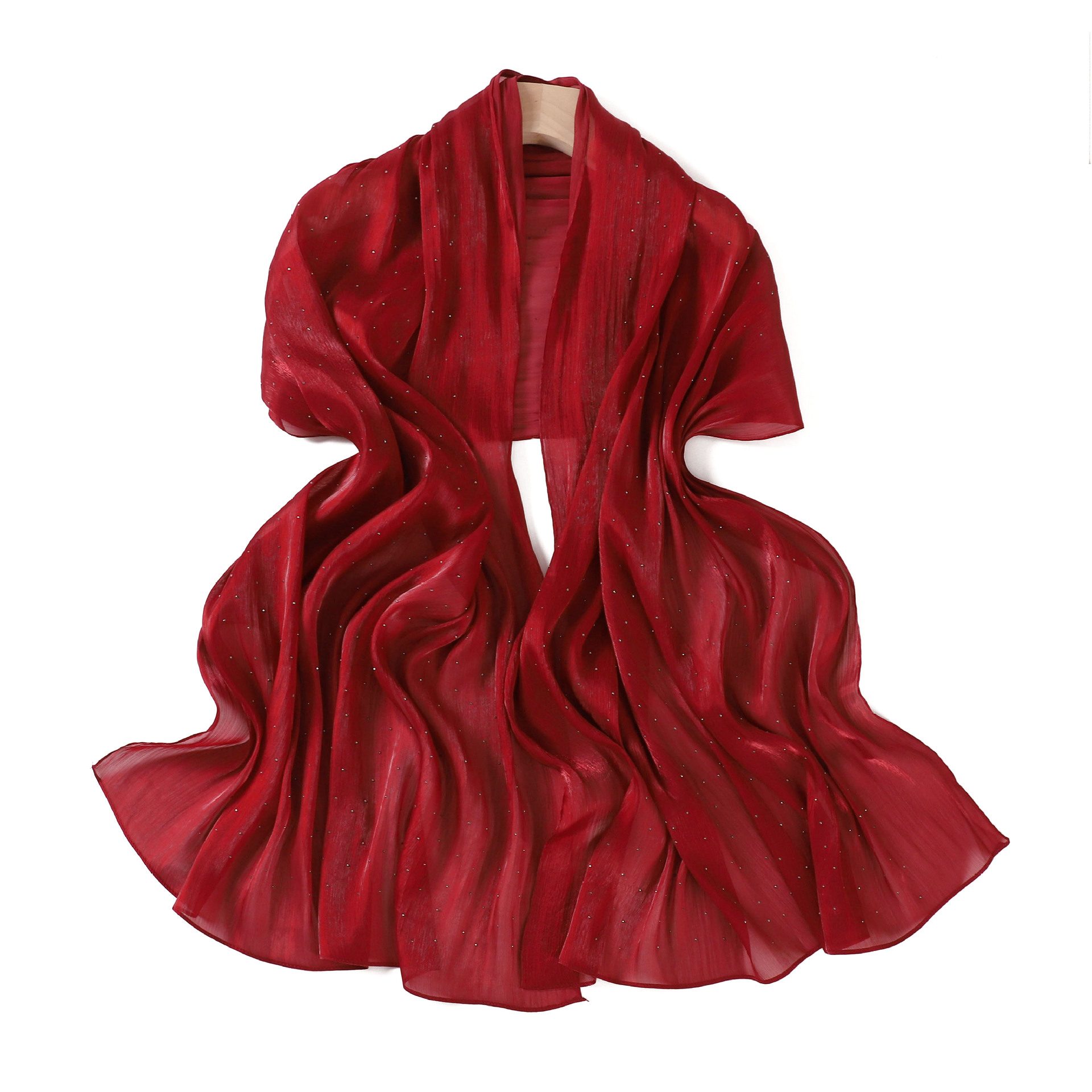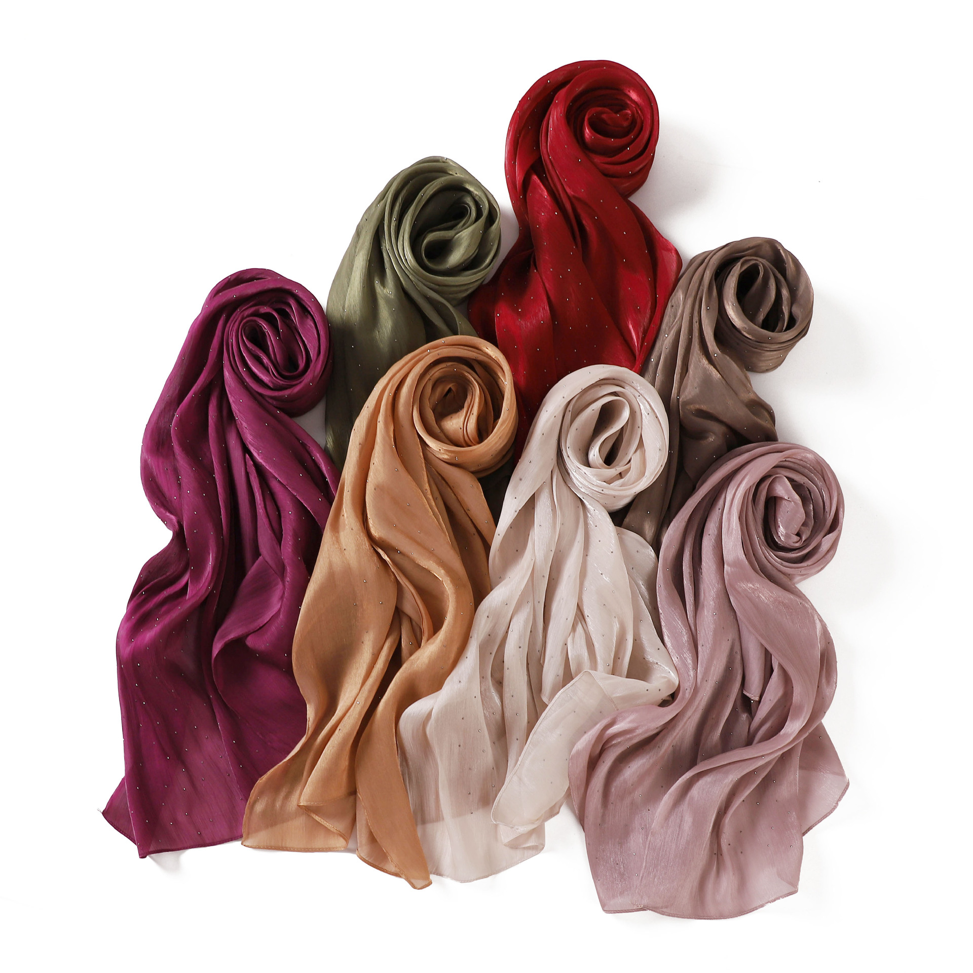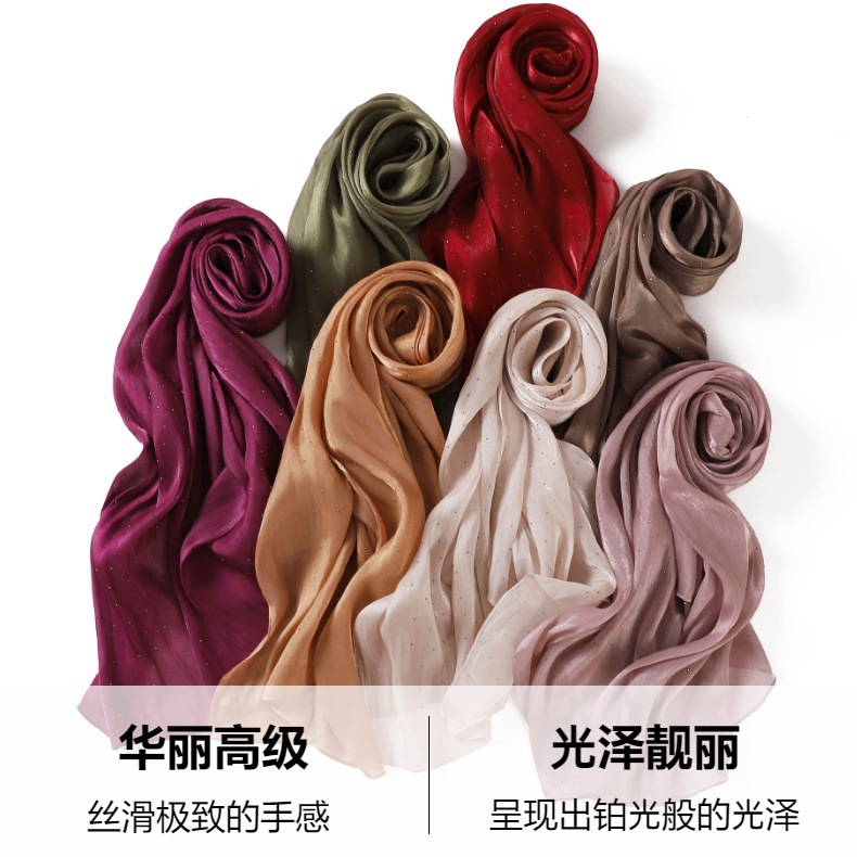 Gipsophila 분쇄 다이아몬드 섬 단조 주름 광택 단색 긴 스카프 잔디 목도리 실크 스카프 해변 스카프스토어 가기