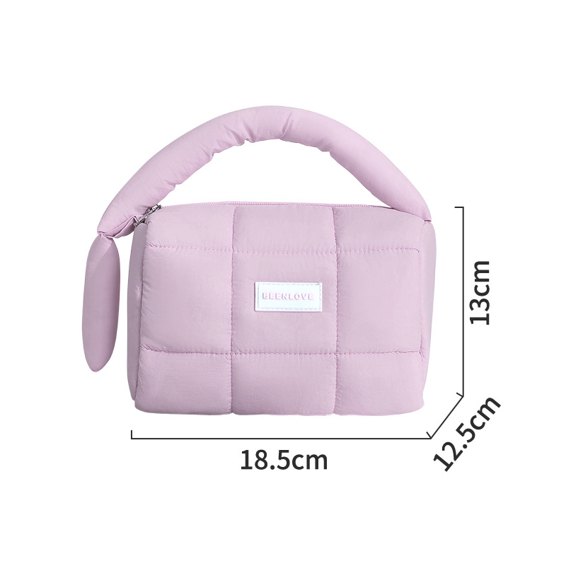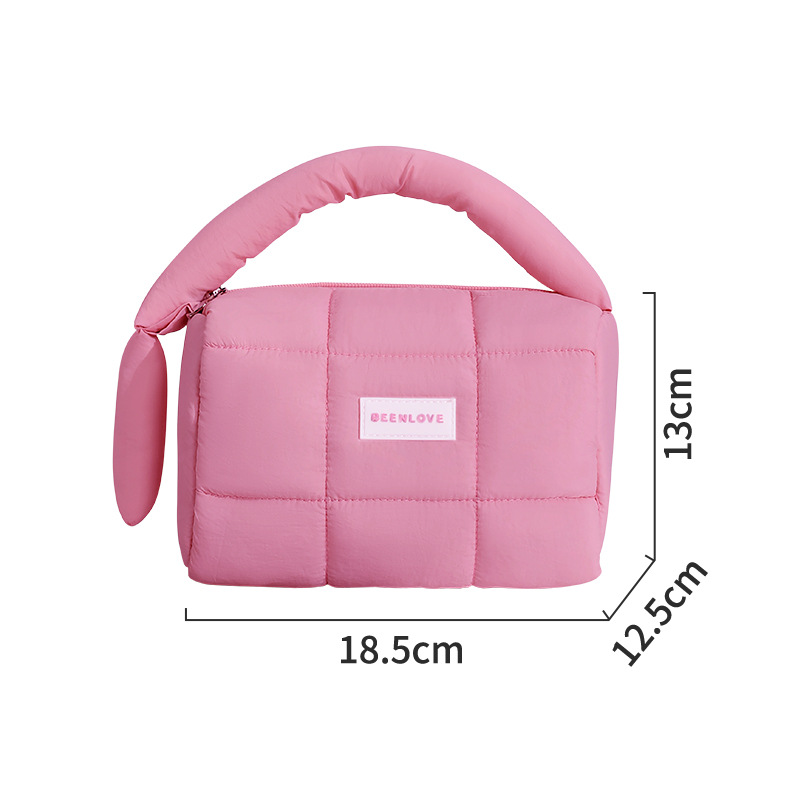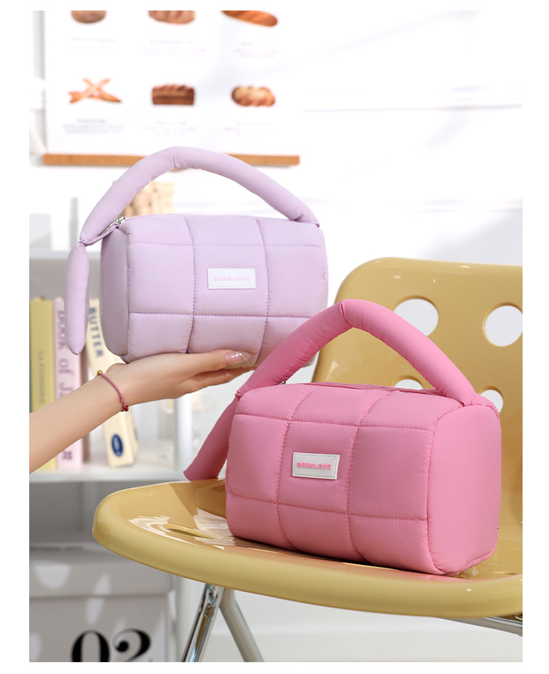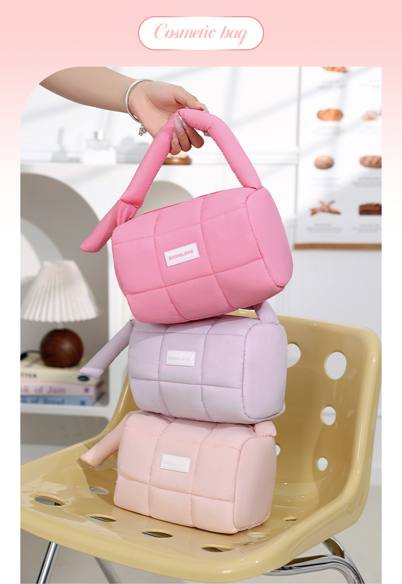 퍼프 핸드백 캔디 컬러 코튼 스토리지 백 핸드백 여성용 틈새 하이 엔드 화장품 가방 쇼핑 휴대 전화 가방