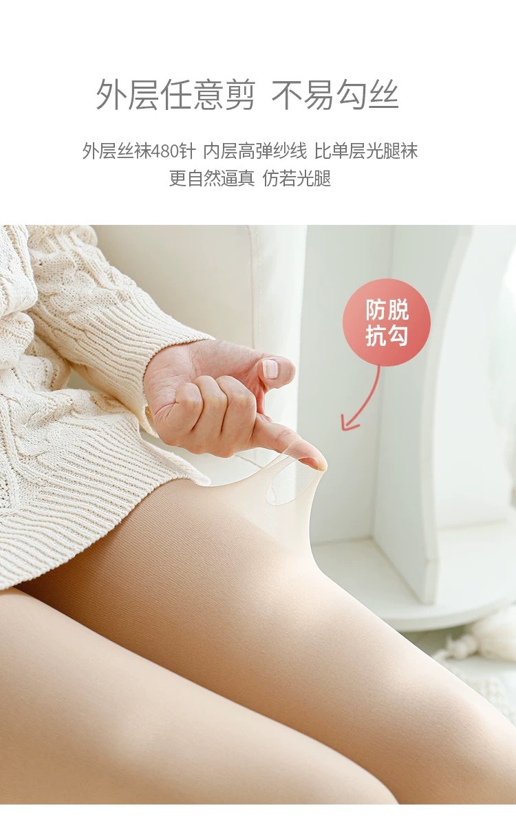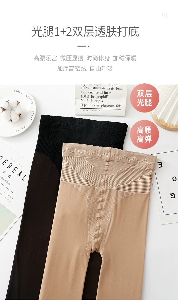 빅사이즈 광다리 보정 팬티스타킹 여성용 가을 겨울용 기모 안감 탈부착 가능한 버튼 이중층 투명감 방지 팬티스타킹