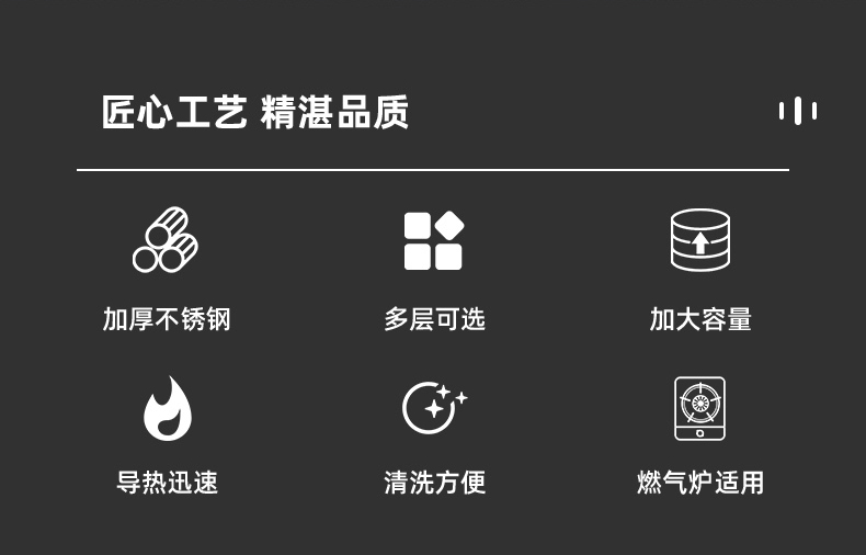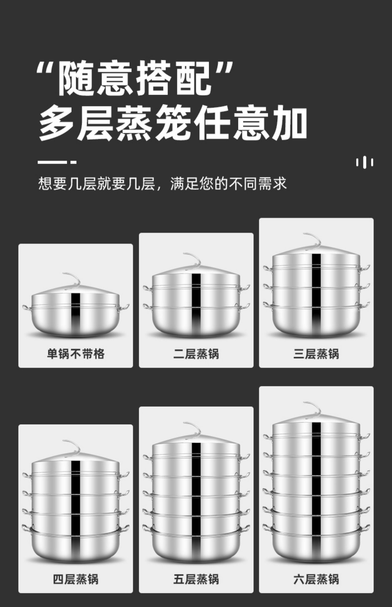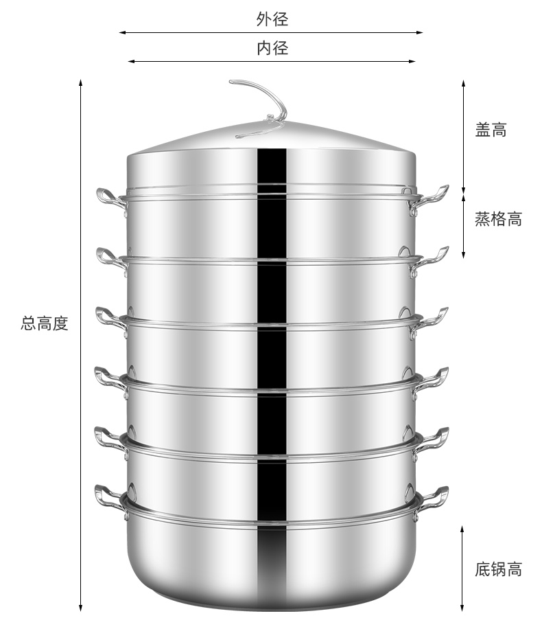 • 6단 냄비(하단 냄비 1개 + 찜기 5개 + 찜 시트 1개 + 뚜껑)_용접 없이 일체형