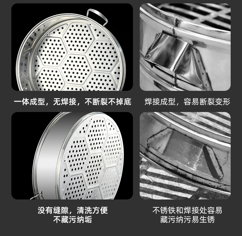 • 4단 냄비(하단 냄비 1개 + 찜기 3개 + 찜 시트 1개 + 뚜껑)_용접 없이 일체형 성형