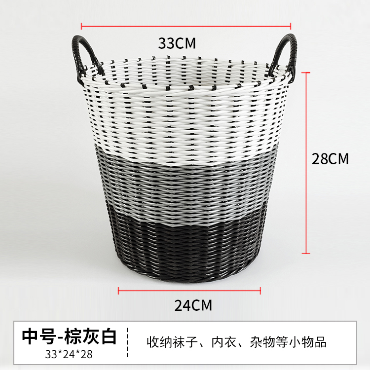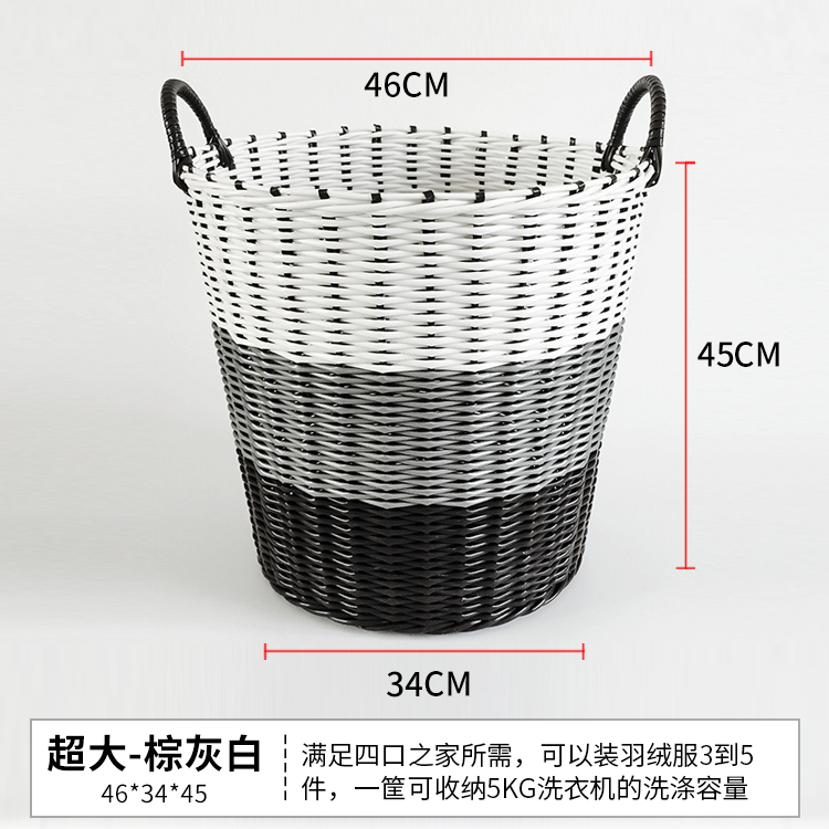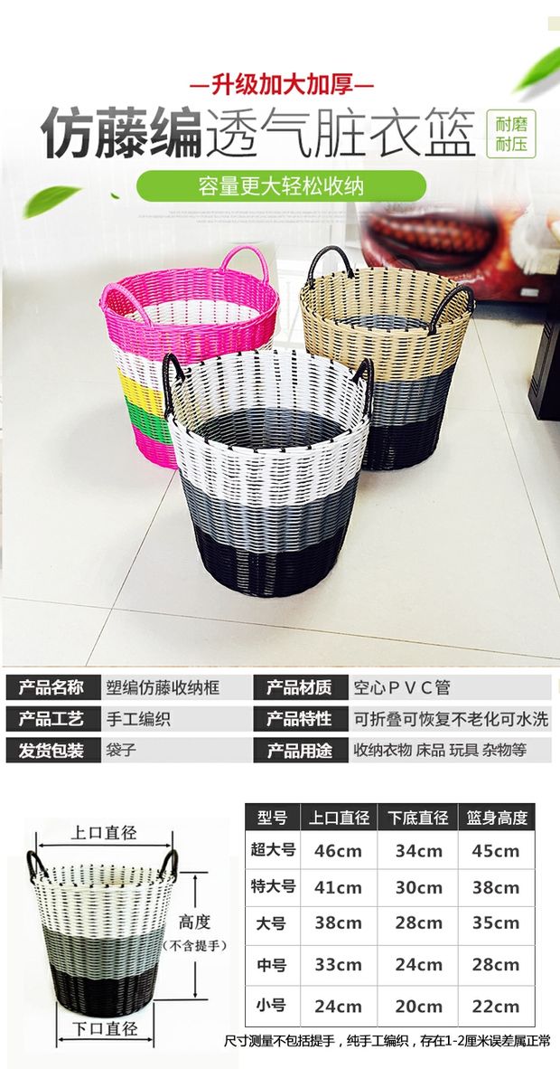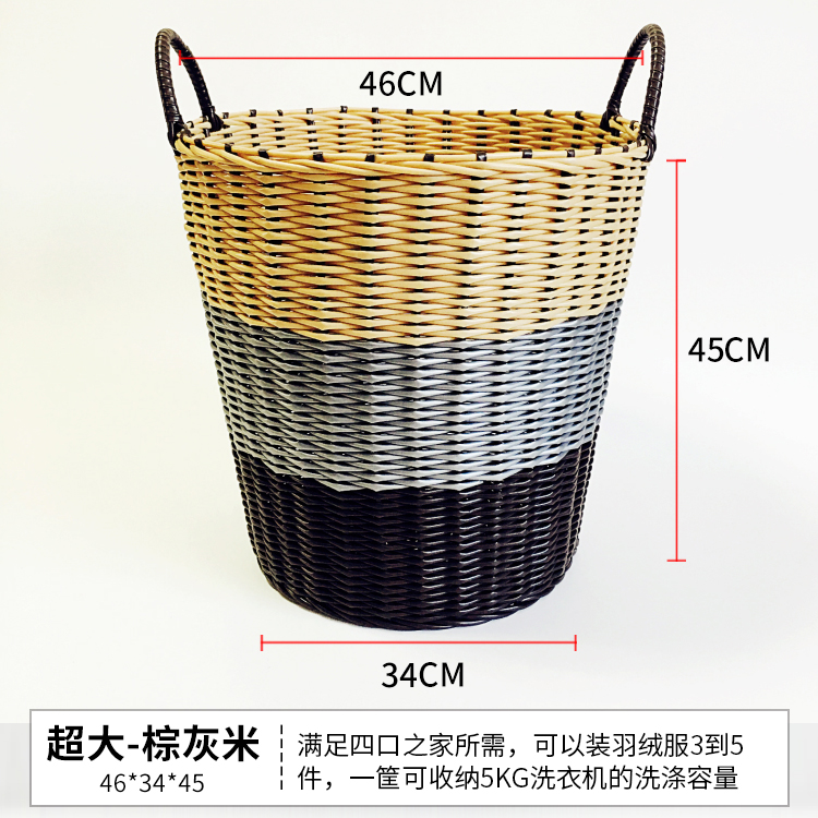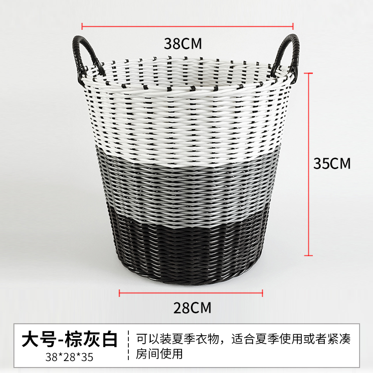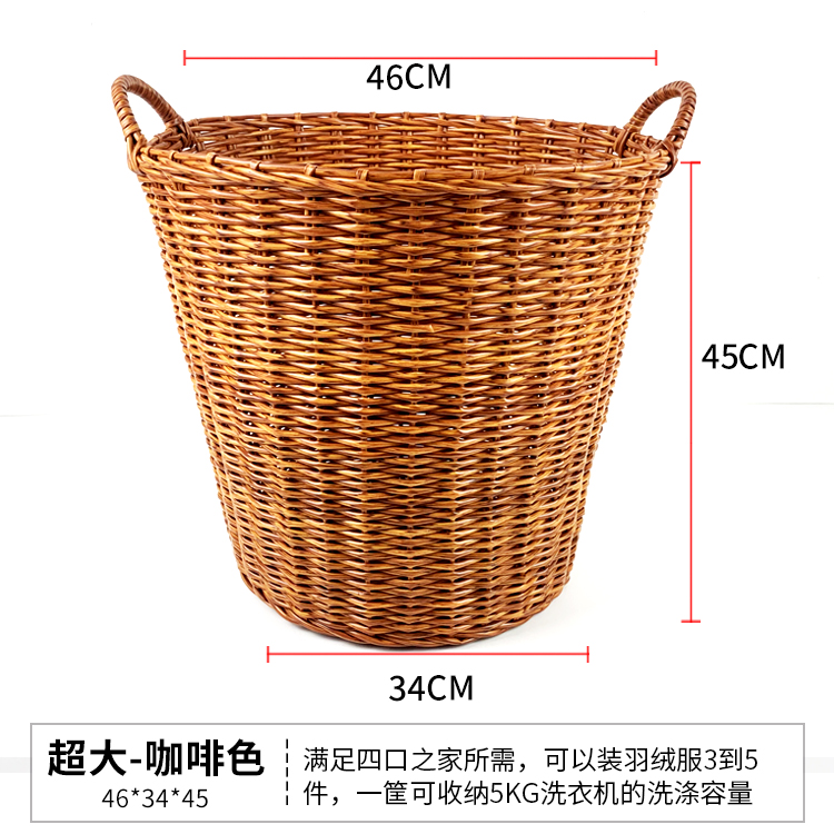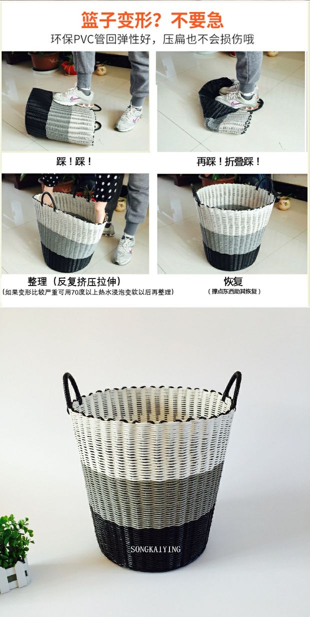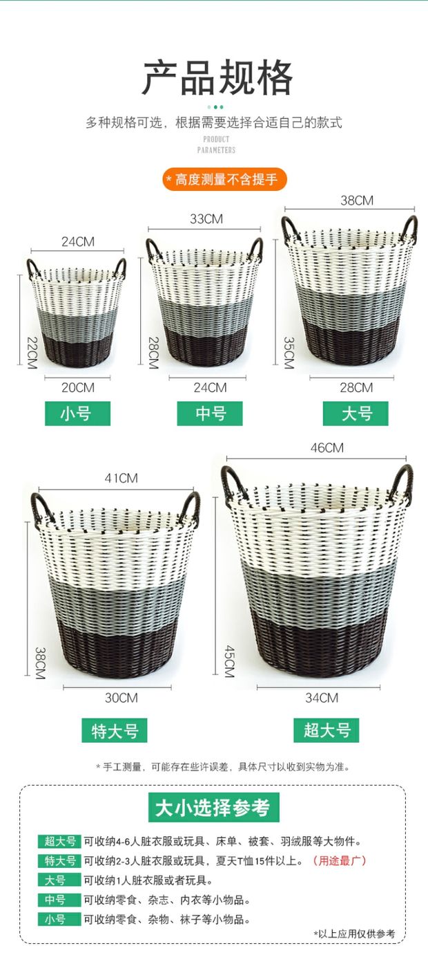 더러운 옷 바구니 플라스틱 등나무 짠 대용량 저장 바구니 원통형 더러운 옷 바구니 세탁 바구니 여분의 대형 짠 코트