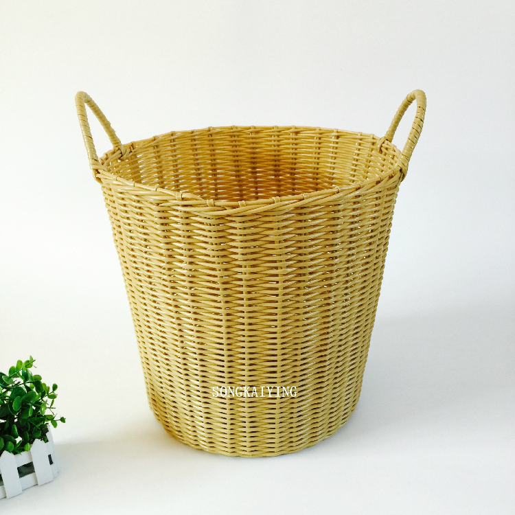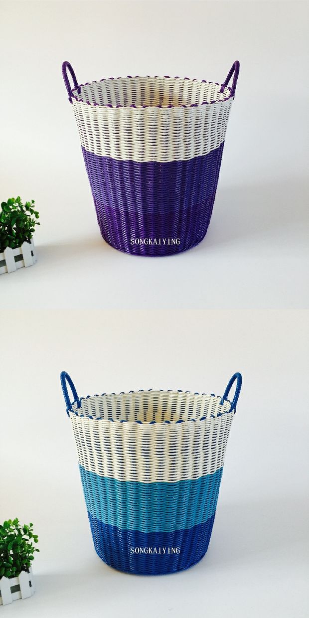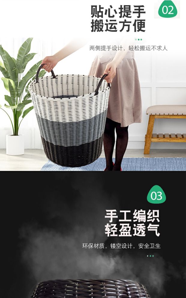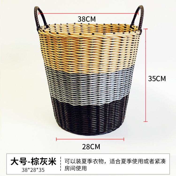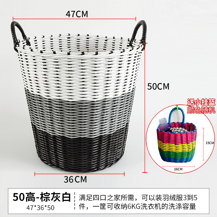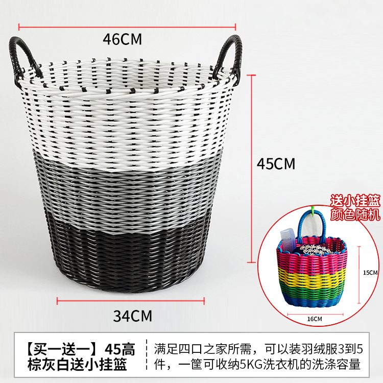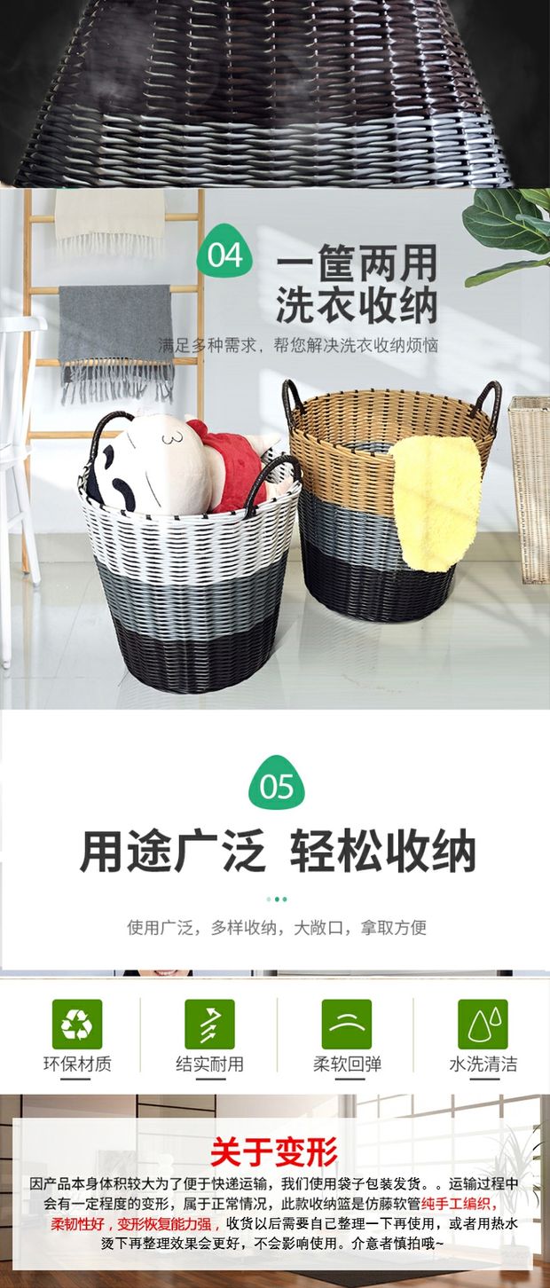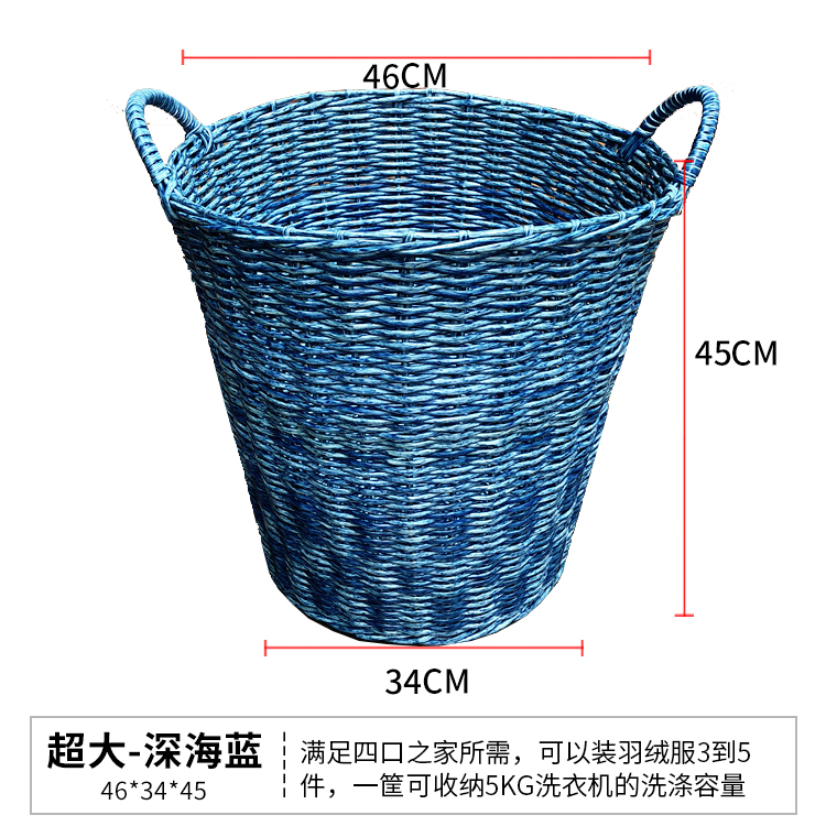 더러운 옷 바구니 플라스틱 등나무 짠 대용량 저장 바구니 원통형 더러운 옷 바구니 세탁 바구니 여분의 대형 짠 코트