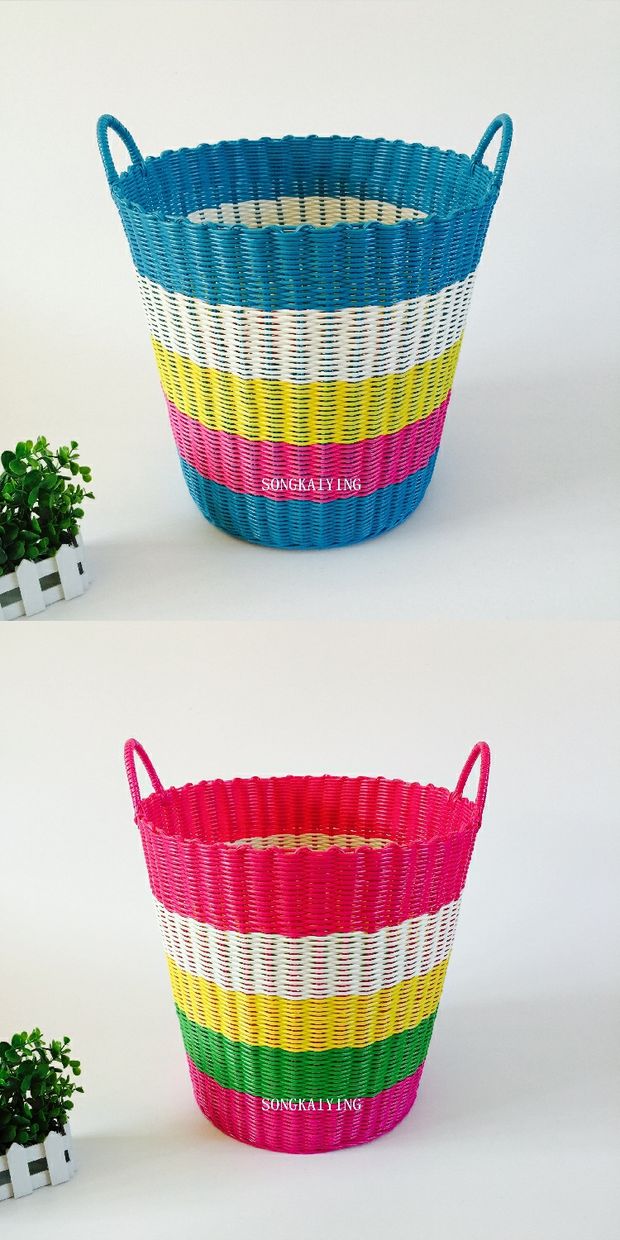 더러운 옷 바구니 플라스틱 등나무 짠 대용량 저장 바구니 원통형 더러운 옷 바구니 세탁 바구니 여분의 대형 짠 코트스토어 가기