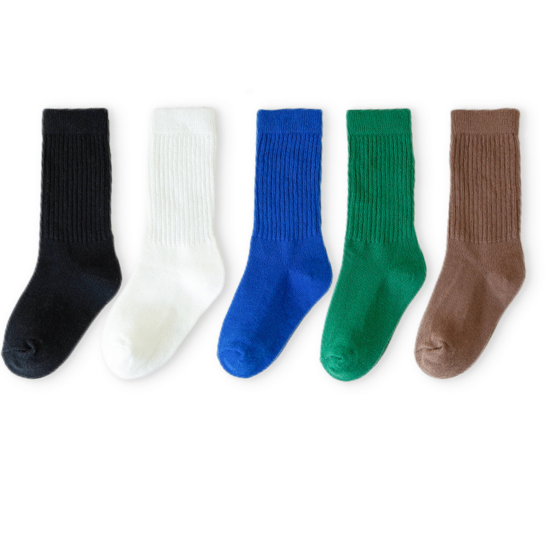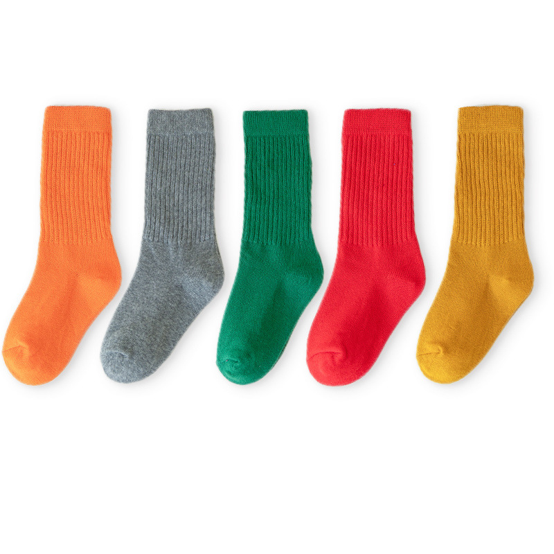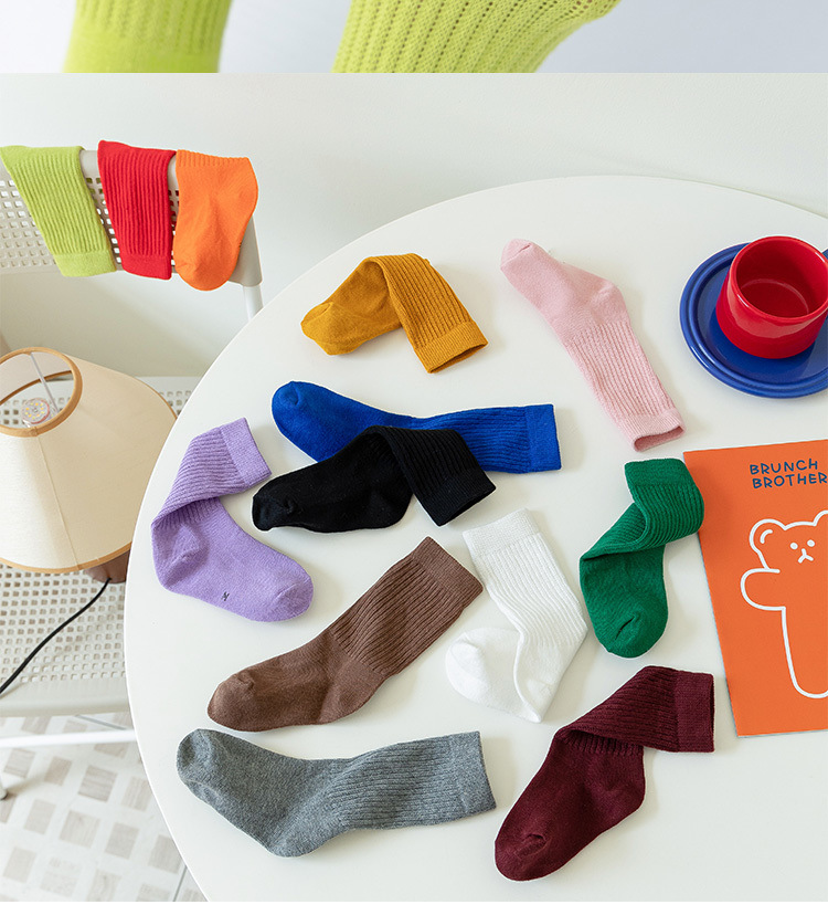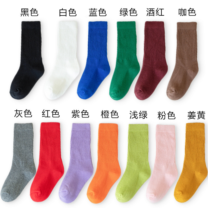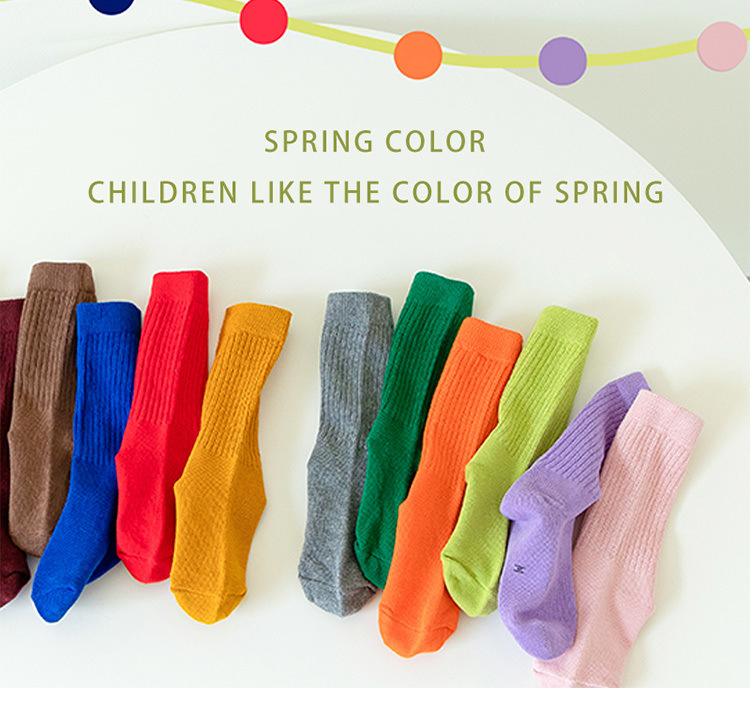 어린이 양말 봄과 가을 면화 양말 스택 양말 봄 종아리 양말 소년 단색 면 양말 한국 소녀 사탕 색 양말