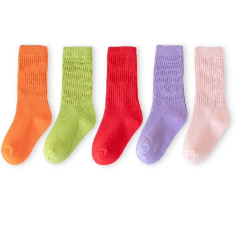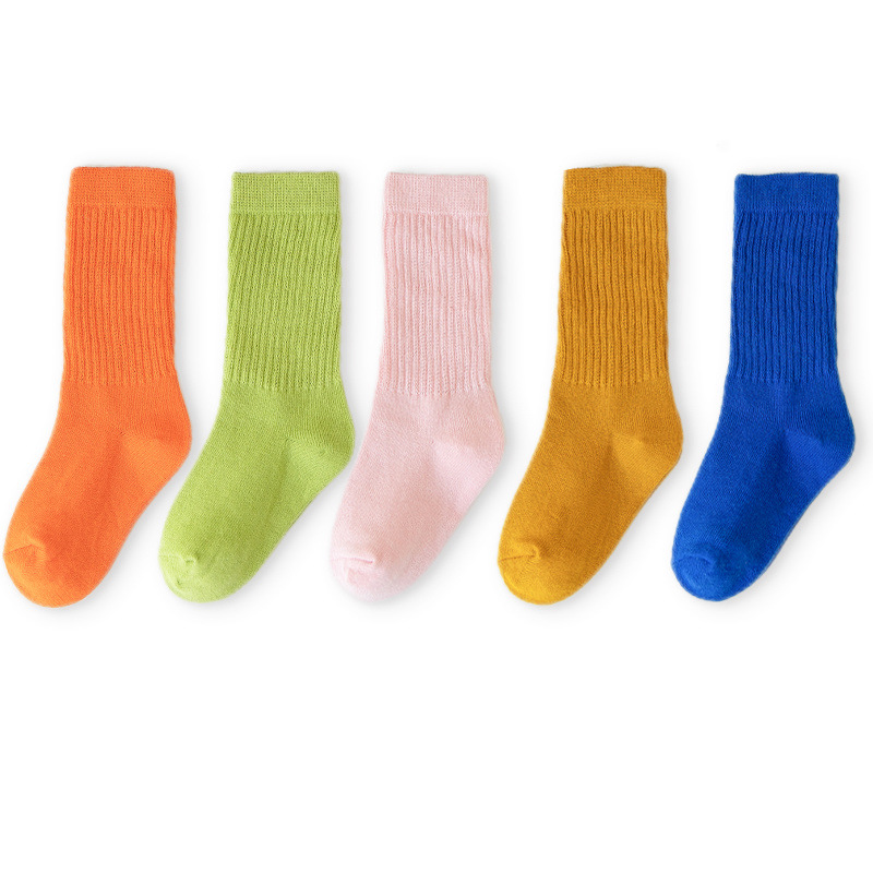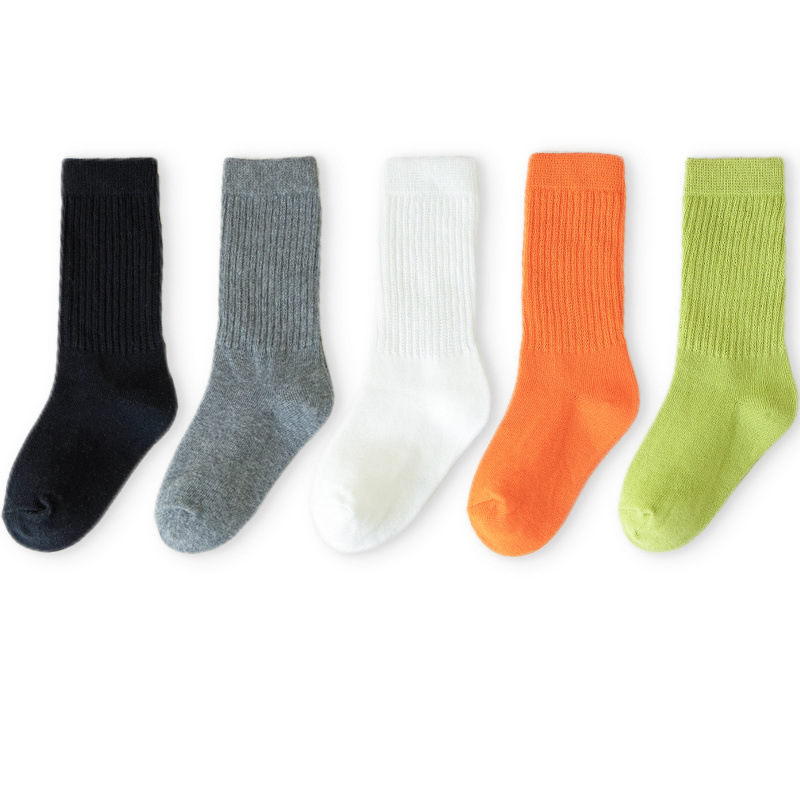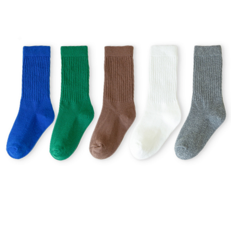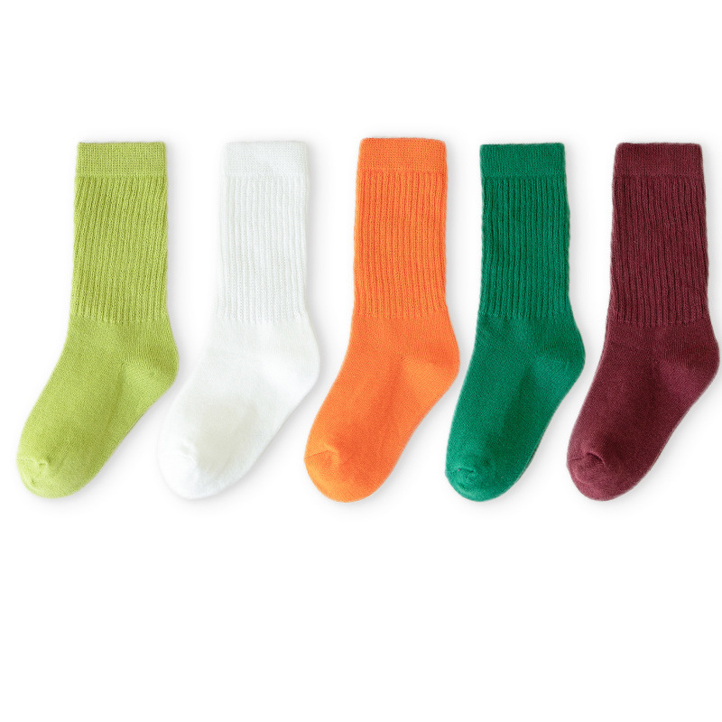 어린이 양말 봄과 가을 면화 양말 스택 양말 봄 종아리 양말 소년 단색 면 양말 한국 소녀 사탕 색 양말
