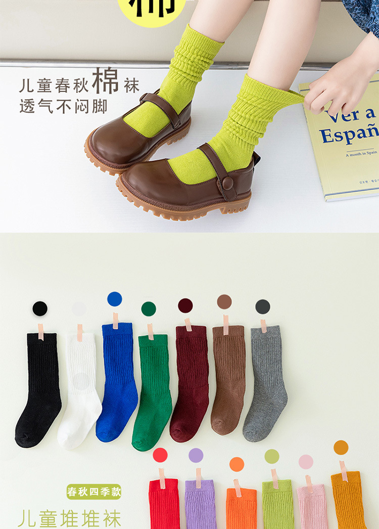 어린이 양말 봄과 가을 면화 양말 스택 양말 봄 종아리 양말 소년 단색 면 양말 한국 소녀 사탕 색 양말스토어 가기
