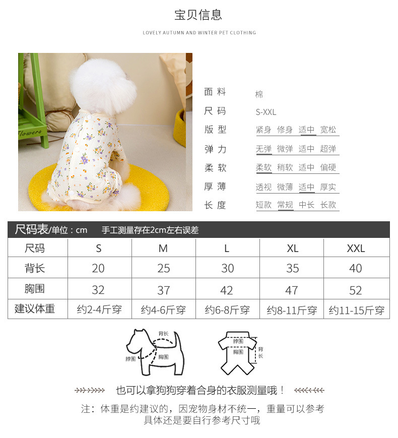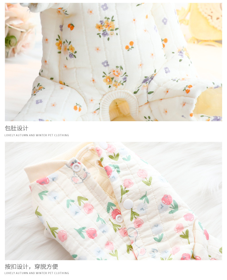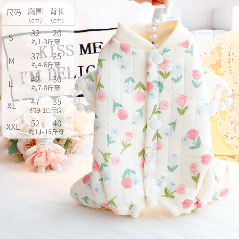 개 옷 봄과 가을 더블 레이어 코튼 거즈 백 배꼽 살균 의류 배꼽 보호 4 개 다리 작은 개 테디 애완 동물 6256