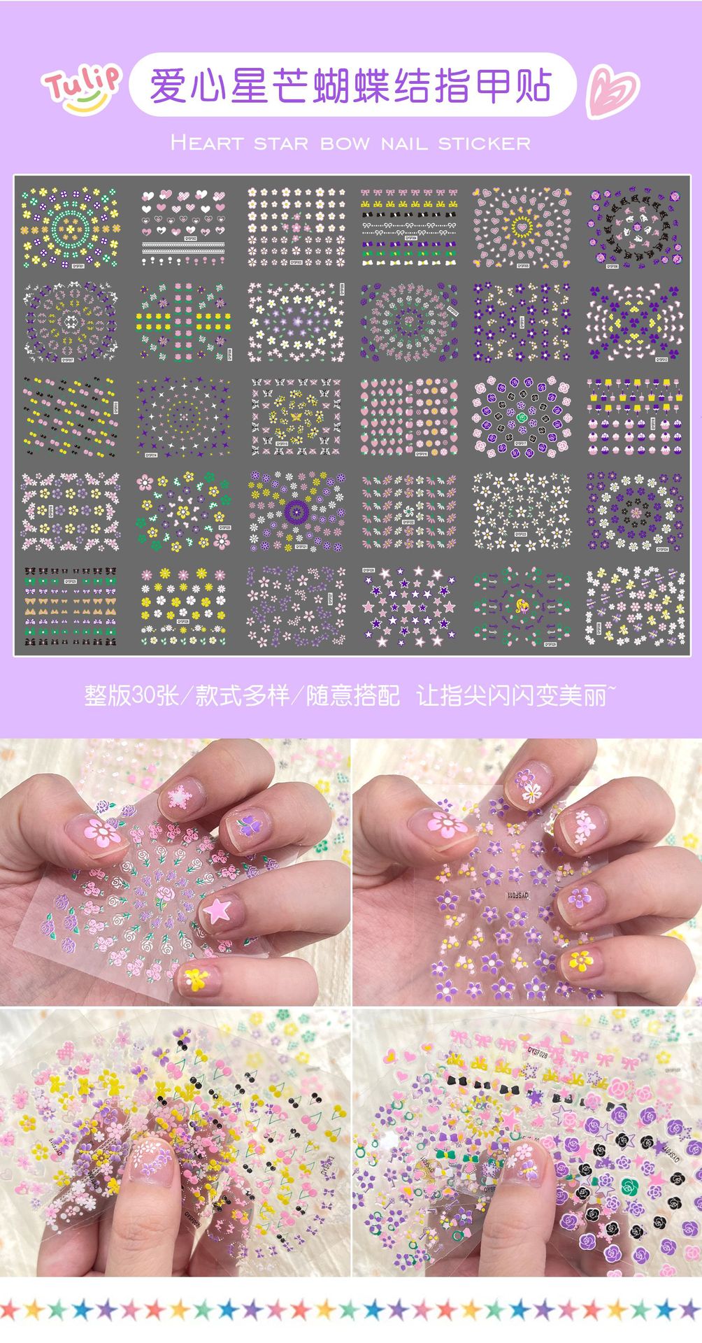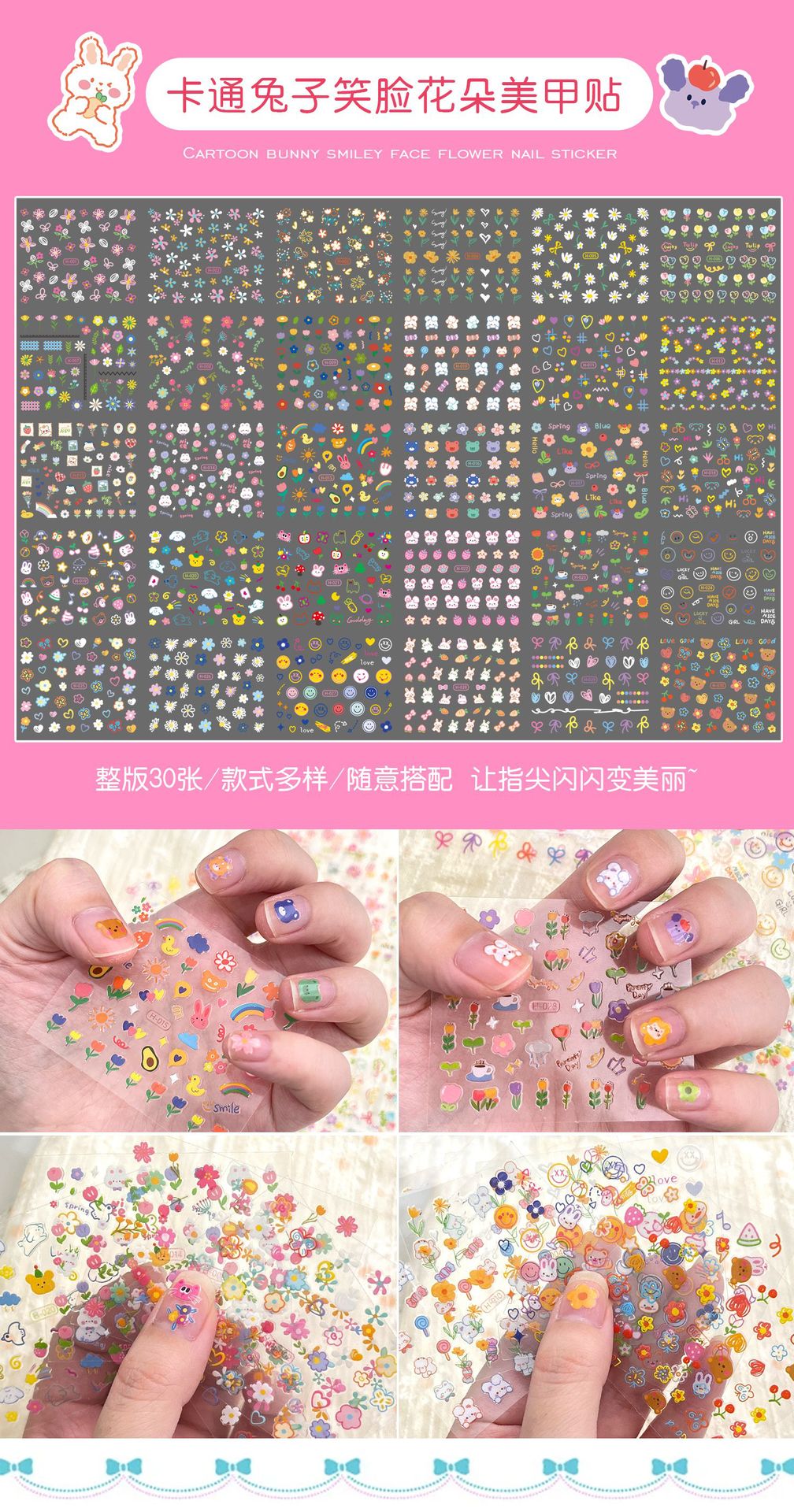 국경 30 새로운 빛나는 네일 데칼 세트 토끼 화려한 꽃 사랑 딸기 반짝이 네일 스티커 도매