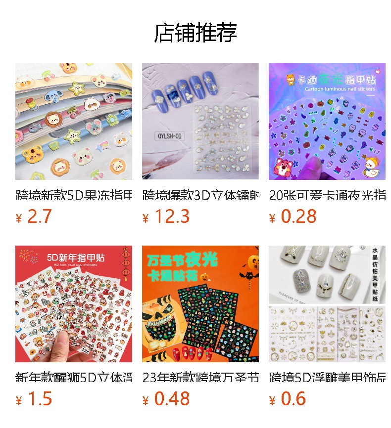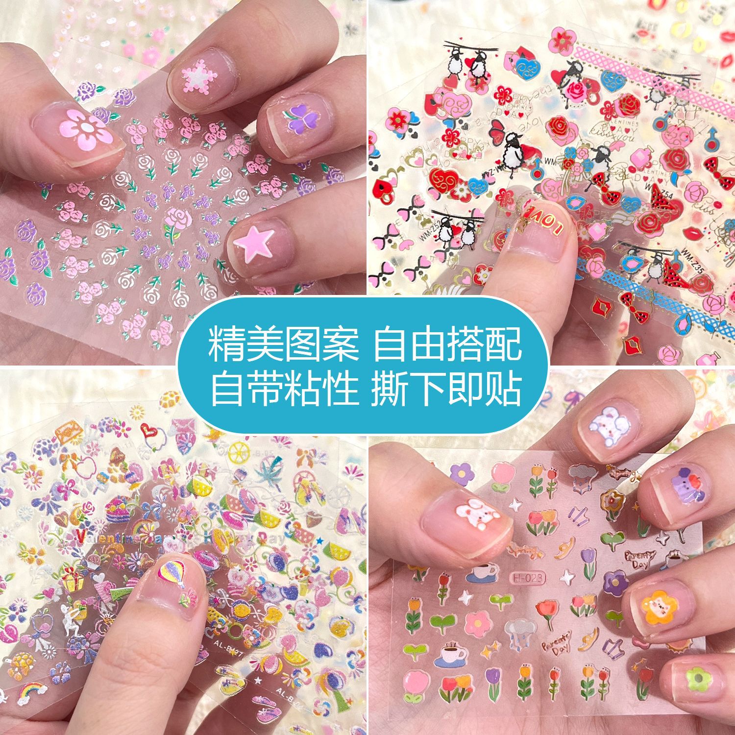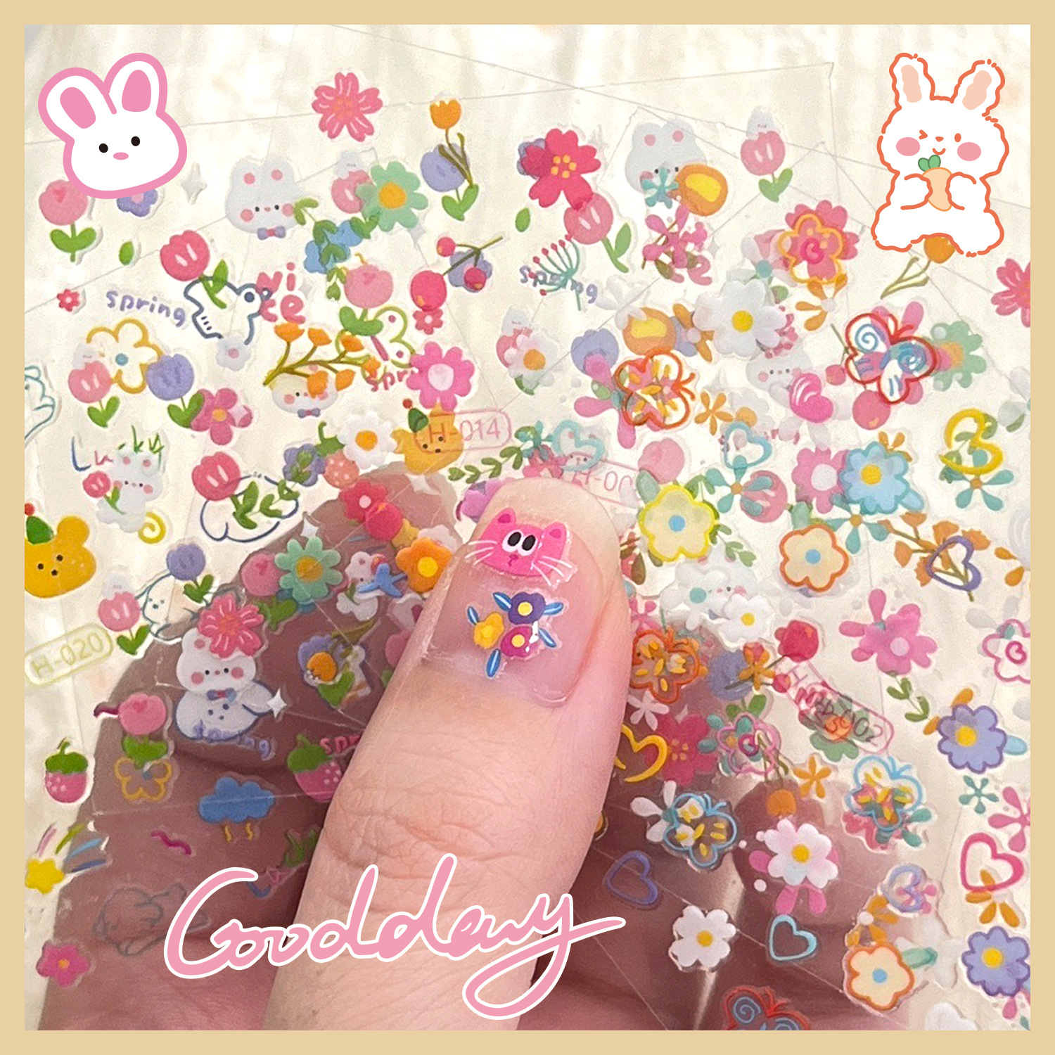 국경 30 새로운 빛나는 네일 데칼 세트 토끼 화려한 꽃 사랑 딸기 반짝이 네일 스티커 도매스토어 가기