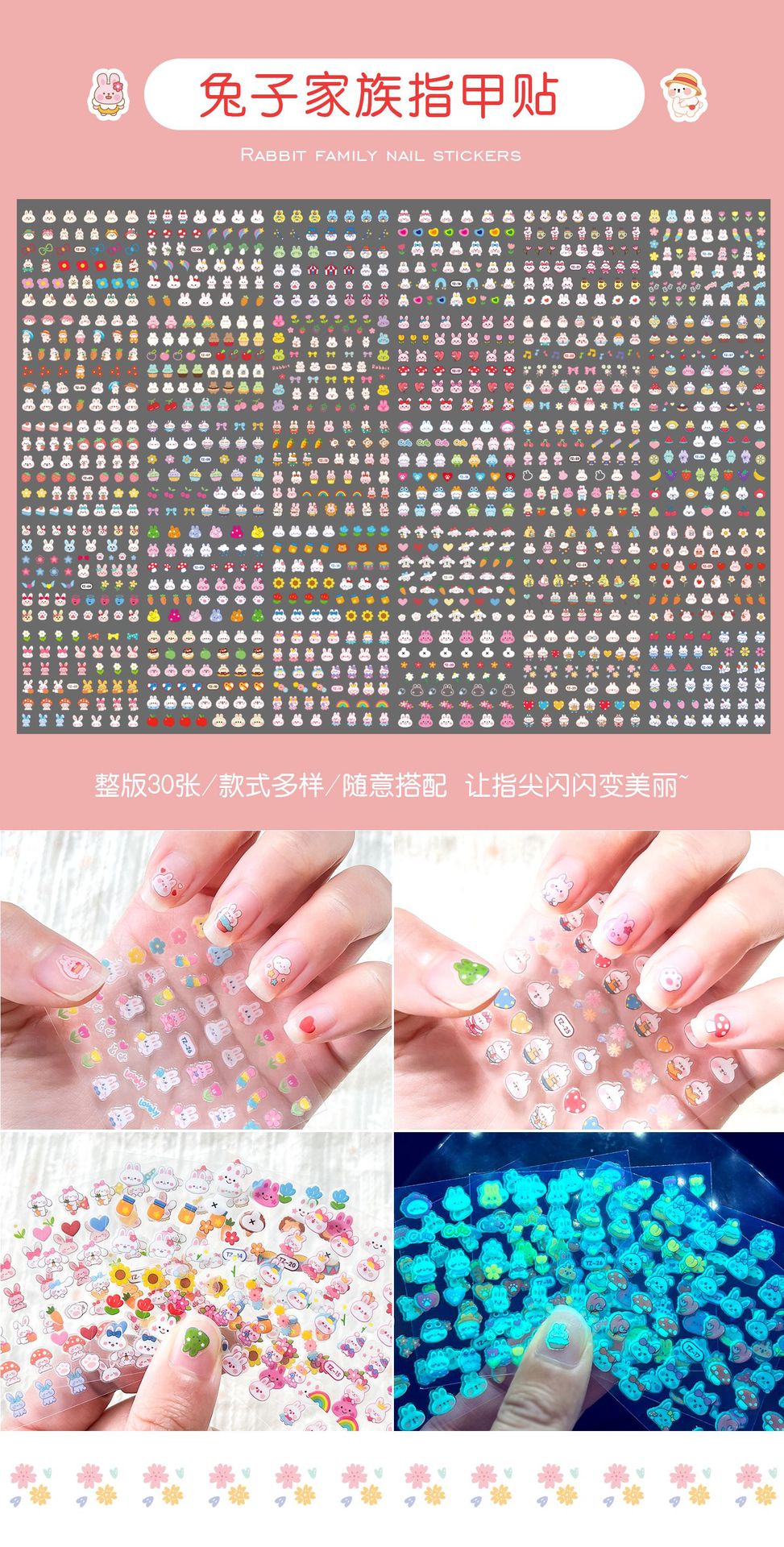 • 새로운 야광 토끼 가족 네일 아트 데칼(야광 스타일, TZ-01-030)