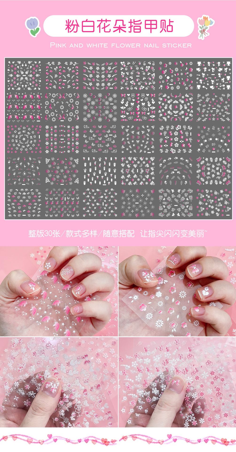 • 핑크와 화이트 플라워 네일아트 데칼 (WFNA-01-030)