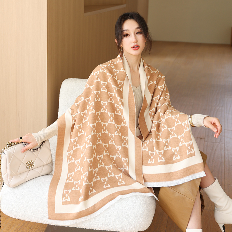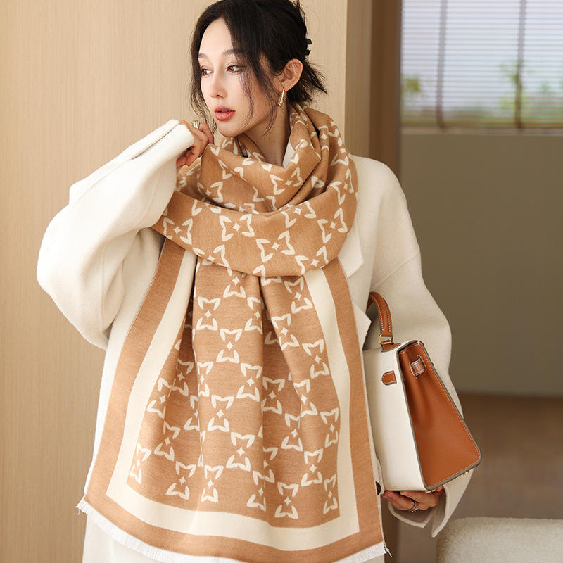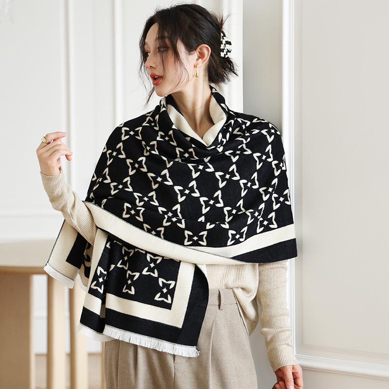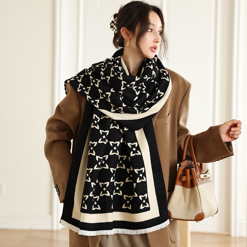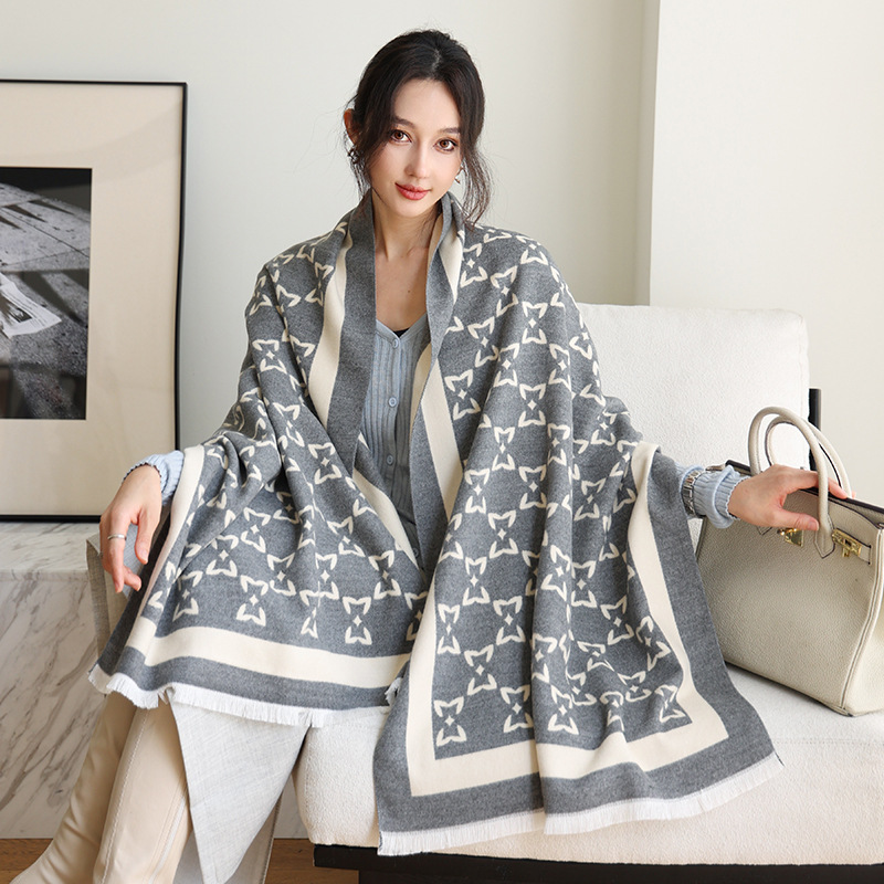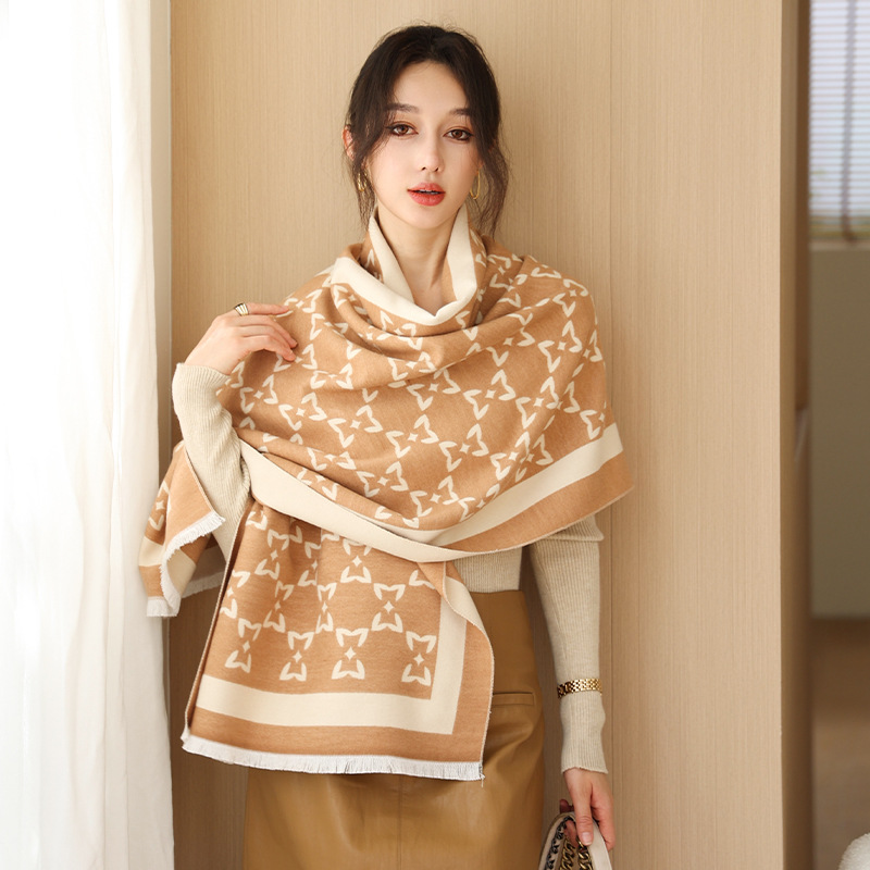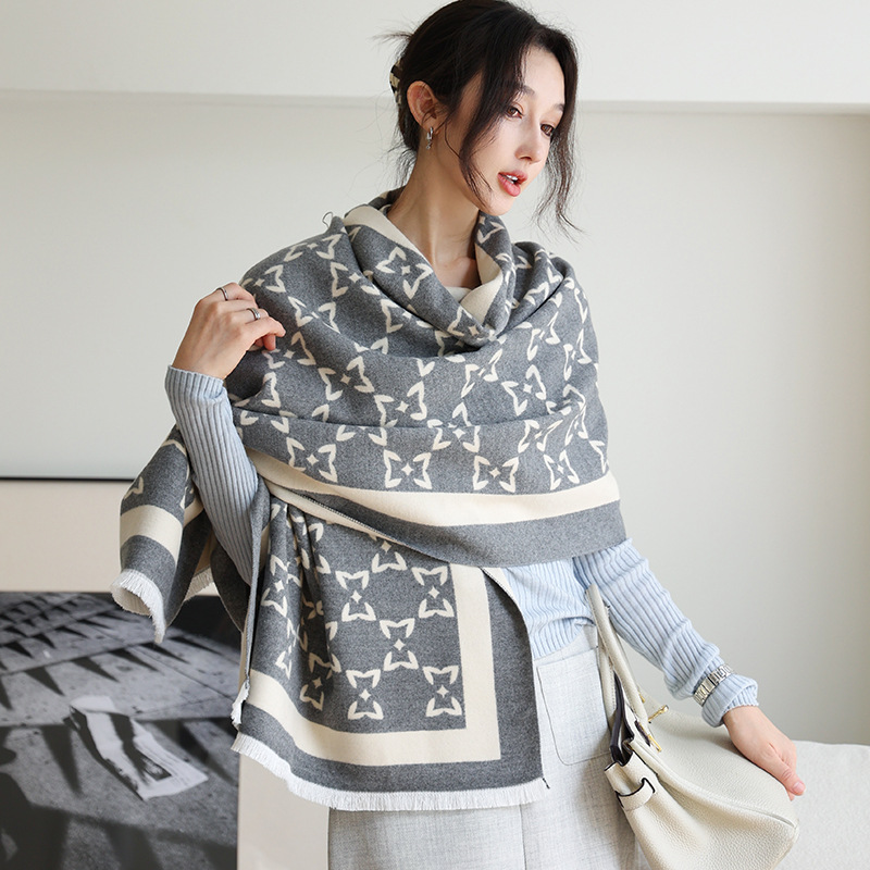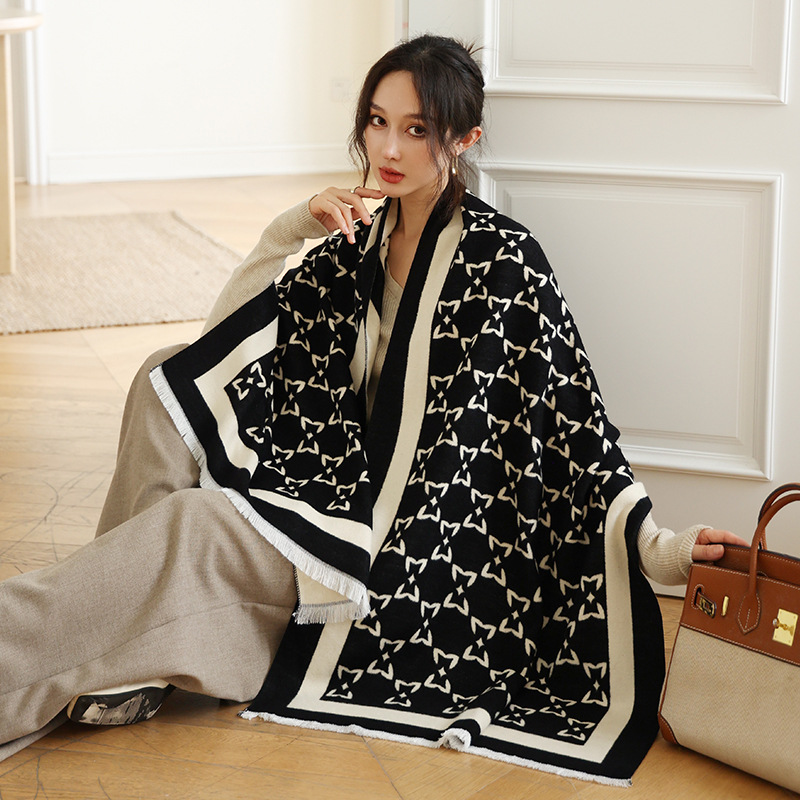 양모 목도리 기하학적 모방 캐시미어 스카프 여성의 양면 이중 목적 가을과 겨울 올 매치 두꺼운 따뜻한 스카프 패션스토어 가기