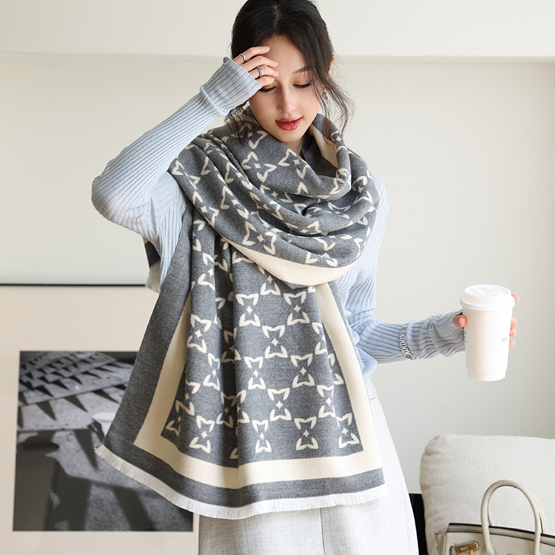 양모 목도리 기하학적 모방 캐시미어 스카프 여성의 양면 이중 목적 가을과 겨울 올 매치 두꺼운 따뜻한 스카프 패션