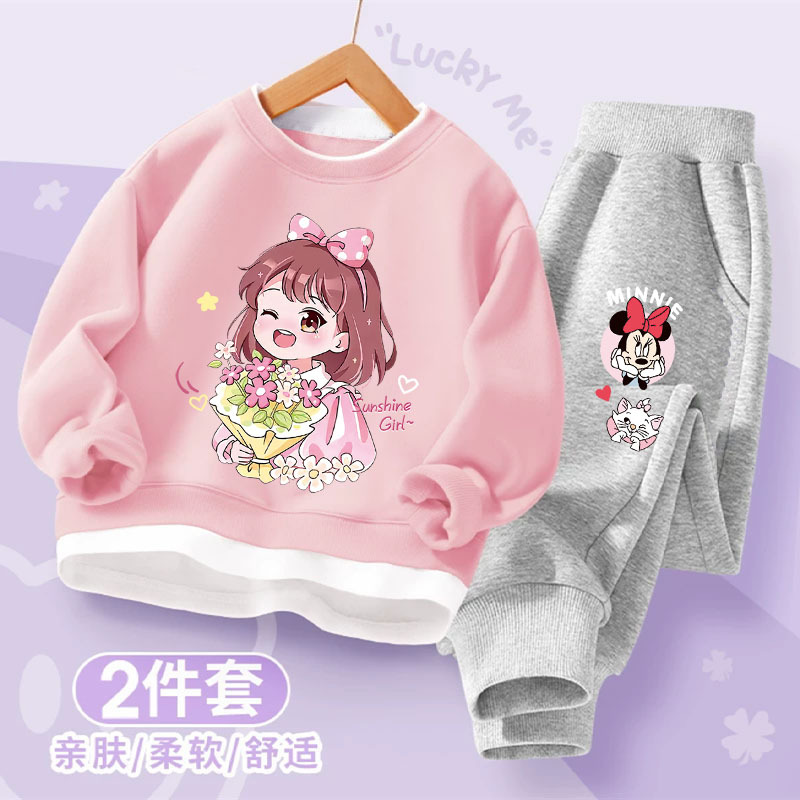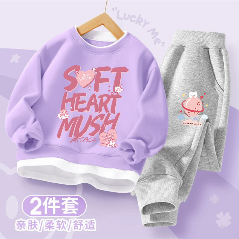 소녀의 봄과 가을 세트 2025 새로운 세련된 가짜 투피스 아동복 어린이 올매치 투피스 유행스토어 가기