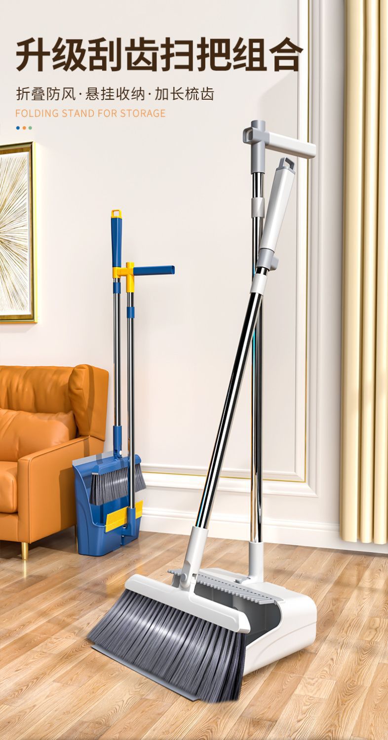 가정용 접이식 빗자루 빗자루 더스트 팬 조합 세트 소프트 브러시 빗자루 스트립 비 스틱 헤어 청소 세트