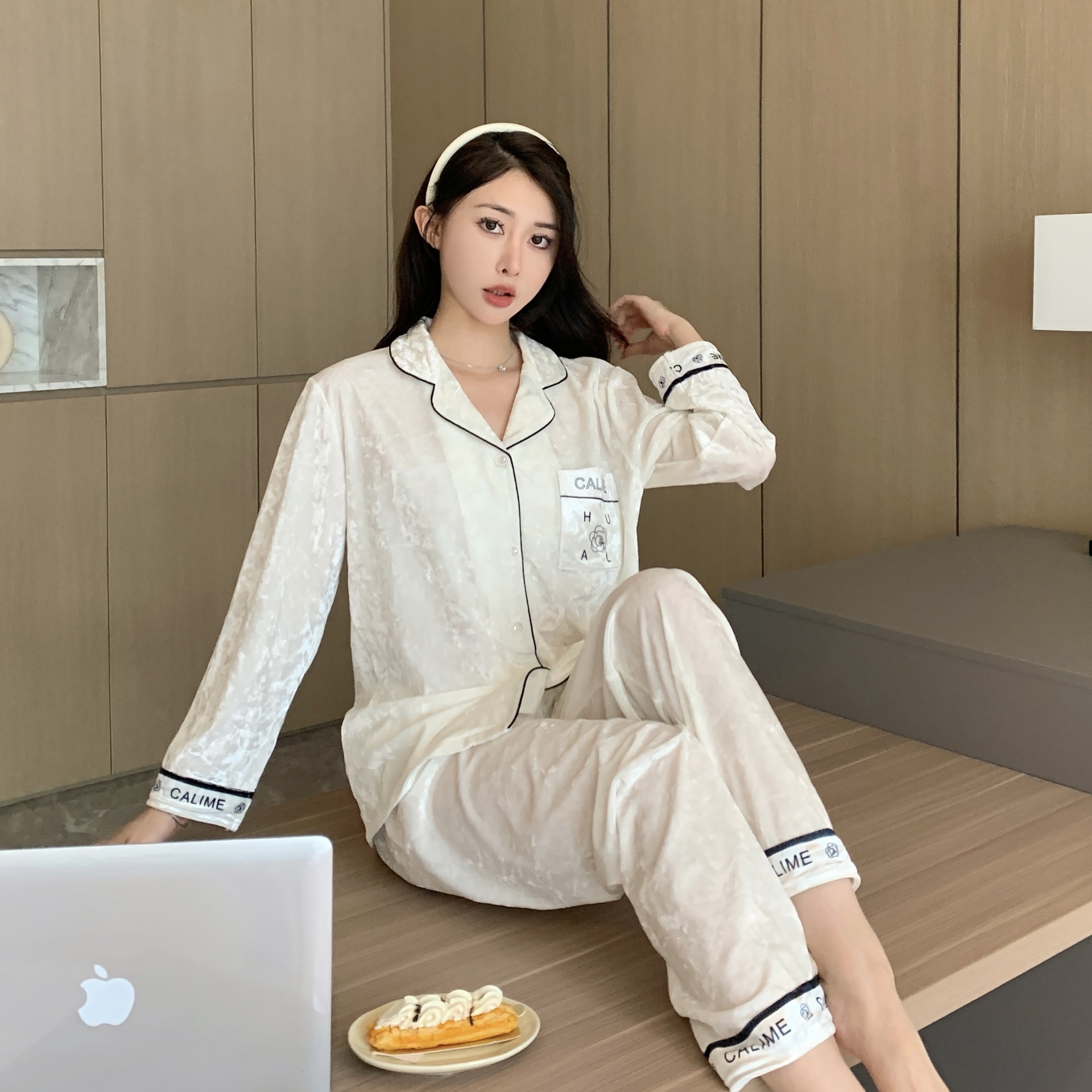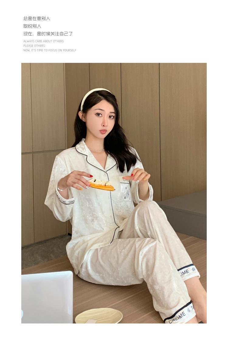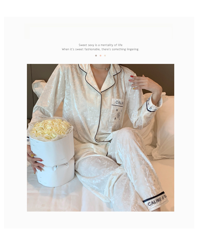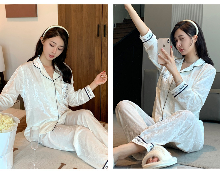 가을/겨울 새로운 골드 벨벳 잠옷 여성 긴팔 바지 세트 홈 의류 하이 엔드 센스 그물 레드 라이브 공장 도매스토어 가기