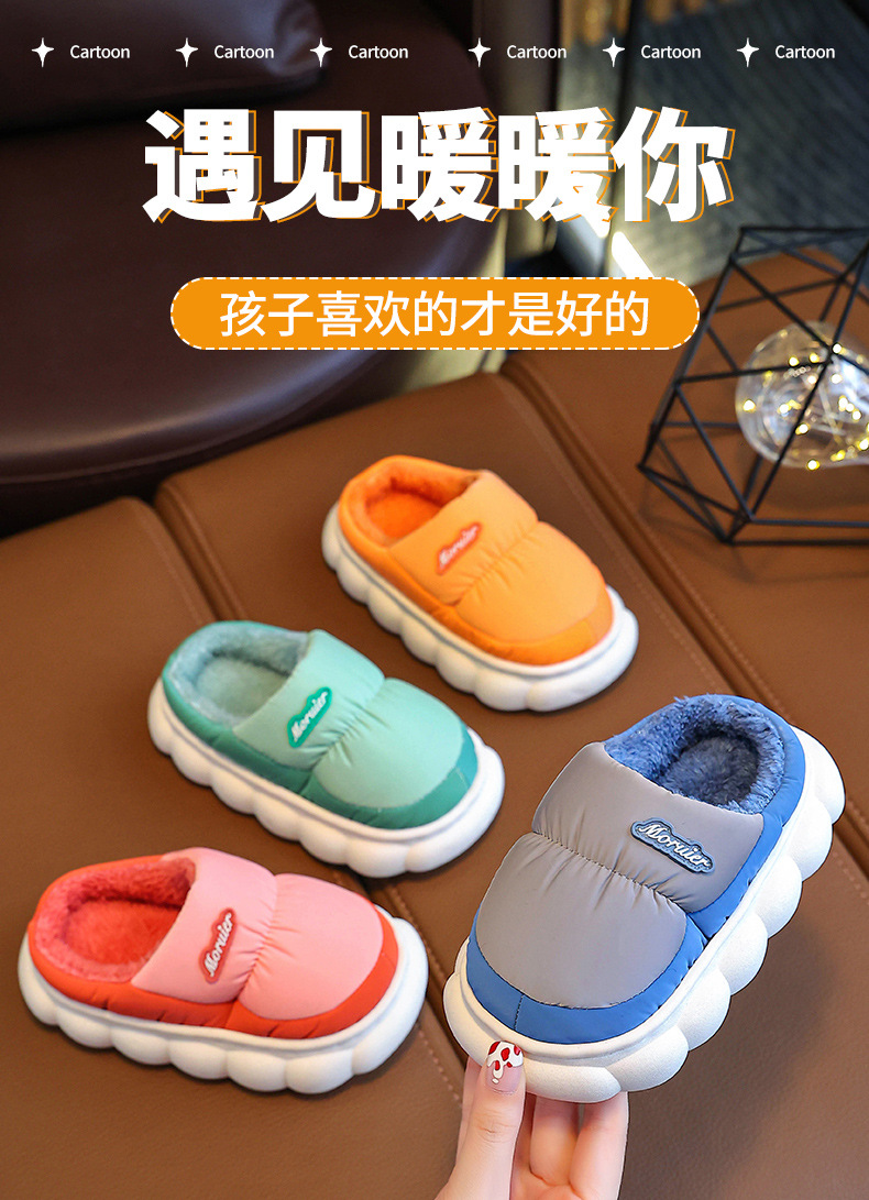 어린이 면 슬리퍼 소년의 겨울 따뜻한 기모 두꺼운 비 슬립 방수 다운 신발 홈 부모-아이 면 신발스토어 가기