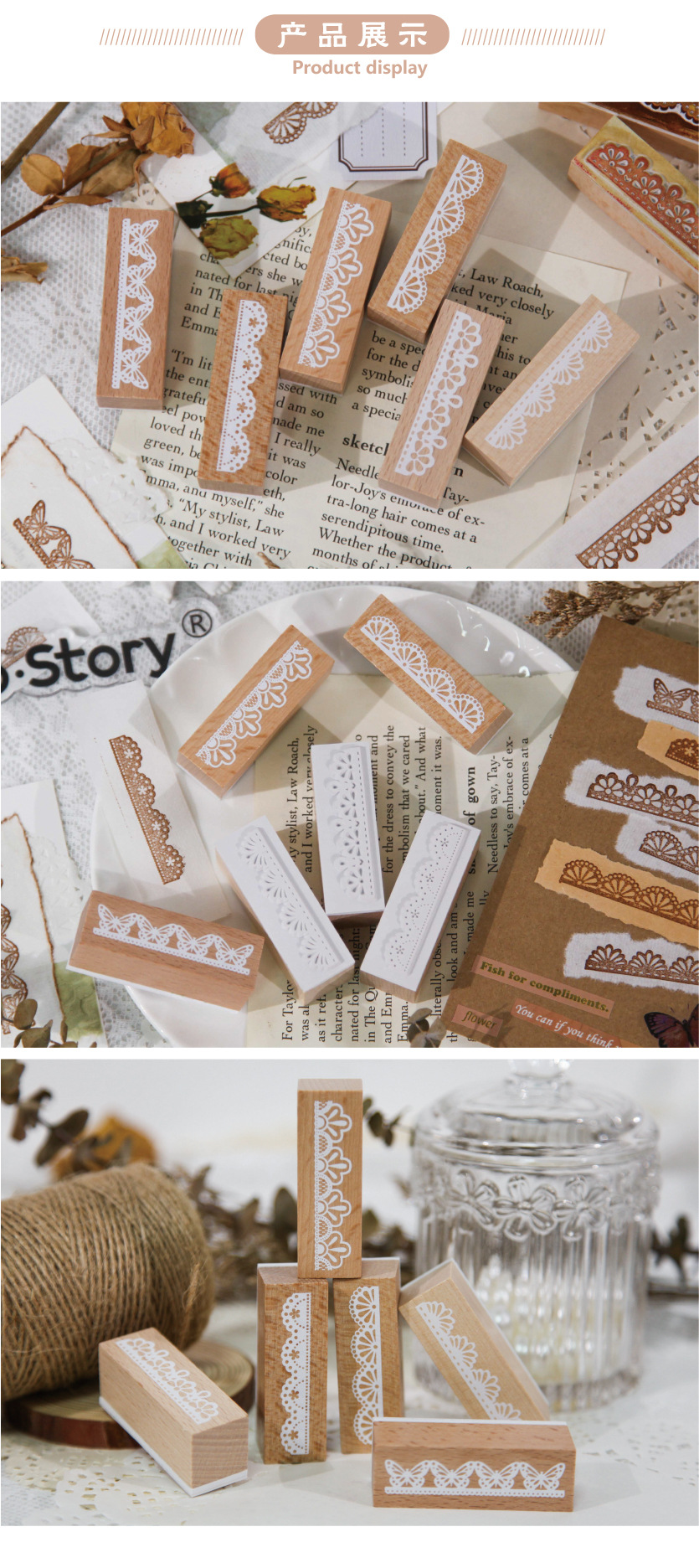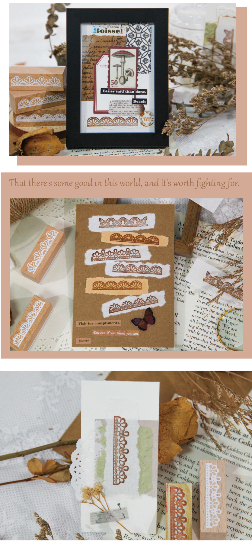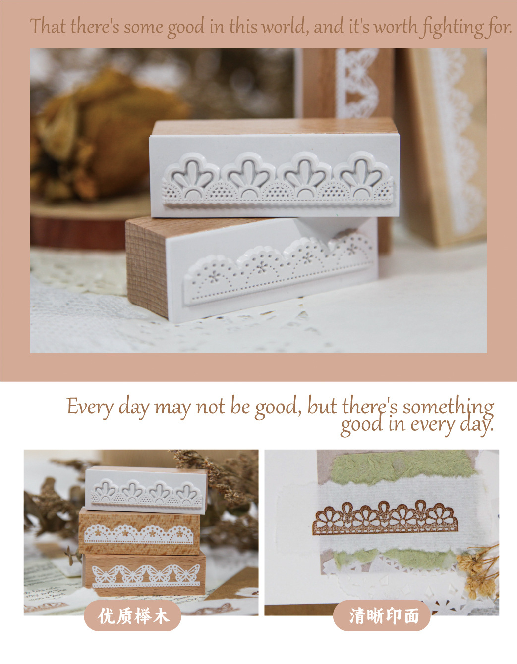 레트로 스토리 스탬프 레이스 꽃무늬 레이스 테두리 수첩 장식 스탬프 재료 DIY 수첩 나무 스탬프