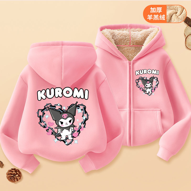 2024 가을과 겨울 쿨로 미 카디건 후드 스웨터 어린이 코트 새로운 지퍼 스웨터 봄과 가을 소녀 조수스토어 가기