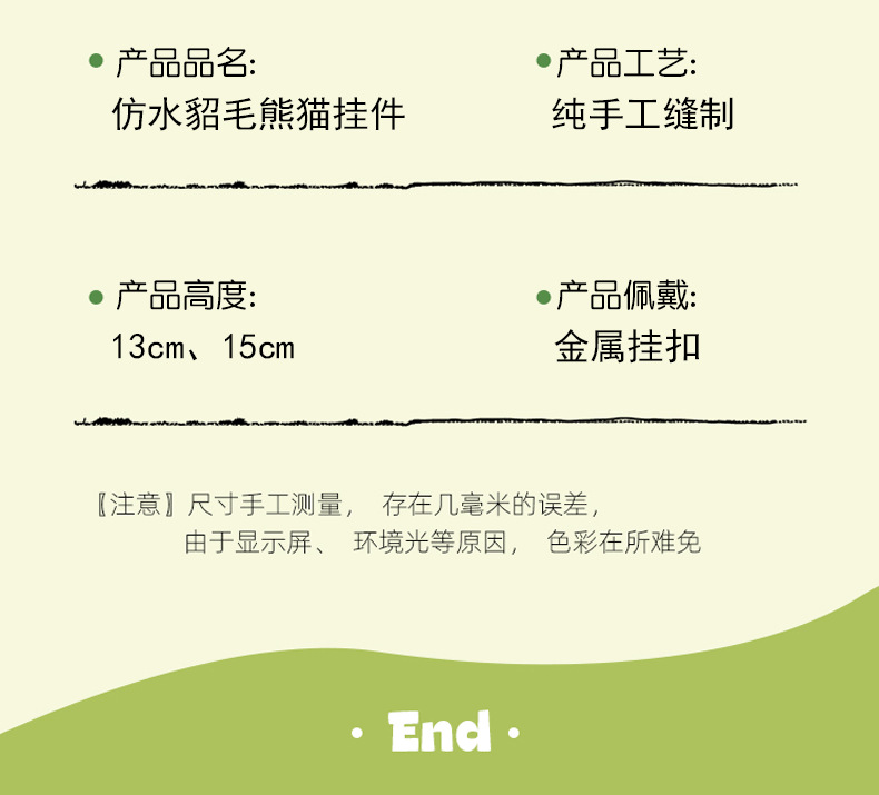 팬더 인형 봉제 펜던트 어린이 Schoolbag 매달려 귀여운 모조 밍크 헤어 샤넬 스타일 팬더 키 체인 펜던트