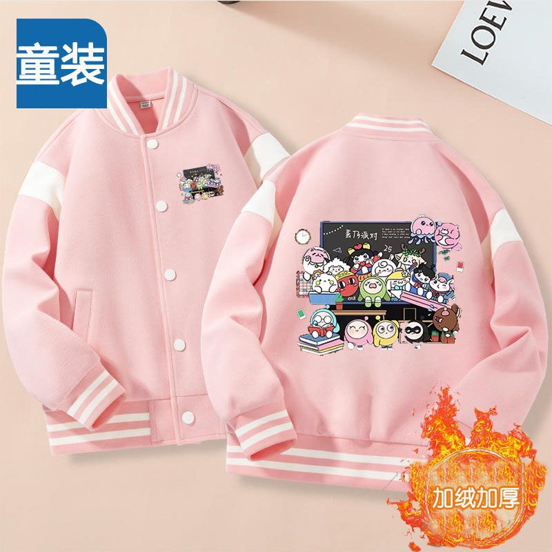 소년 가을 겨울 달걀 파티 야구 세트 소녀 어린이 귀여운 재킷 기모 두꺼운 버튼 카디건 재킷스토어 가기