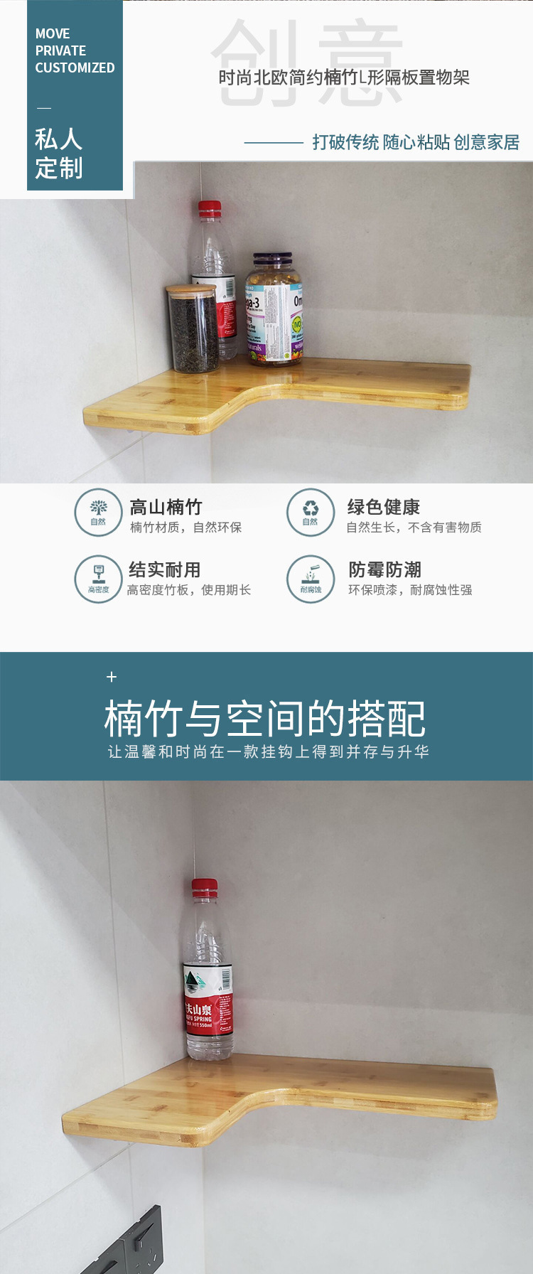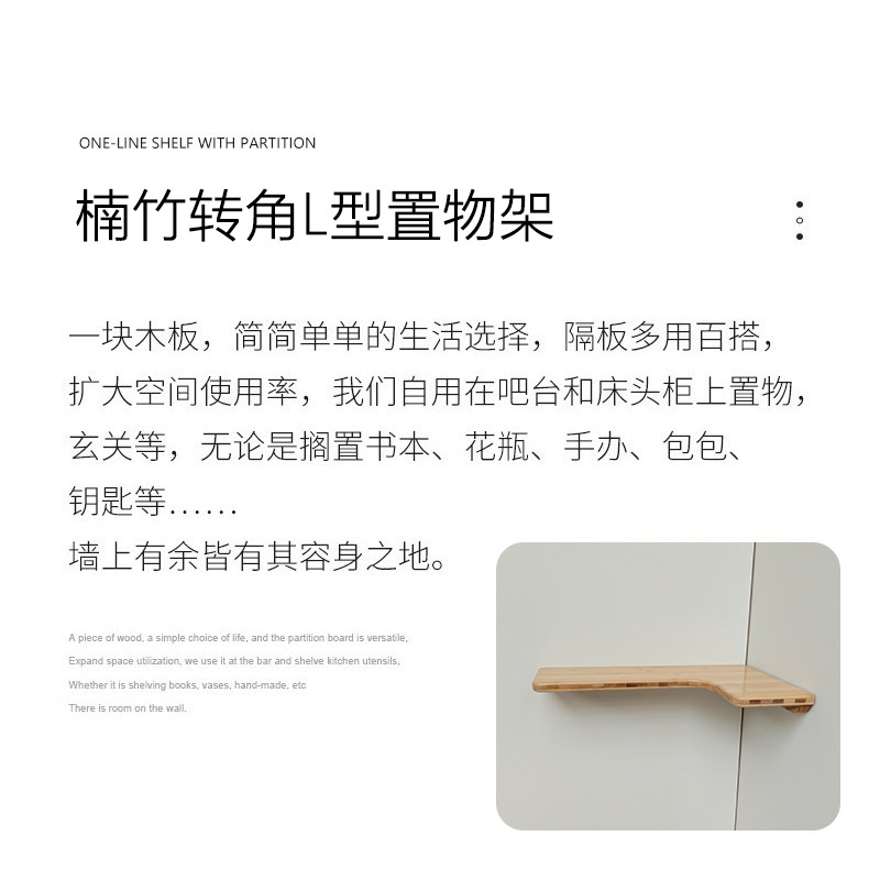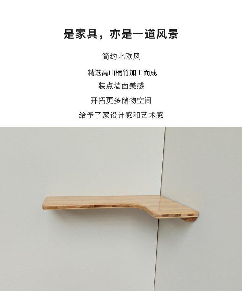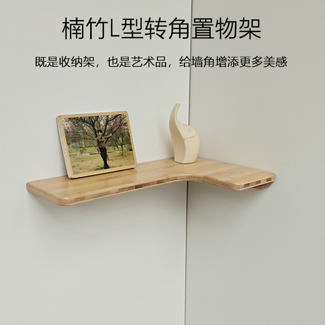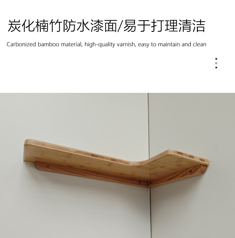 코너 선반, 코너 수납 선반, 벽걸이 선반, 원목 대나무 북유럽 스타일 벽걸이형 무타공 칸막이 선반, 거실 책장